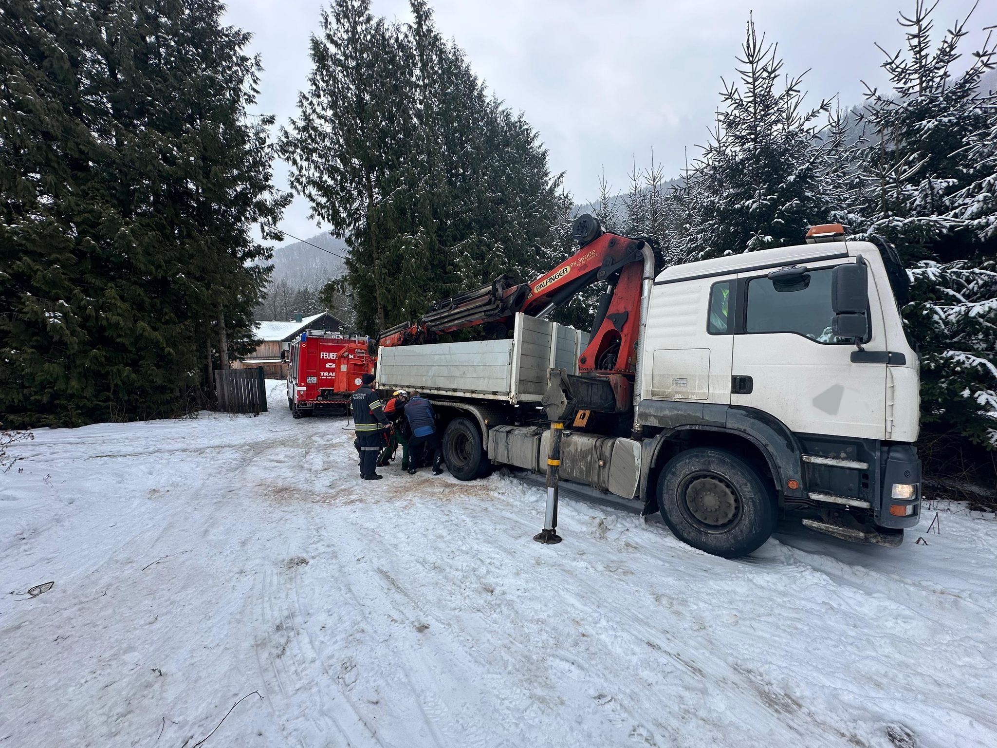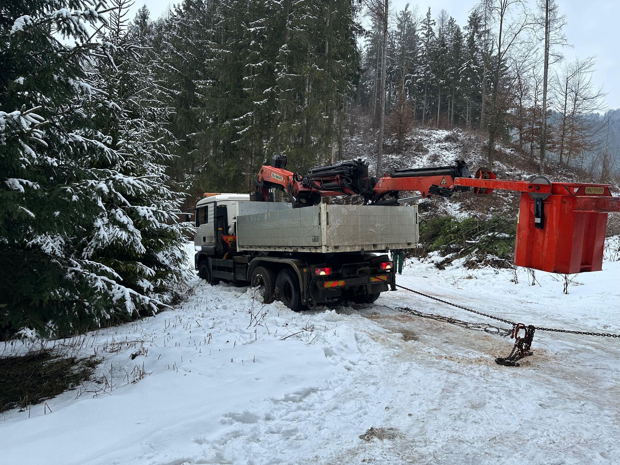 Am Donnerstag, den 29.01.2026, wurden wir von einer Privatperson verständigt, dass ein LKW auf einem Weg in eine missliche Lage geraten war und nicht mehr aus eigener Kraft weiterfahren konnte.