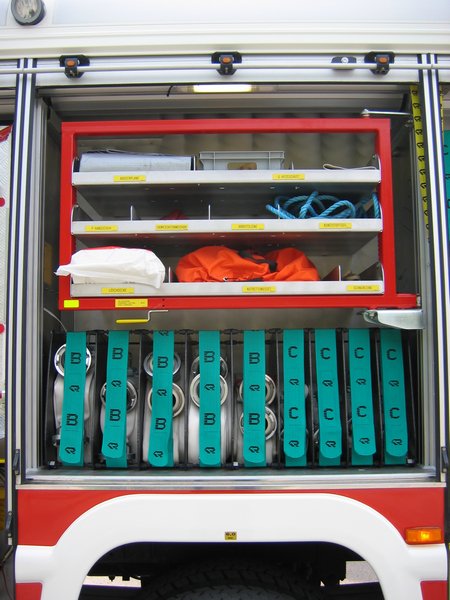 Schlauchlade mit 100m B-Druckschlauch als Schnellangriff