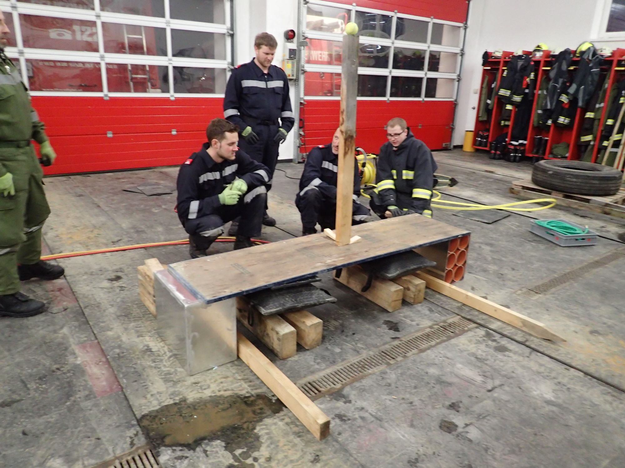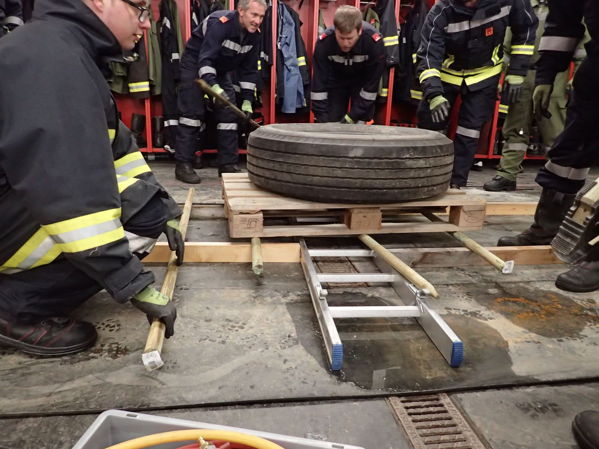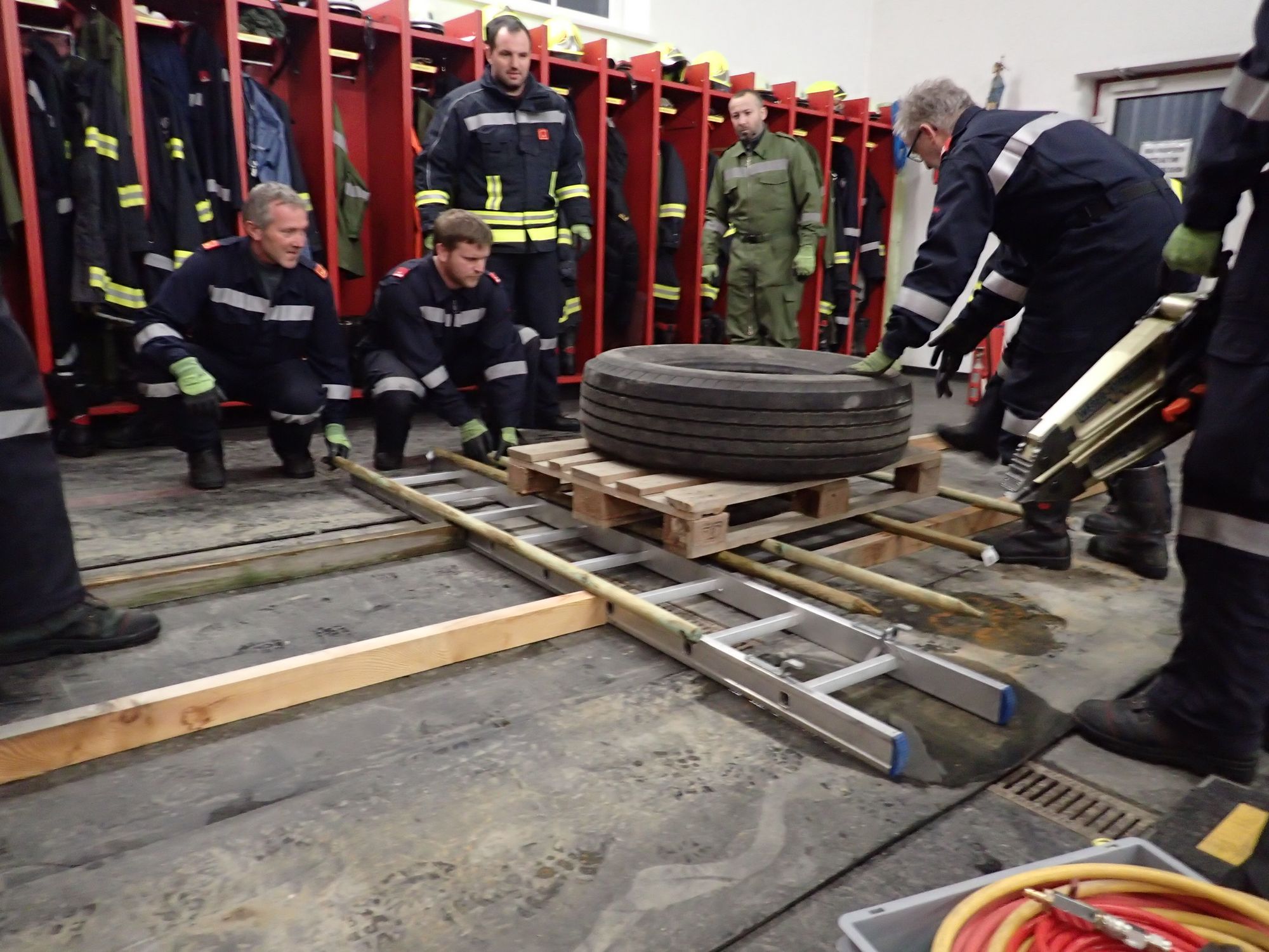 Ziel war es in Teams drei Aufgabenstellungen, unter Einsatz aller zur verfügung stehender Gerätschaften aus den Feuerwehrfahrzeugen, möglichst effizient zu erfüllen - ohne dabei Muskelkraft anzuwenden.