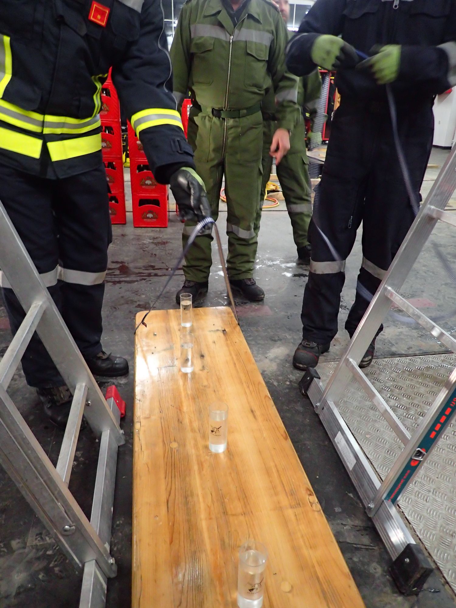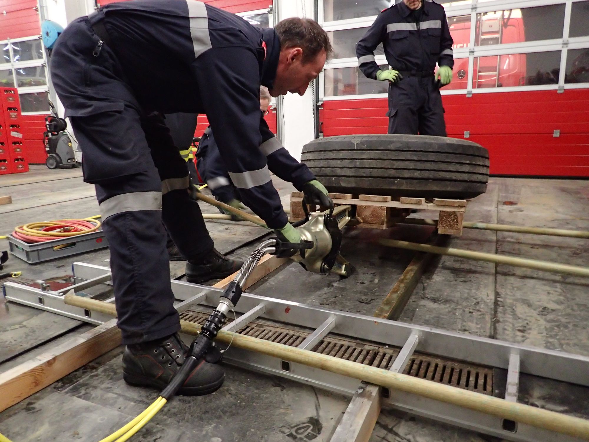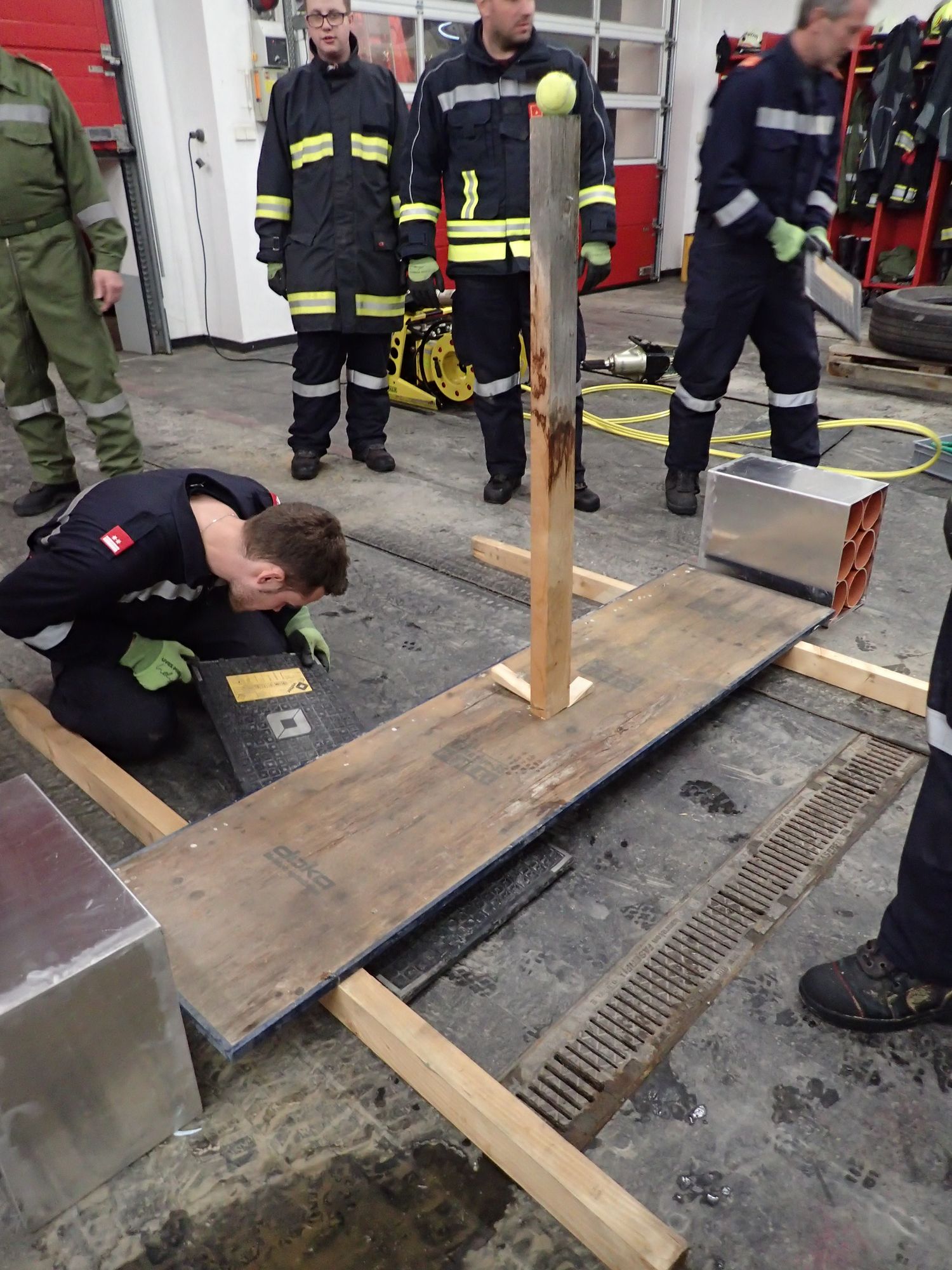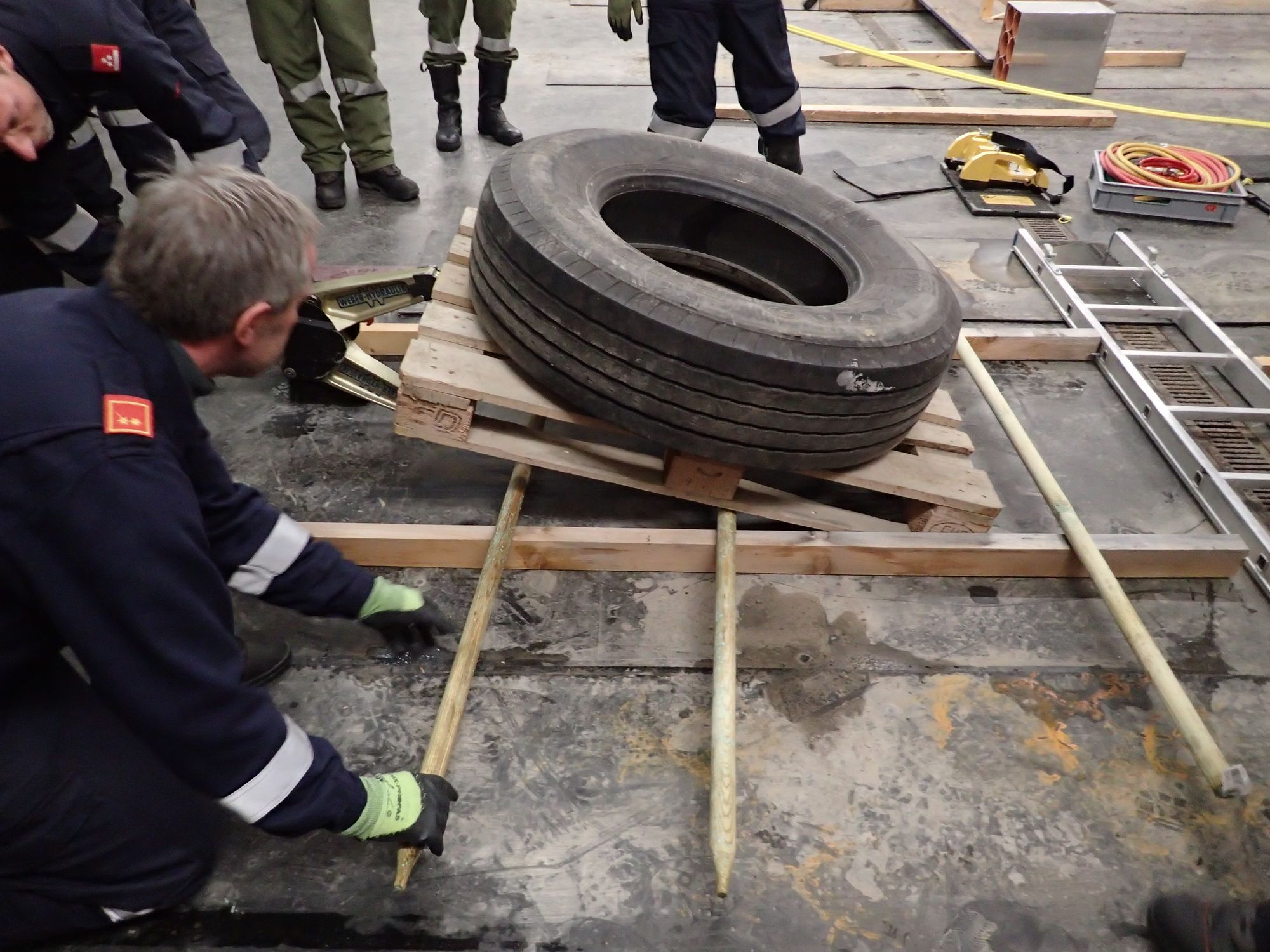 Ziel war es in Teams drei Aufgabenstellungen, unter Einsatz aller zur verfügung stehender Gerätschaften aus den Feuerwehrfahrzeugen, möglichst effizient zu erfüllen - ohne dabei Muskelkraft anzuwenden.