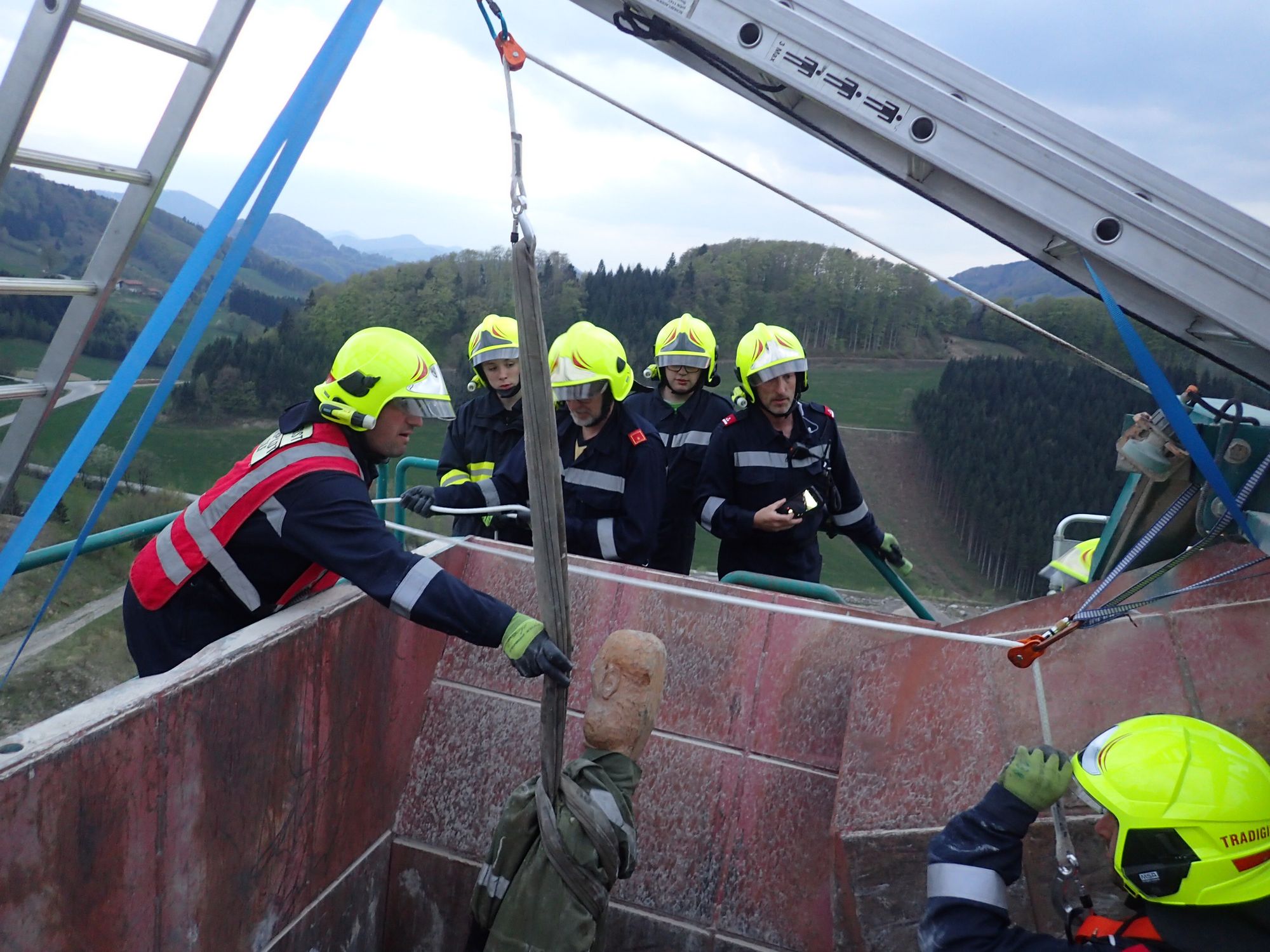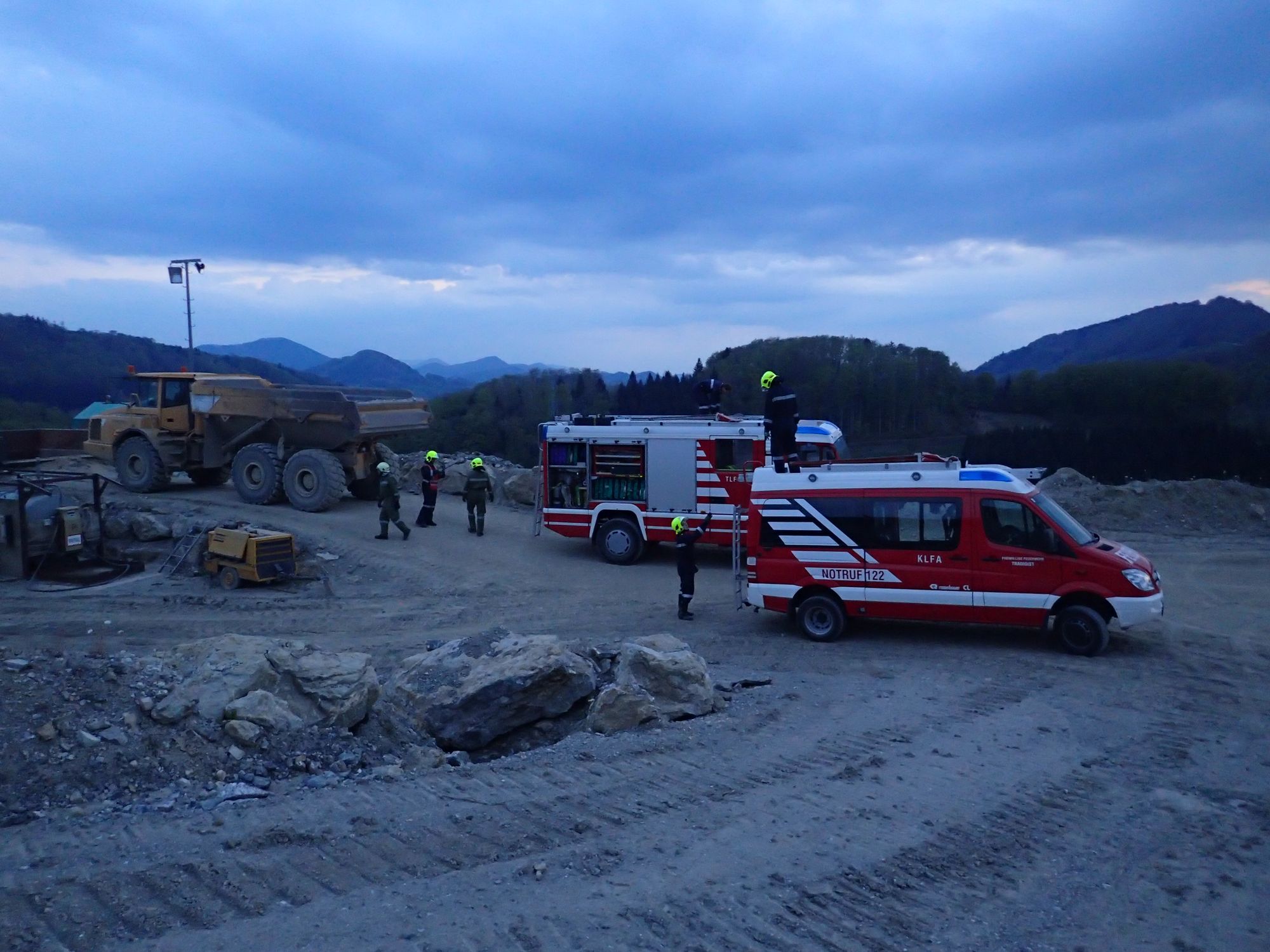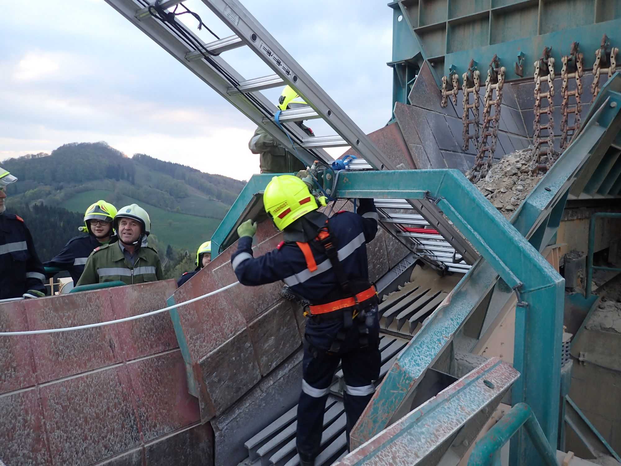 Es wurde simuliert, dass eine Person in den Steinbrecher einer Schottergrube gestürtz war, sich dabei verletzt hatte und somit nicht mehr selbstständig befreien konnte.