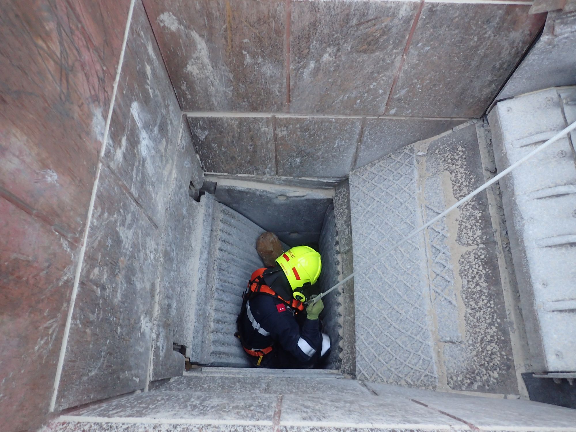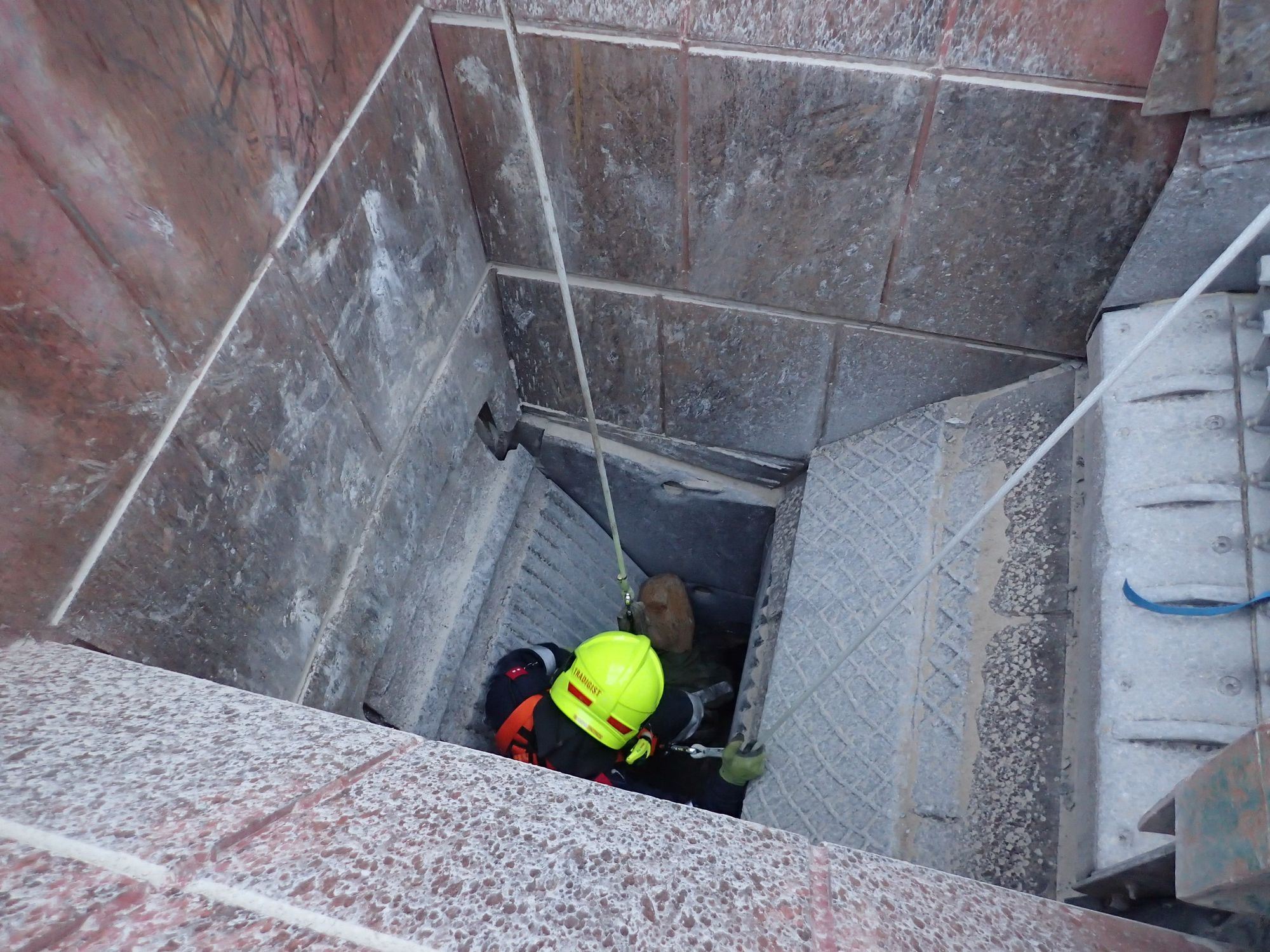 Thema der heutigen Gesamtübung war eine Personenenrettung aus Höhen und Tiefen.