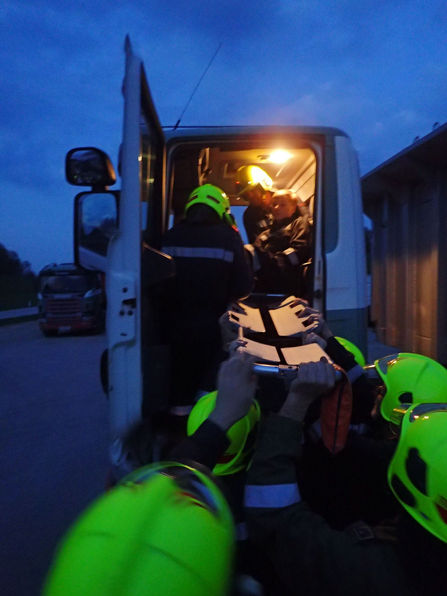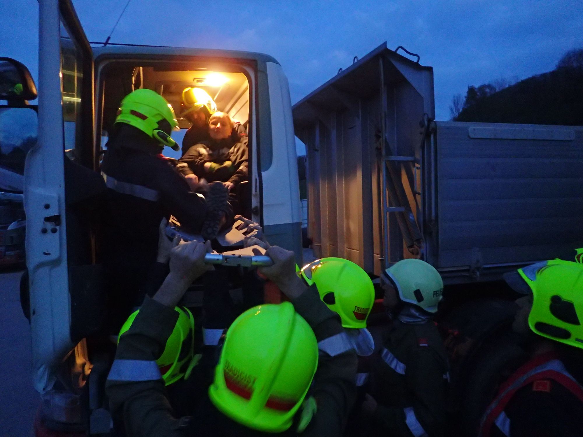 Im Anschluss wurde noch die Personenrettung aus einem LKW mittels Schaufeltrage geübt.