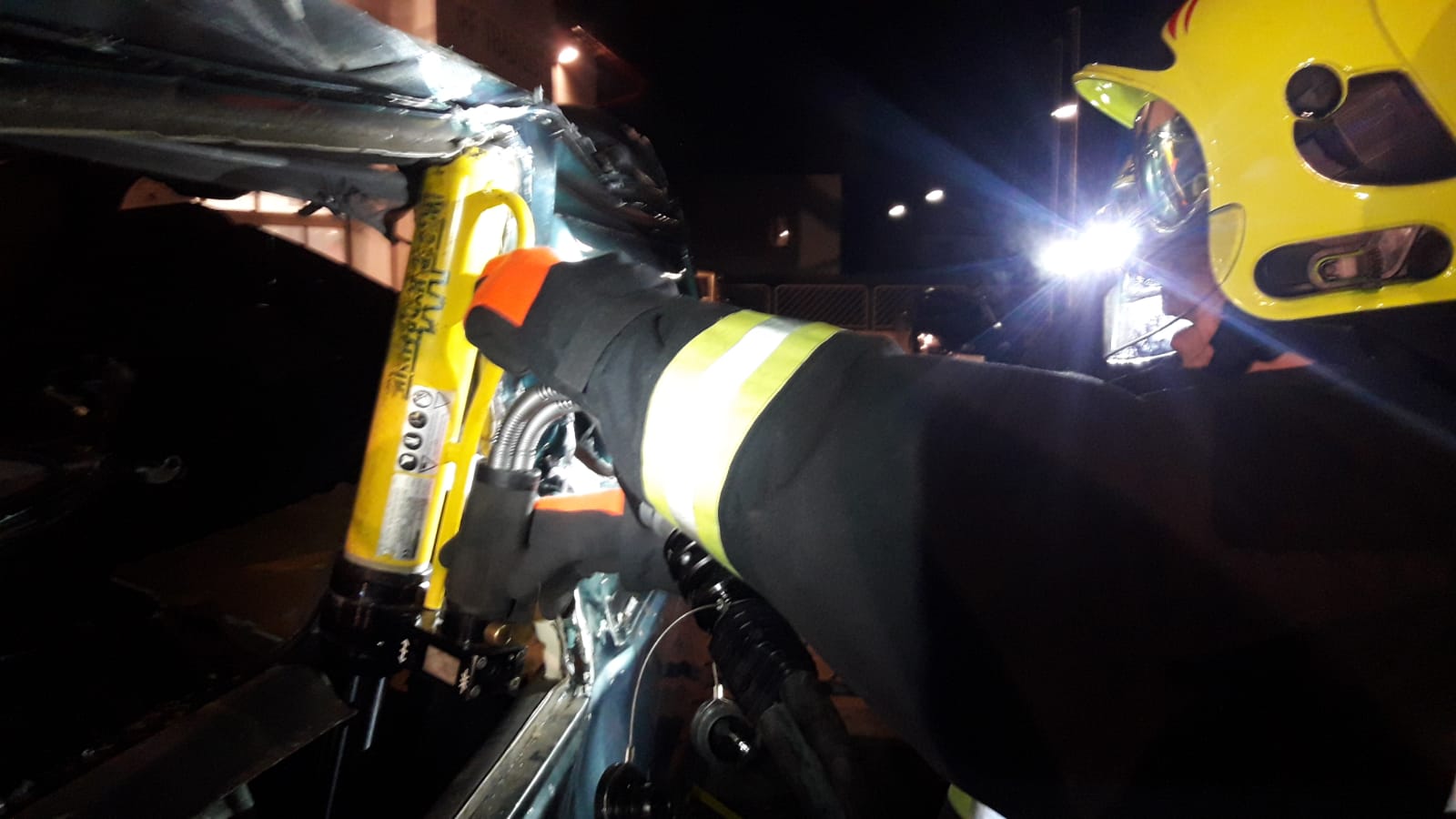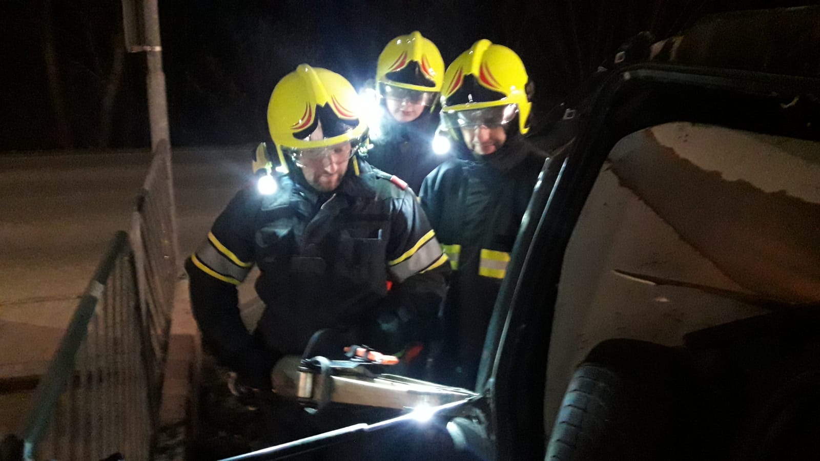 Heute fand wieder eine techn. Übung statt. Bei einem deformierten Klein-Bus wurde mit Spreitzer und Rettungszylinder ein Zugang zum Fahrgastraum hergestellt