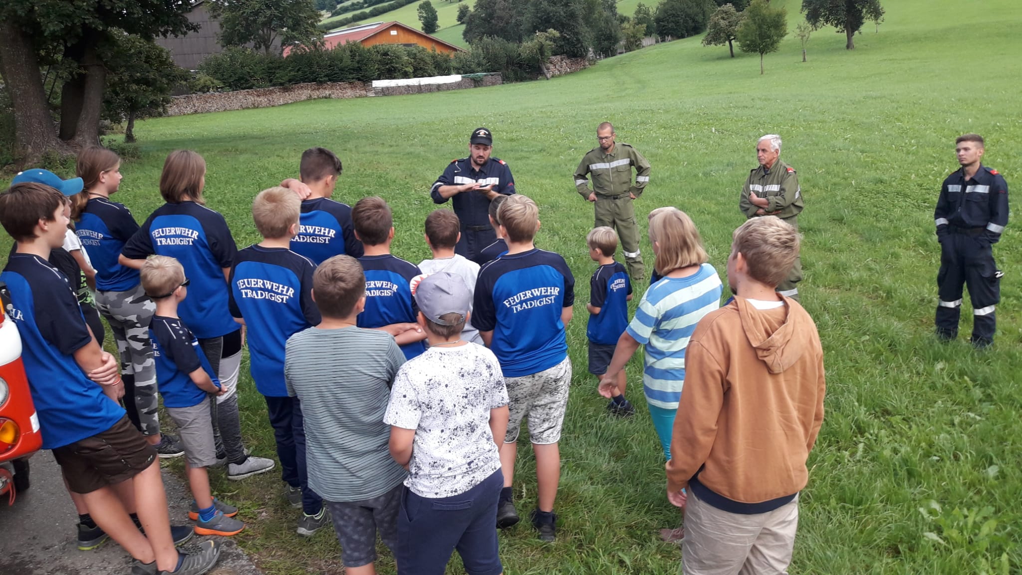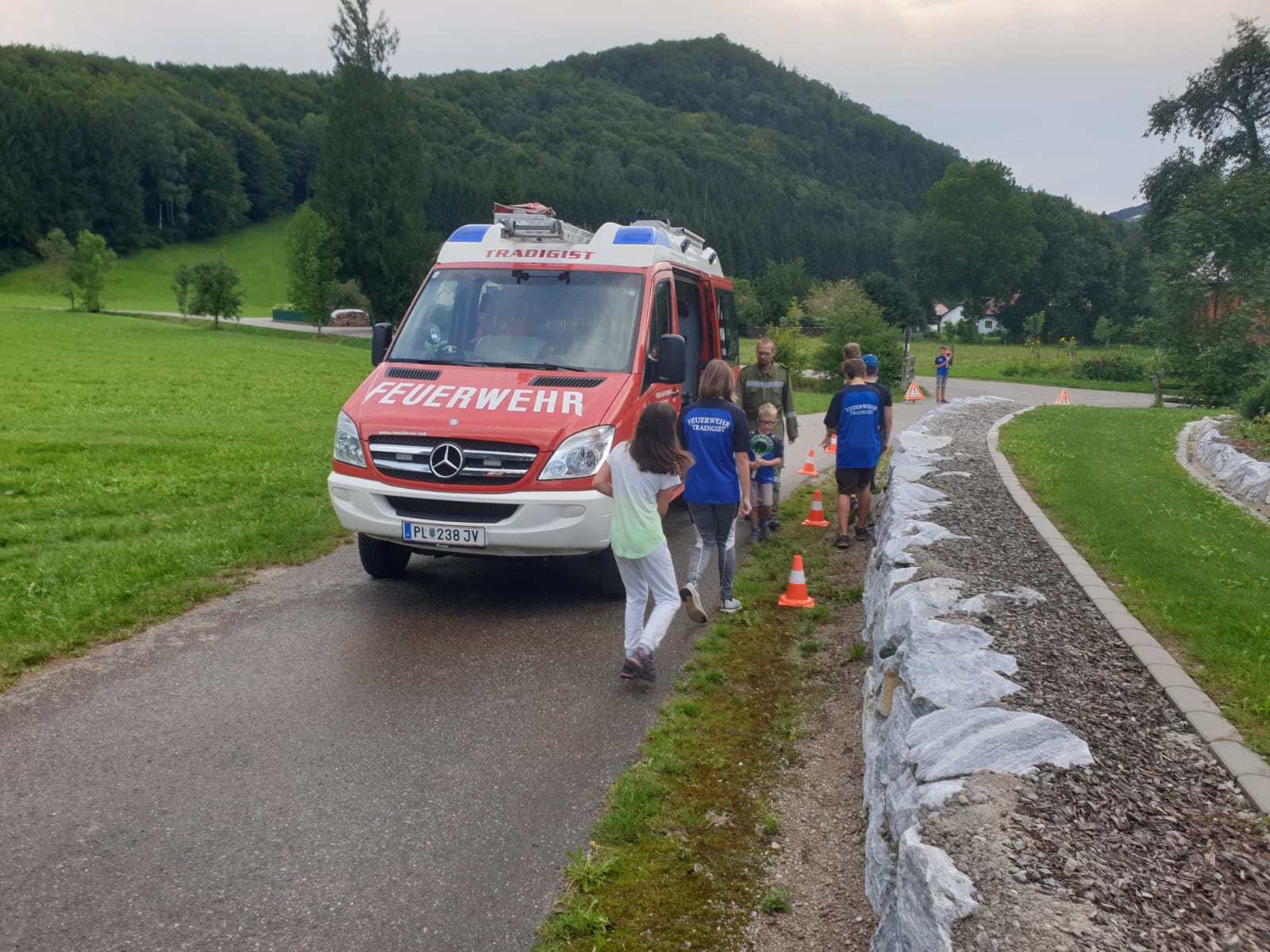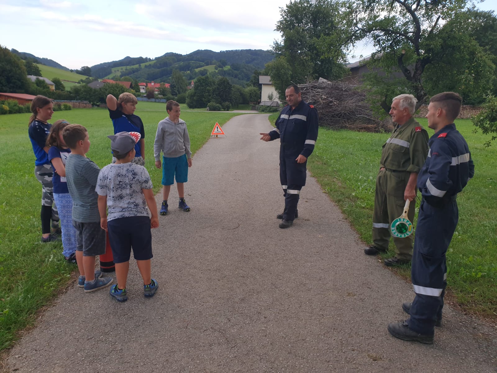 Heute sicherten wir mit Verkehrsleitkegeln, Winkerkellen, Warndreiecken, Blaulicht und Verkehrsleiteinrichtung eine angenommene Unfallstelle ab.