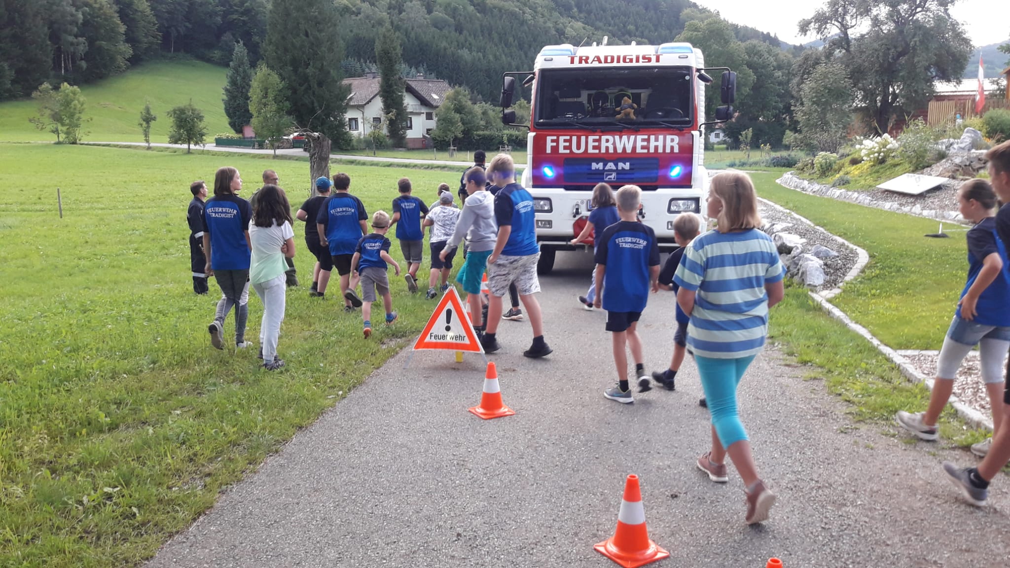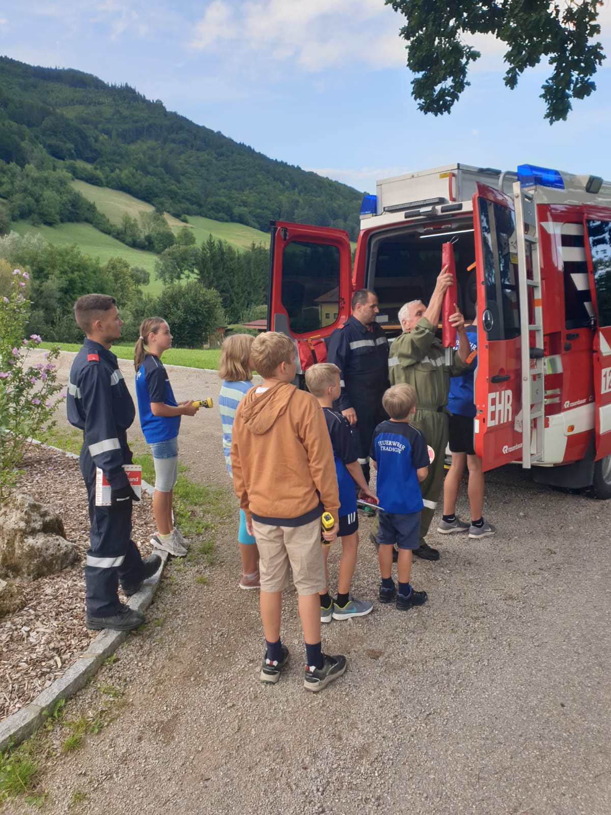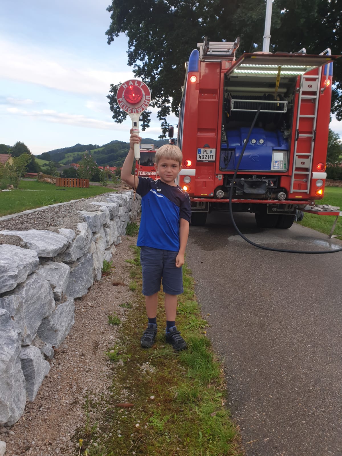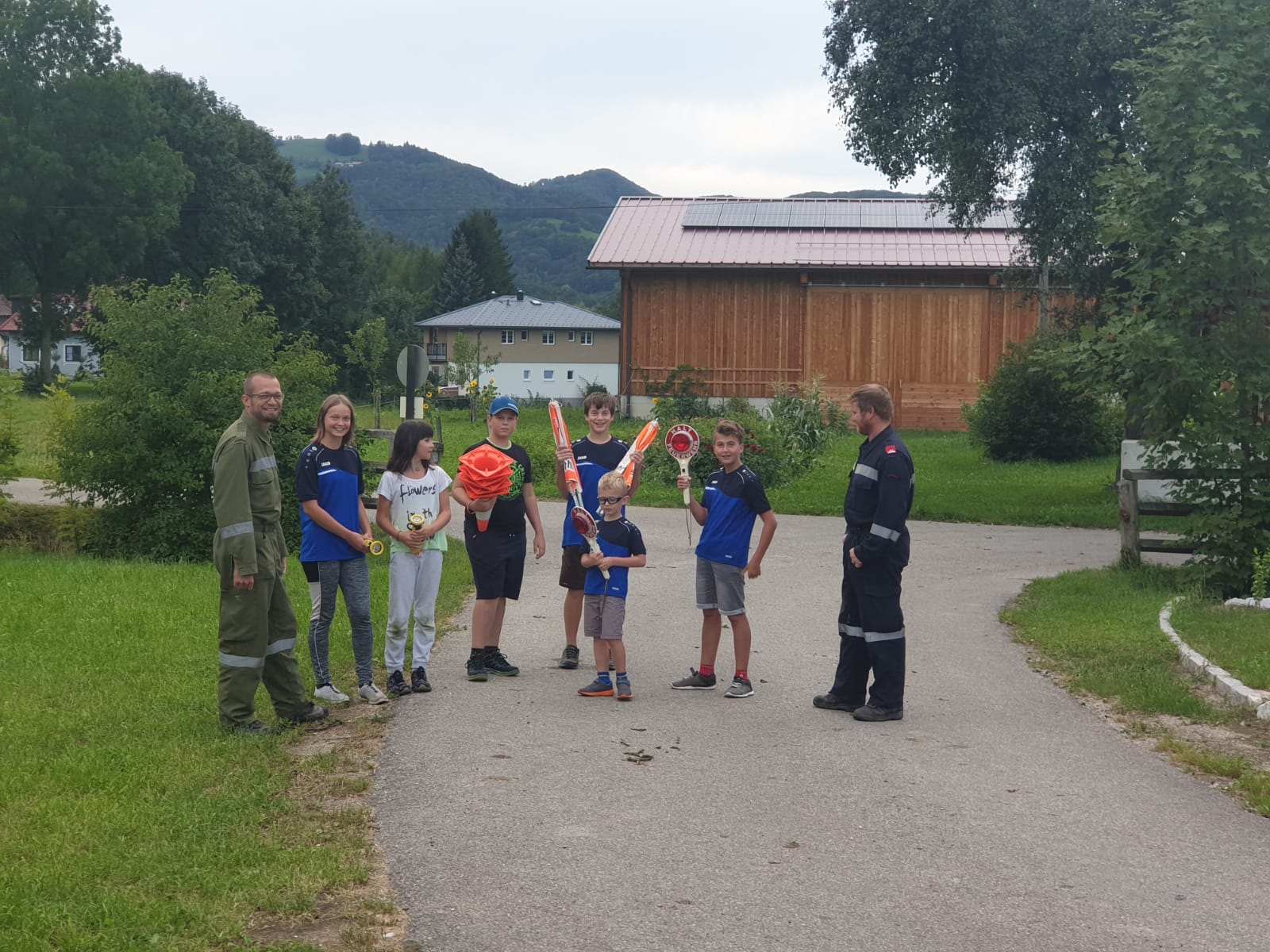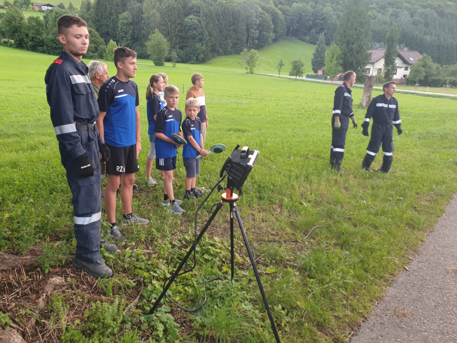 Danach wurde aus Steckleitern und einer Plane ein Auffangbecken (z.B. für austretende Schadstoffe) errichtet. Zur Demonstration wurde das Becken mit Wasser gefüllt und wieder ausgepumpt.