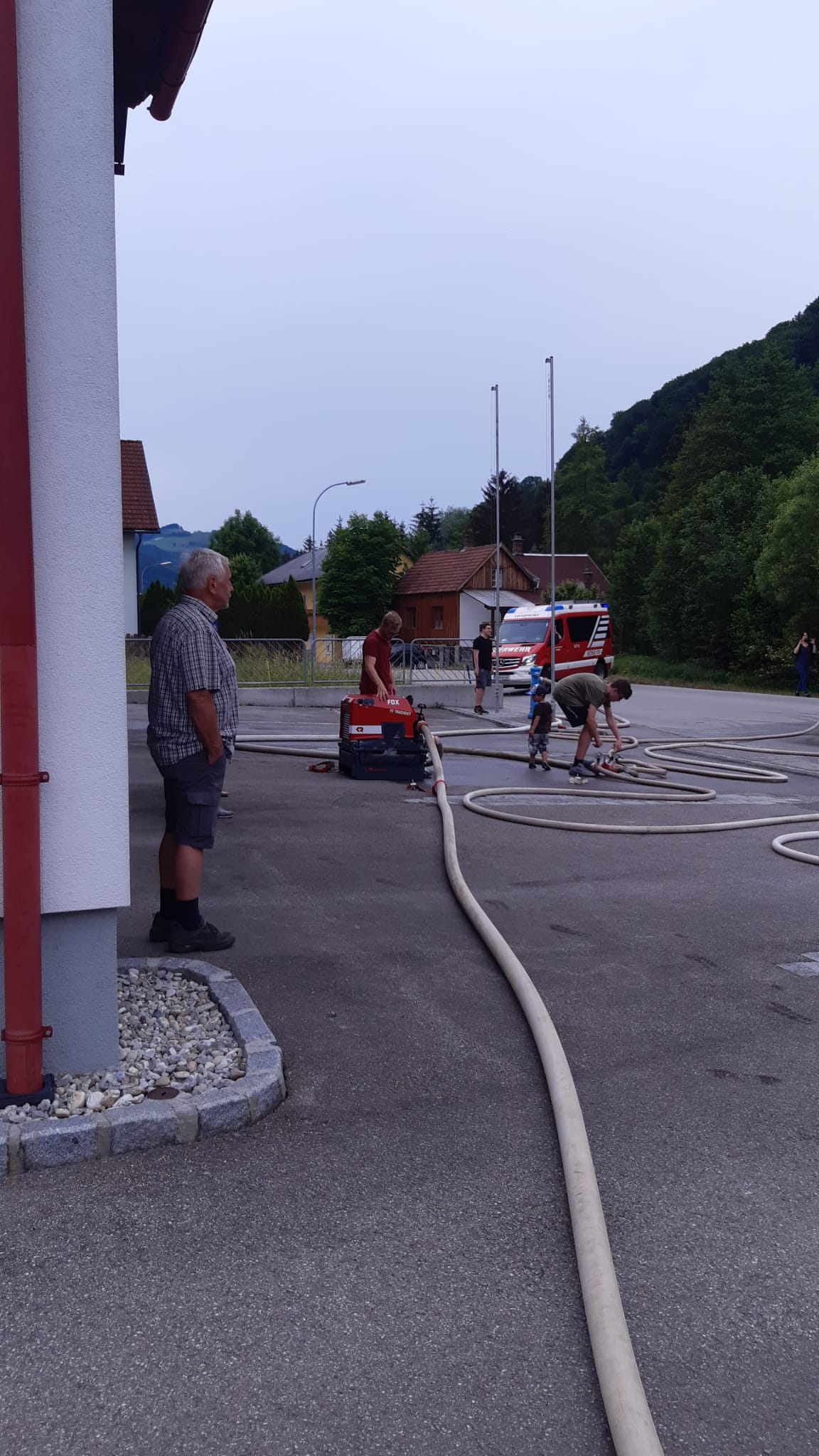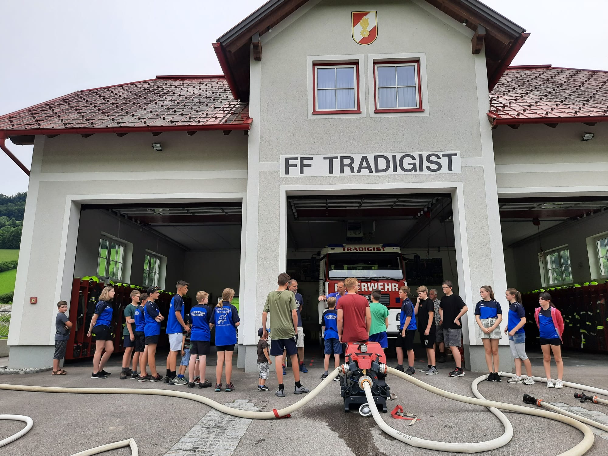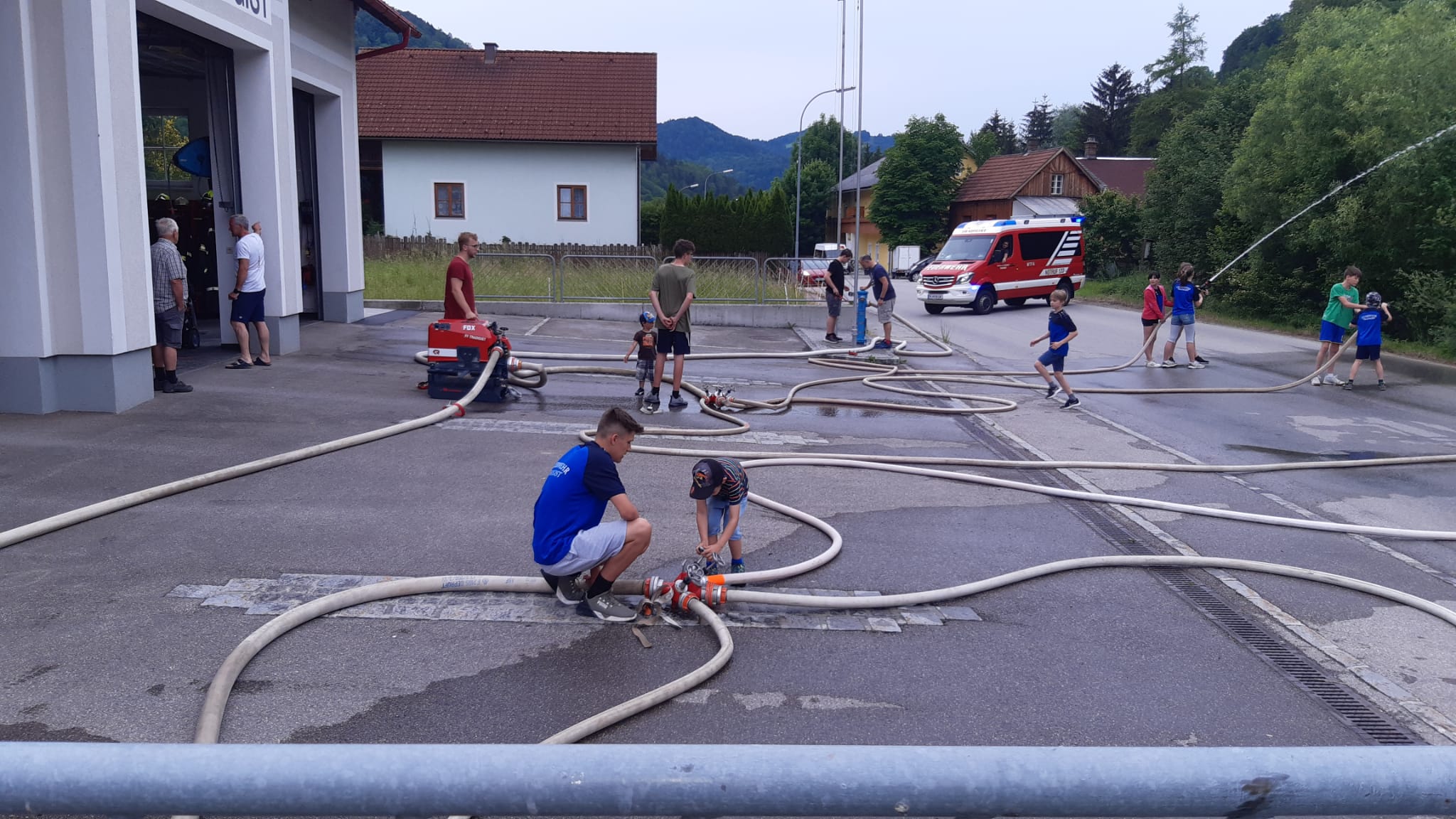 Die heutige Übung war wieder für Interessierte zum Reinschnuppern ins Feuerwehrwesen offen. Nach einer Besprechung und Gruppenzuteilung im Feuerwehrhaus wurden Wasserversorgung und Schlauchleitungen aufgebaut, um den angenommenen Brand zu löschen.