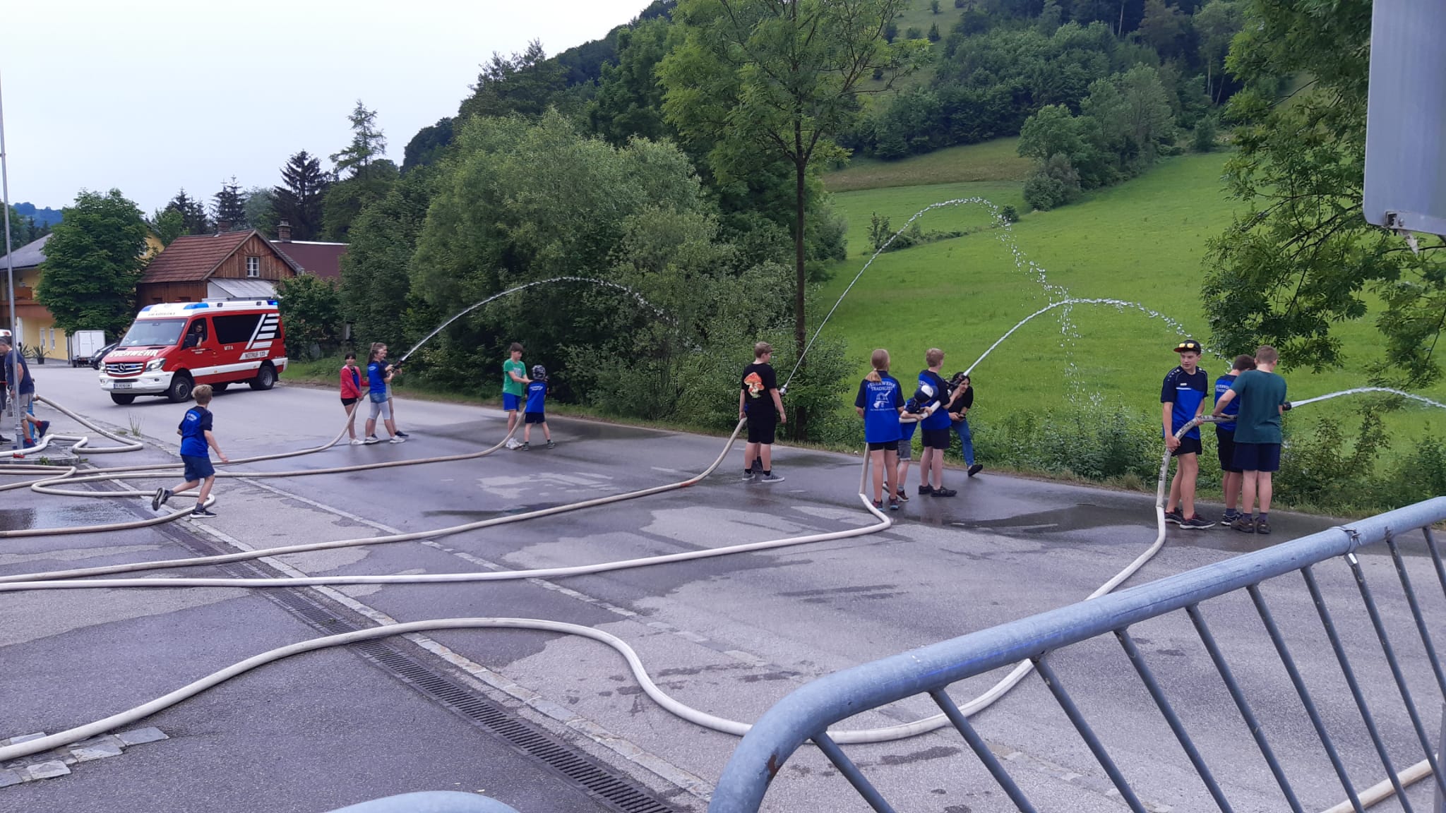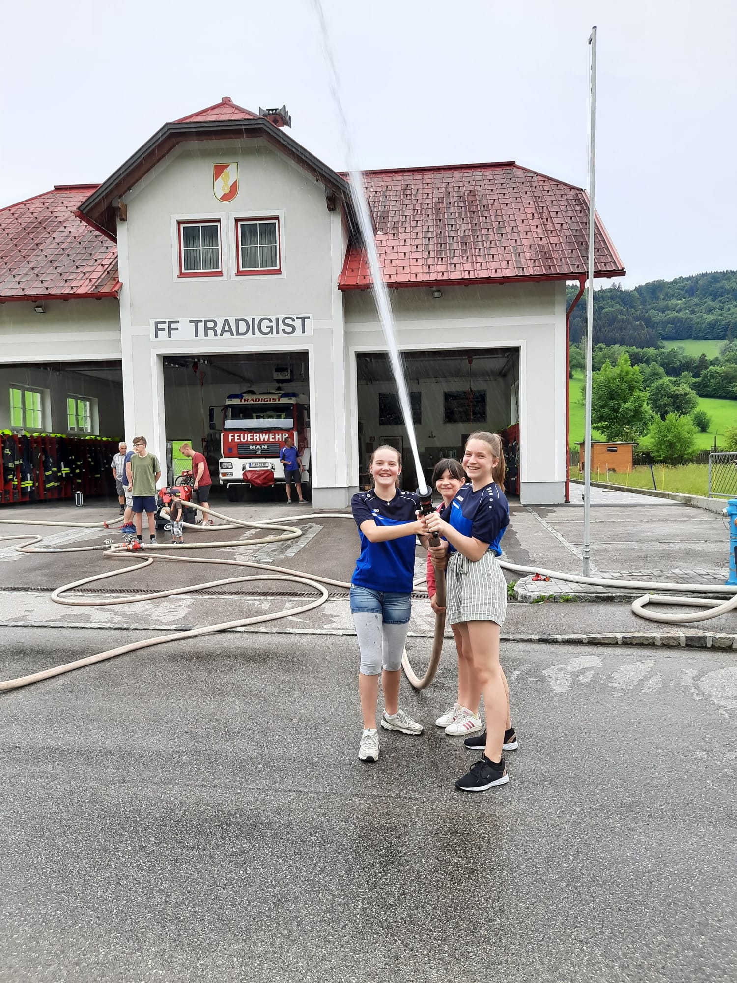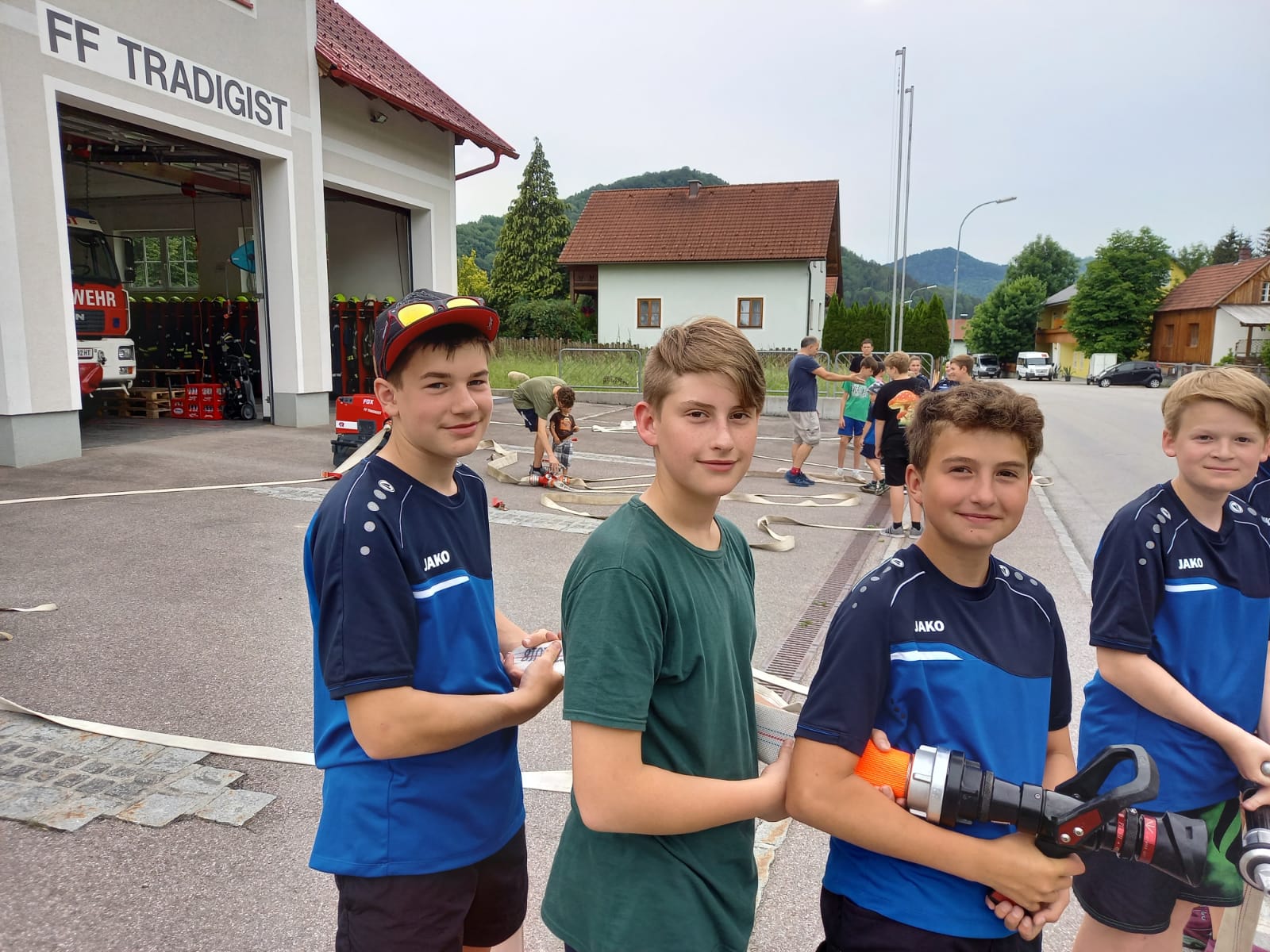 Die heutige Übung war wieder für Interessierte zum Reinschnuppern ins Feuerwehrwesen offen. Nach einer Besprechung und Gruppenzuteilung im Feuerwehrhaus wurden Wasserversorgung und Schlauchleitungen aufgebaut, um den angenommenen Brand zu löschen.