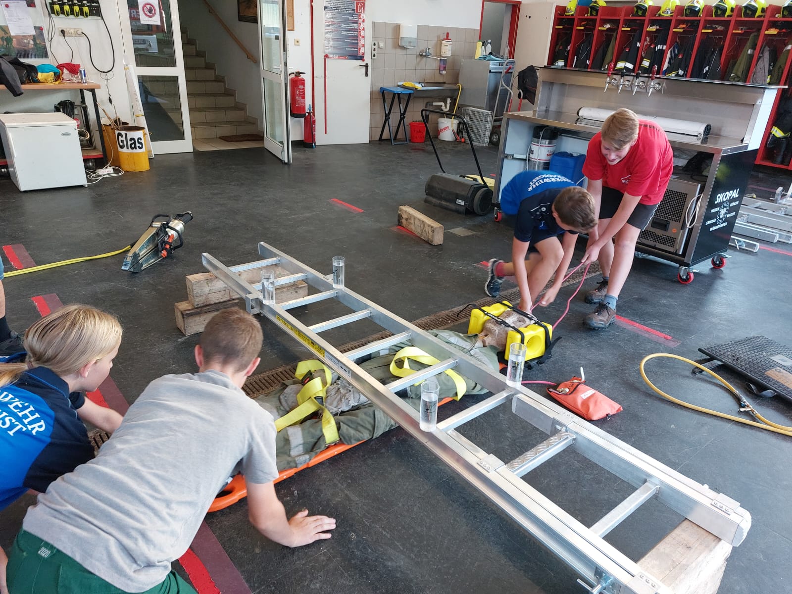 Bei der heutigen offenen Übung wurden Hebe- und Bewegungsmöglichkeiten von schweren Gegenständen erprobt. In 2 Stationen fanden die Teilnehmer*innen Gegenstände vor, die es zu Heben und/oder zu Bewegen galt. Gute Teamarbeit, Geschicklichkeit, Kenntnisse über die Hilfsmittel/Gerätschaften und deren Einsatzmöglichkeiten sind wichtige Parameter, um im Einsatzfall richtig und routiniert reagieren zu können. Als Hilfsmittel dienten den Teams Hebekissen, Spreizer und Rangierroller.