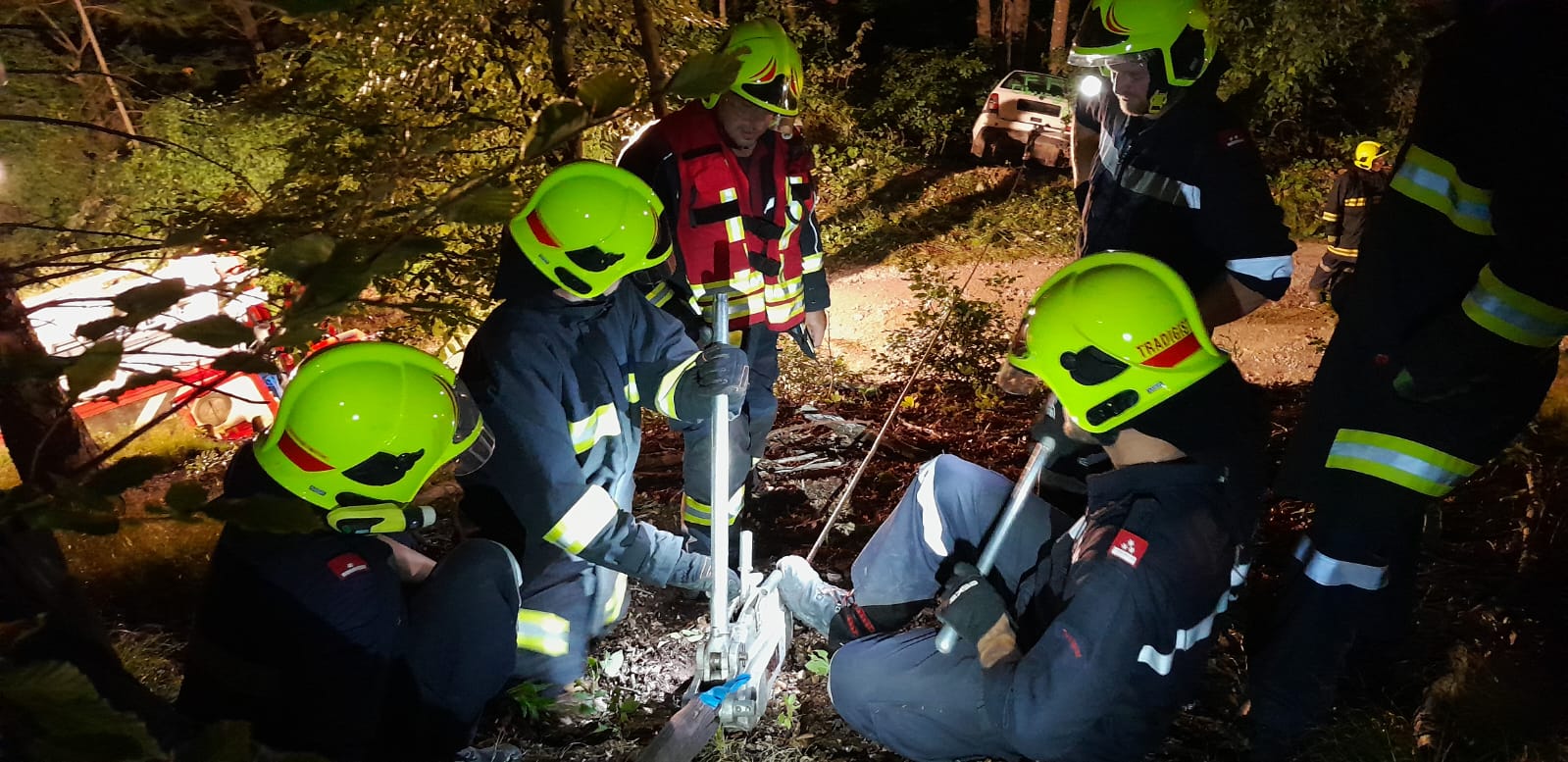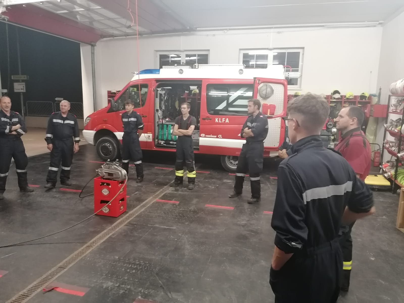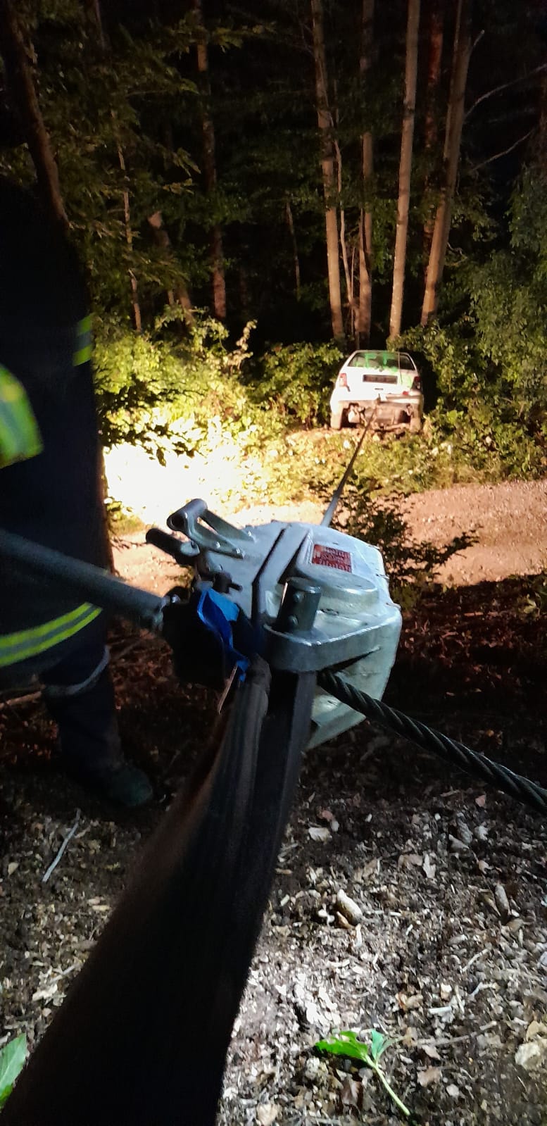 Bei der heutigen techn. Übung wurde eine PKW - Bergung im unwegsamen Gelände mittels Greifzug geübt.