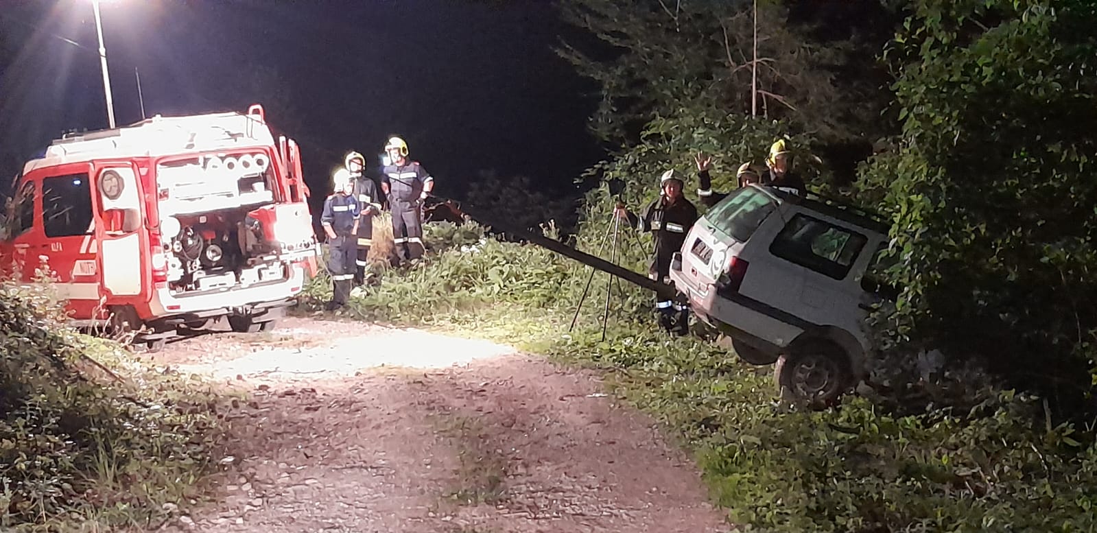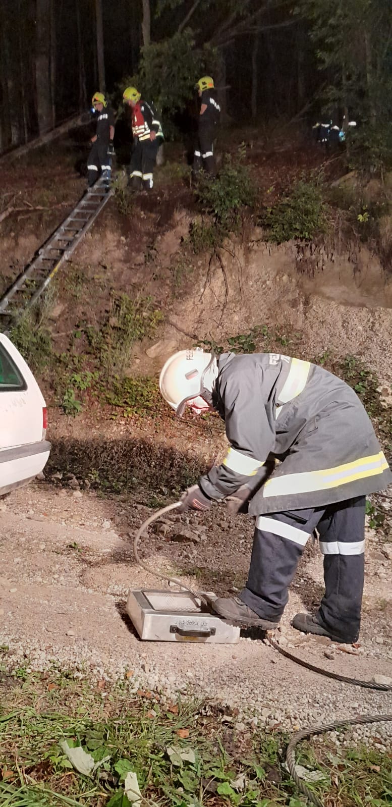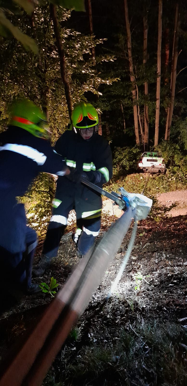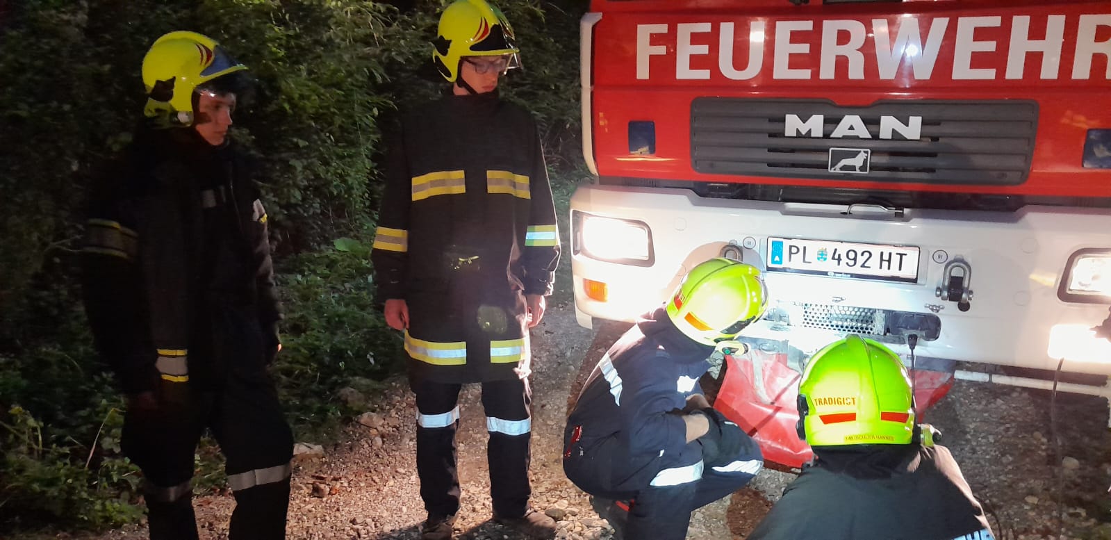 Bei der heutigen techn. Übung wurde eine PKW - Bergung im unwegsamen Gelände mittels Greifzug geübt.