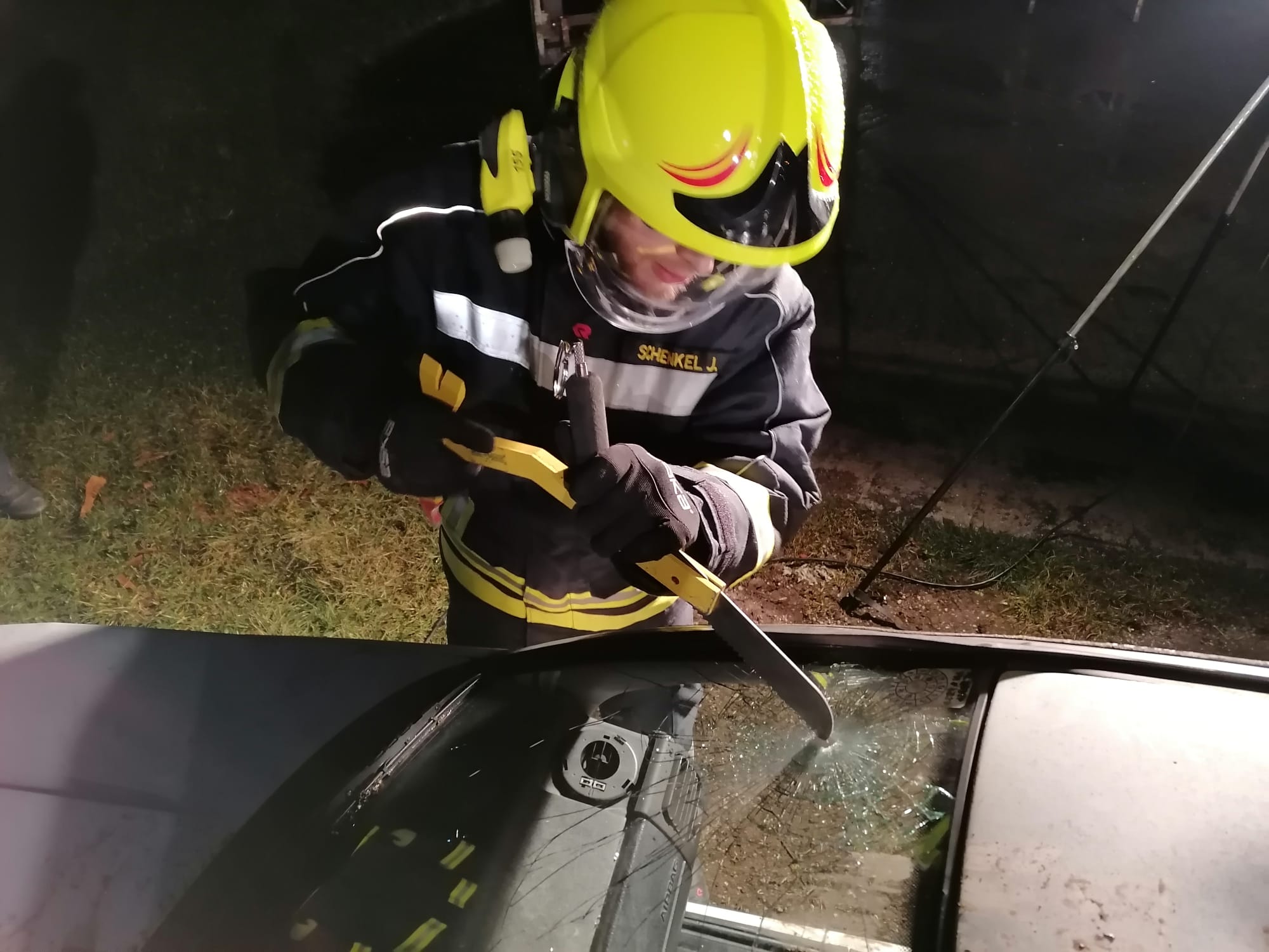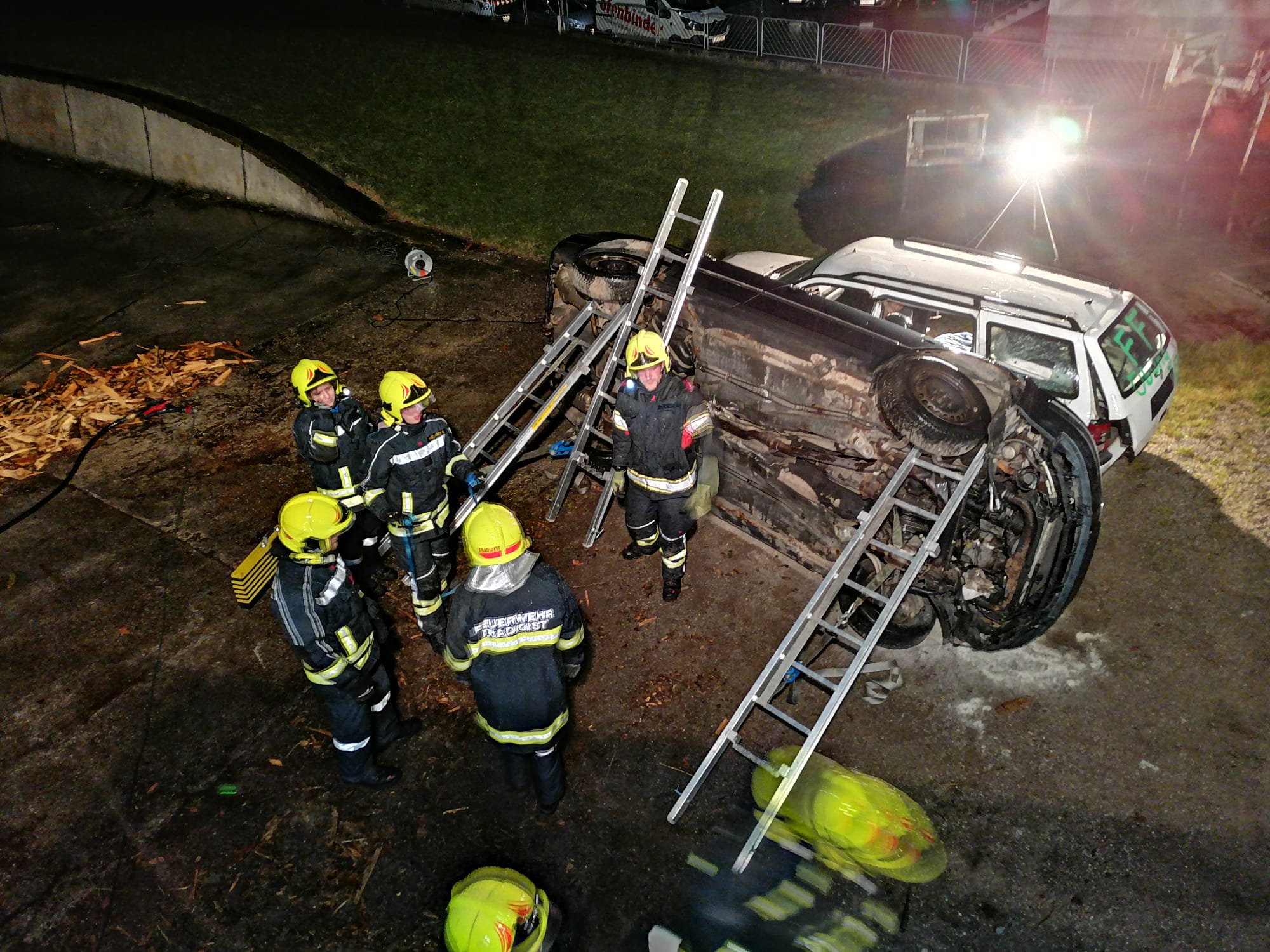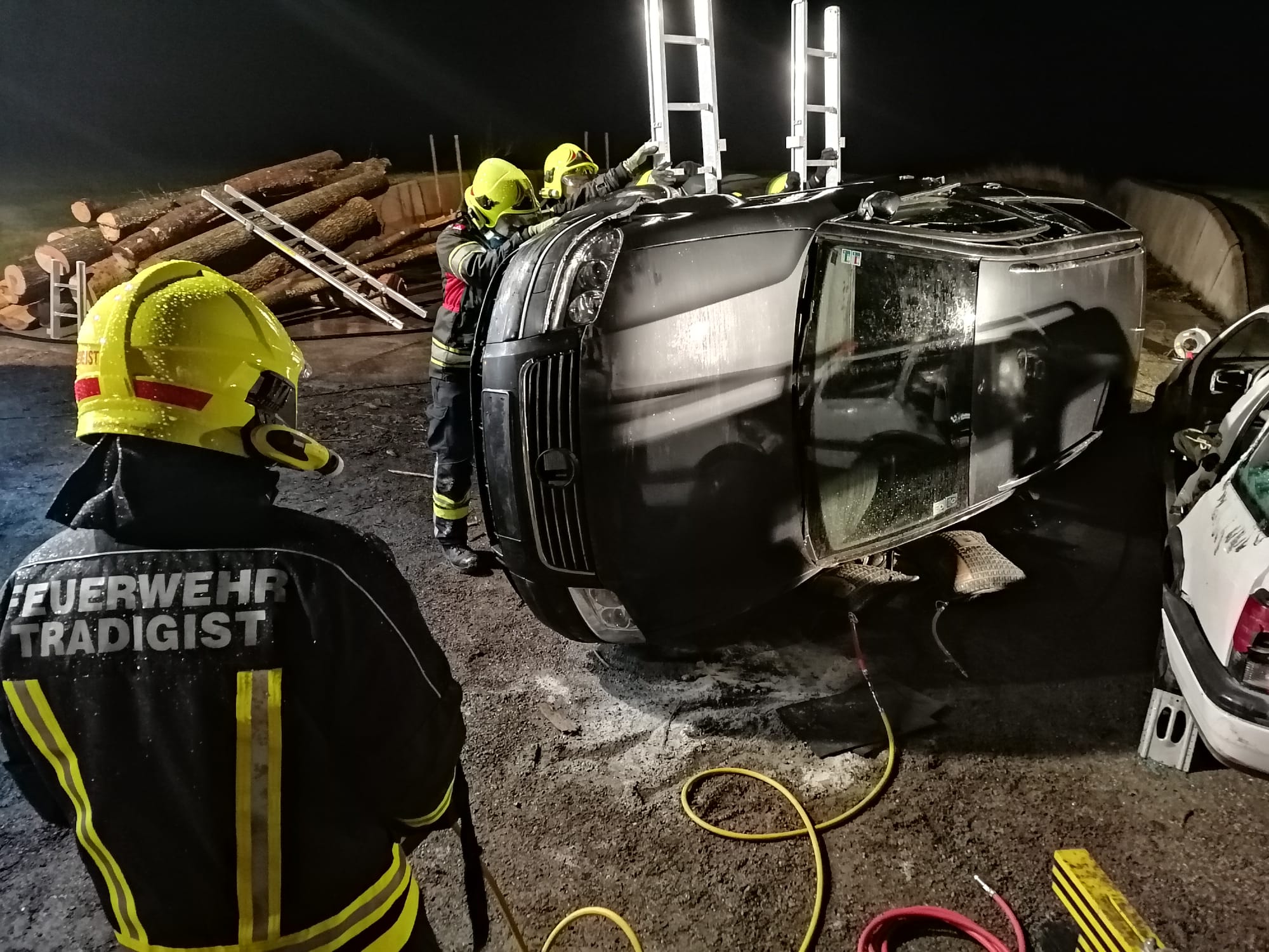 Zum Einsatz kamen: hydraulisches Rettungsgerät (Schere und Spreizer), Hebekissen, Glassäge, Spineboard und diverse Absicherungs- und Beleuchtungsmittel.