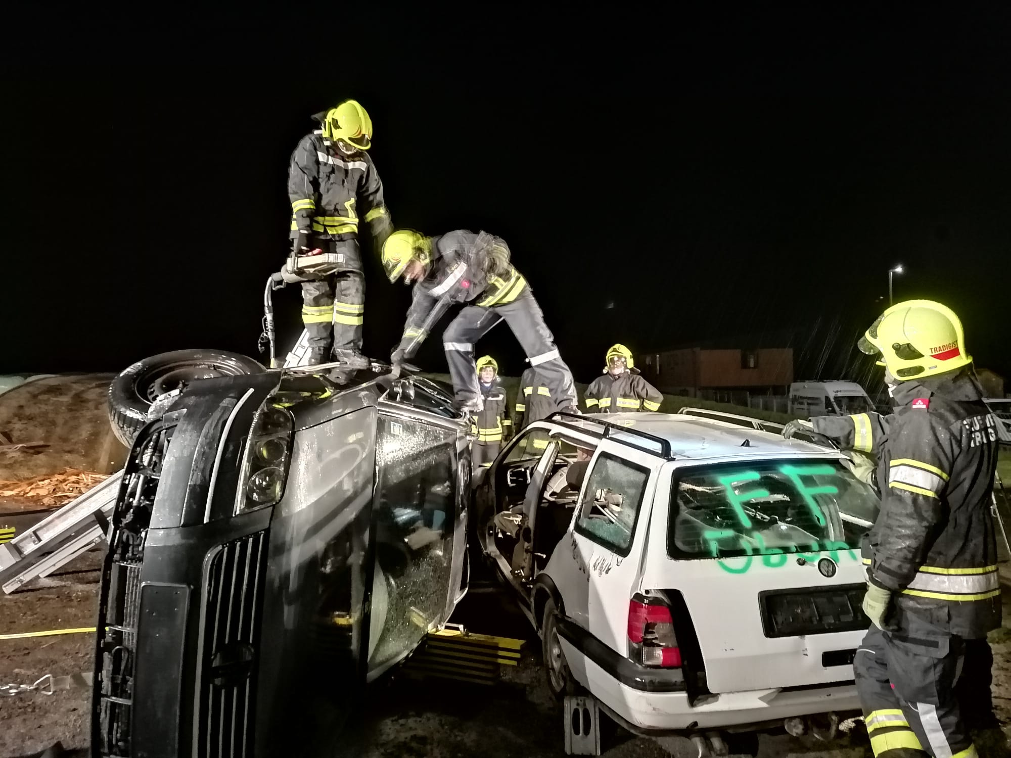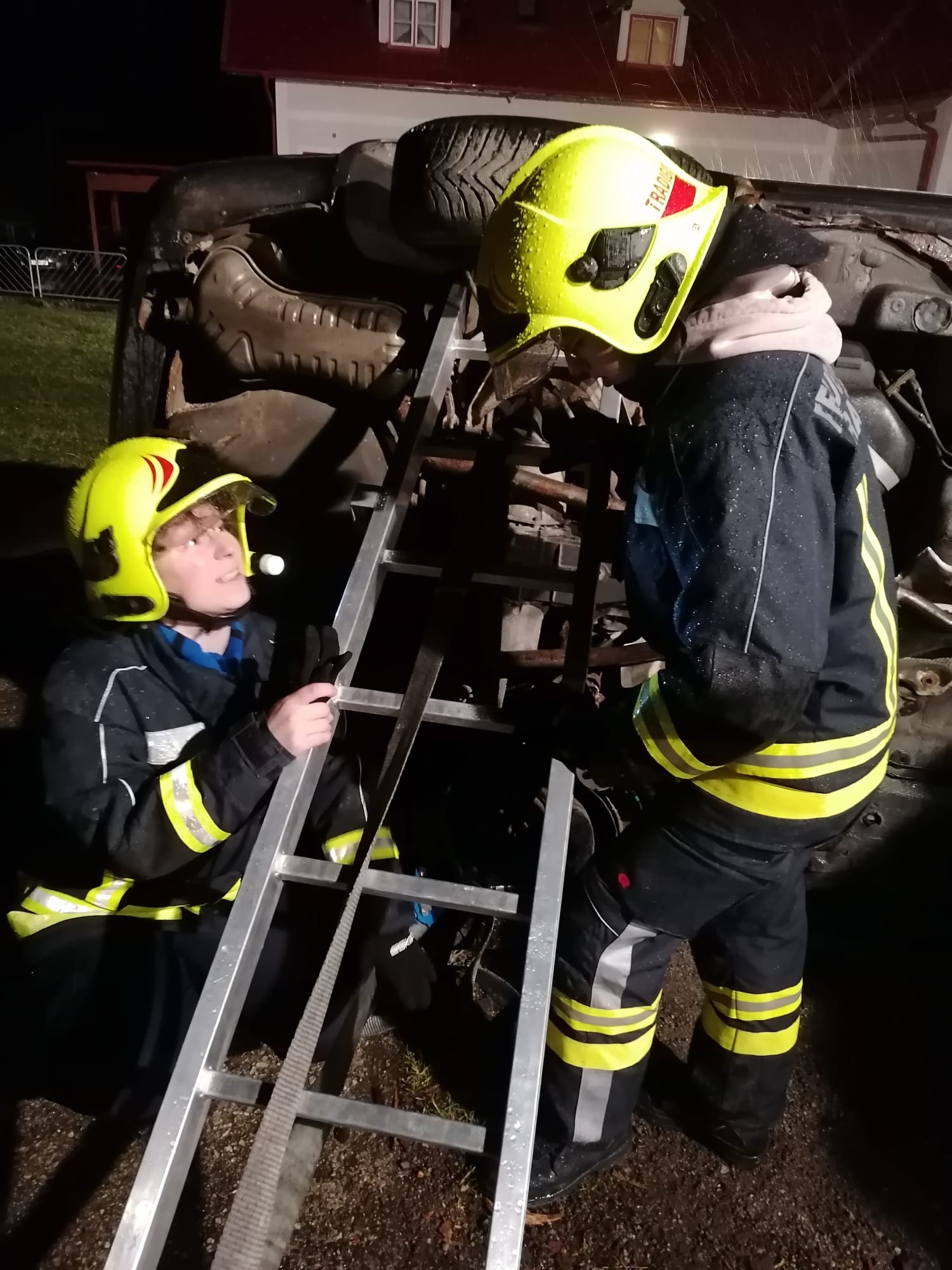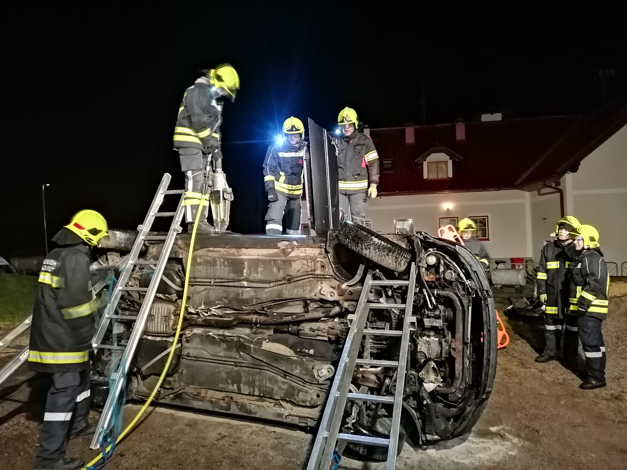 Zum Einsatz kamen: hydraulisches Rettungsgerät (Schere und Spreizer), Hebekissen, Glassäge, Spineboard und diverse Absicherungs- und Beleuchtungsmittel.