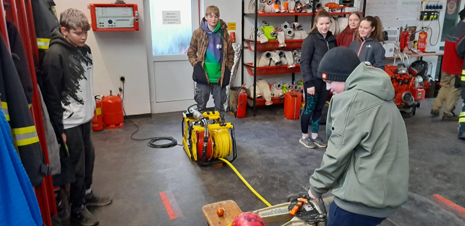 In kleinen Übungsgruppen aufgeteilt wurden Gerätschaften und Hilfsmittel in den Feuerwehrfahrzeugen erkundet, Geschicklichkeit mit dem hydraulischen Rettungsgerät (Spreizer) erprobt, und Aufgabenstellungen über Funk übermittelt. Den Abschluss stellte eine Besprechung aller Übungsteile dar.