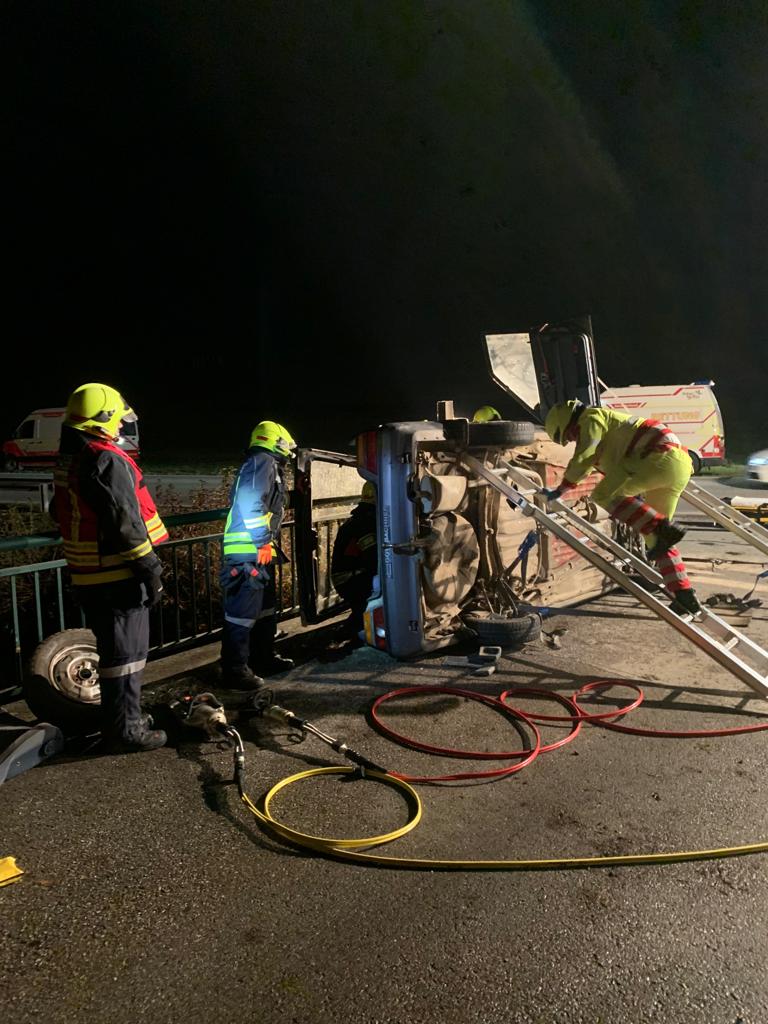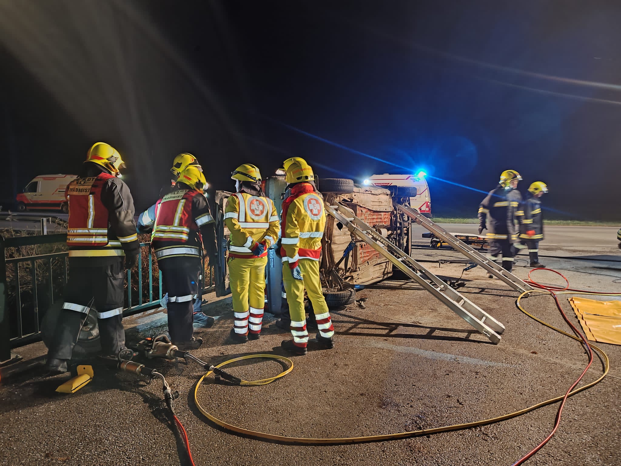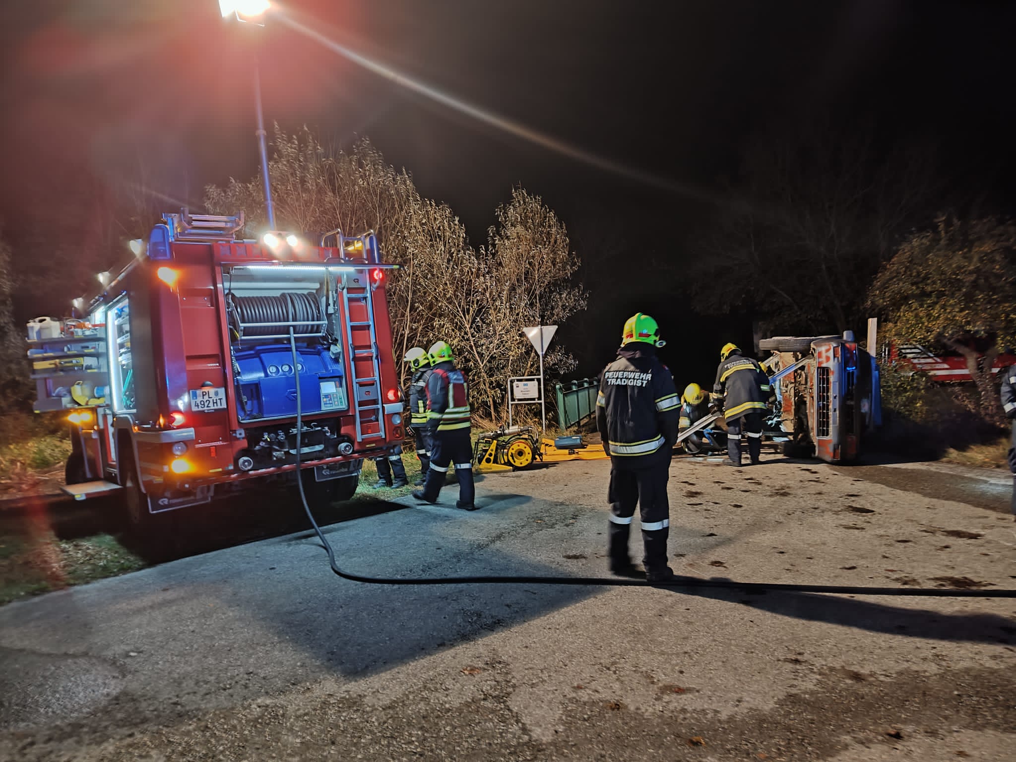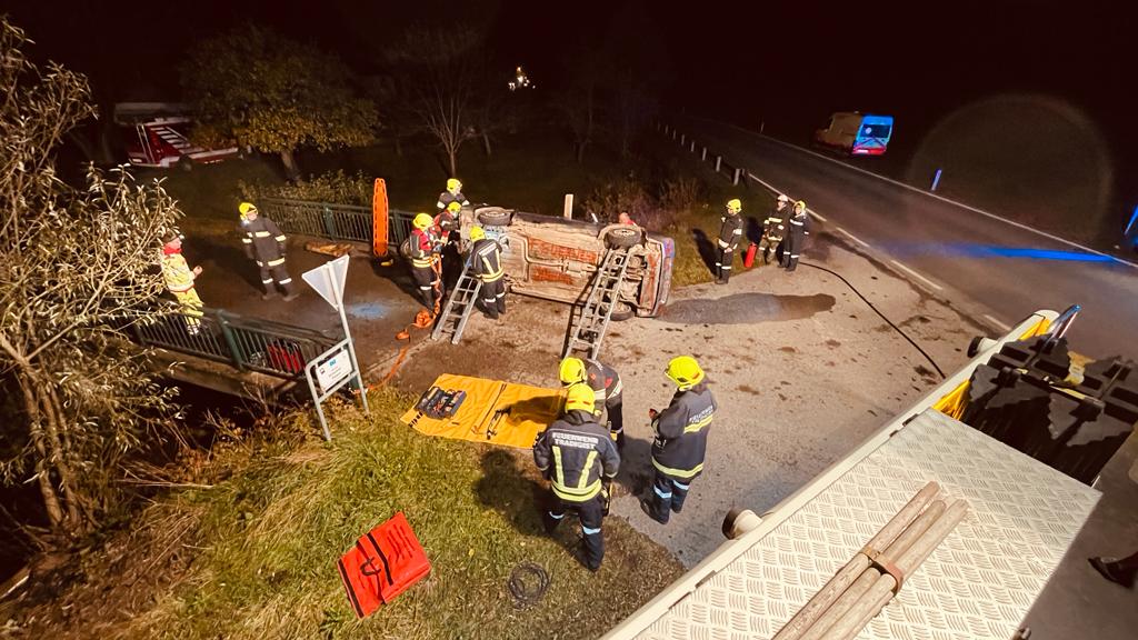 Das Fahrzeug musste als Erstes mittels Steckleitern stabilisiert werden, um ein Umkippen zu verhindern. Weiters wurde mittels hydraulischem Rettungsgerät sowohl über den Kofferraum als auch über die Beifahrerseite ein Zugang zum Patienten geschaffen. Gemeinsam mit den Rettungskräften des ASBÖ wurde die verletze Person mittels Spineboard über den Kofferraum aus dem Auto gerettet.