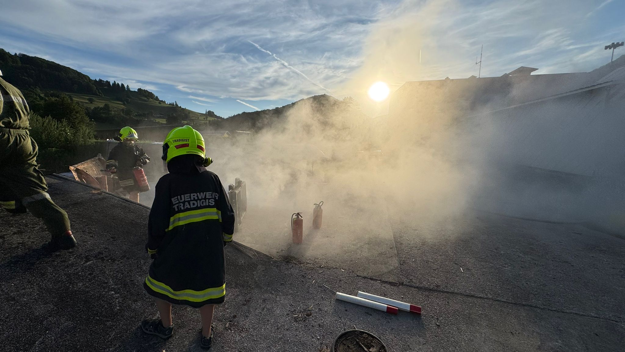 Es galt die Lage zu erkunden, die Unfallstelle abzusichern, den Brandschutz herzustellen und mittels Hebekissen die unter dem PKW eingeklemmte Person zu befreien.