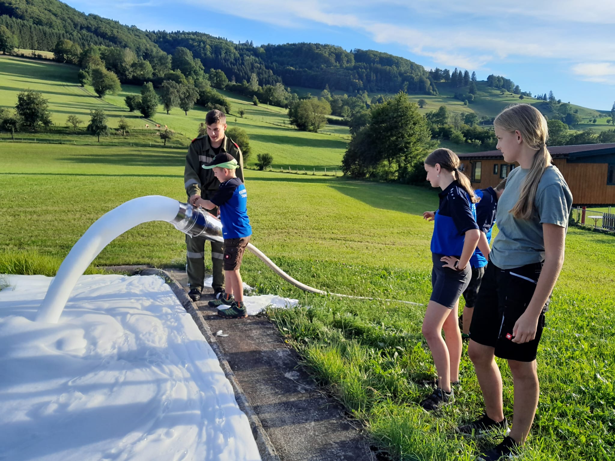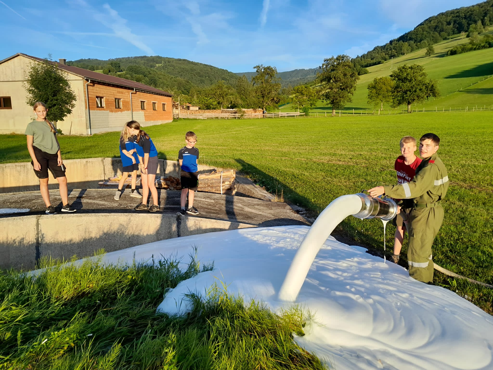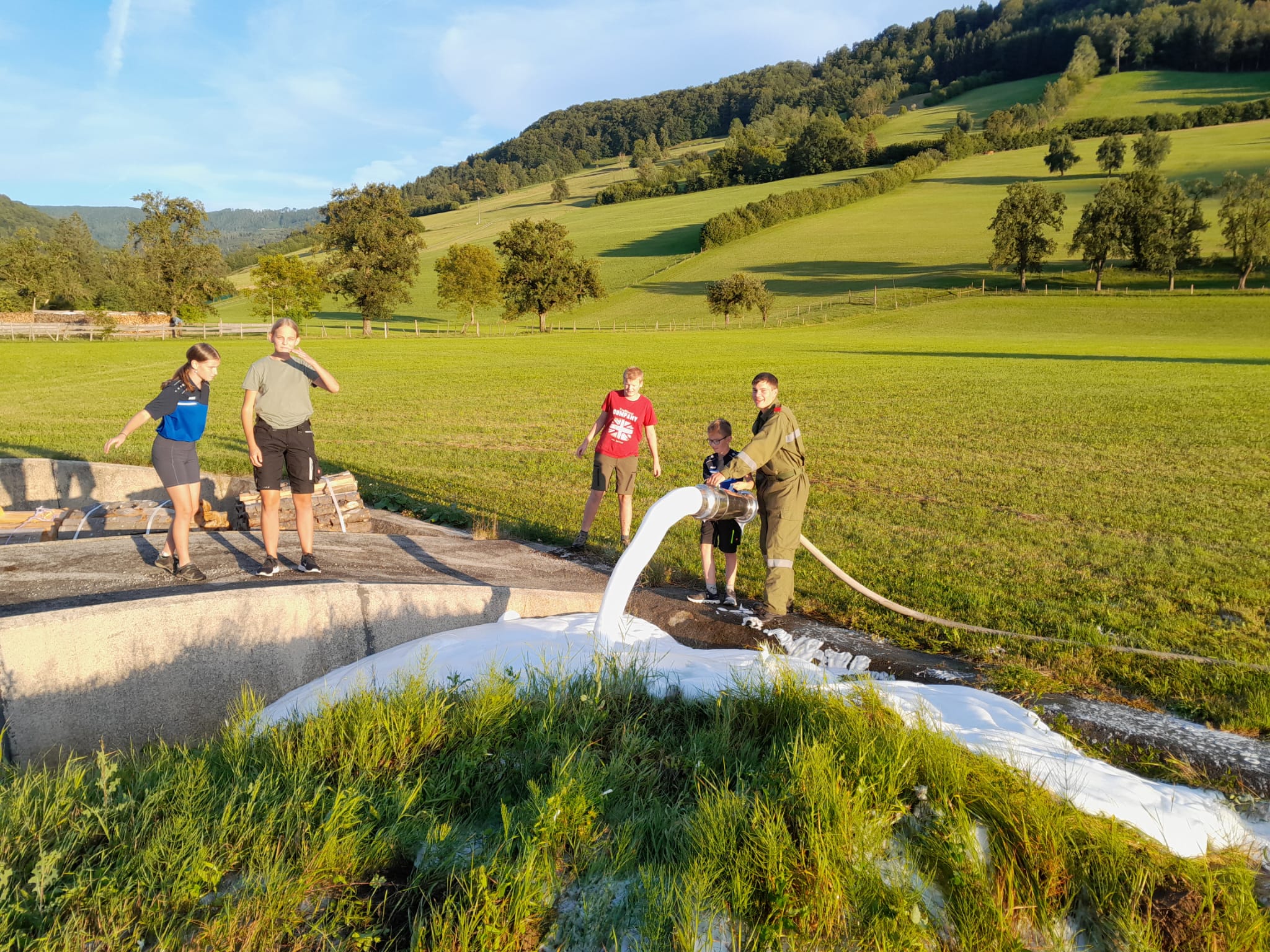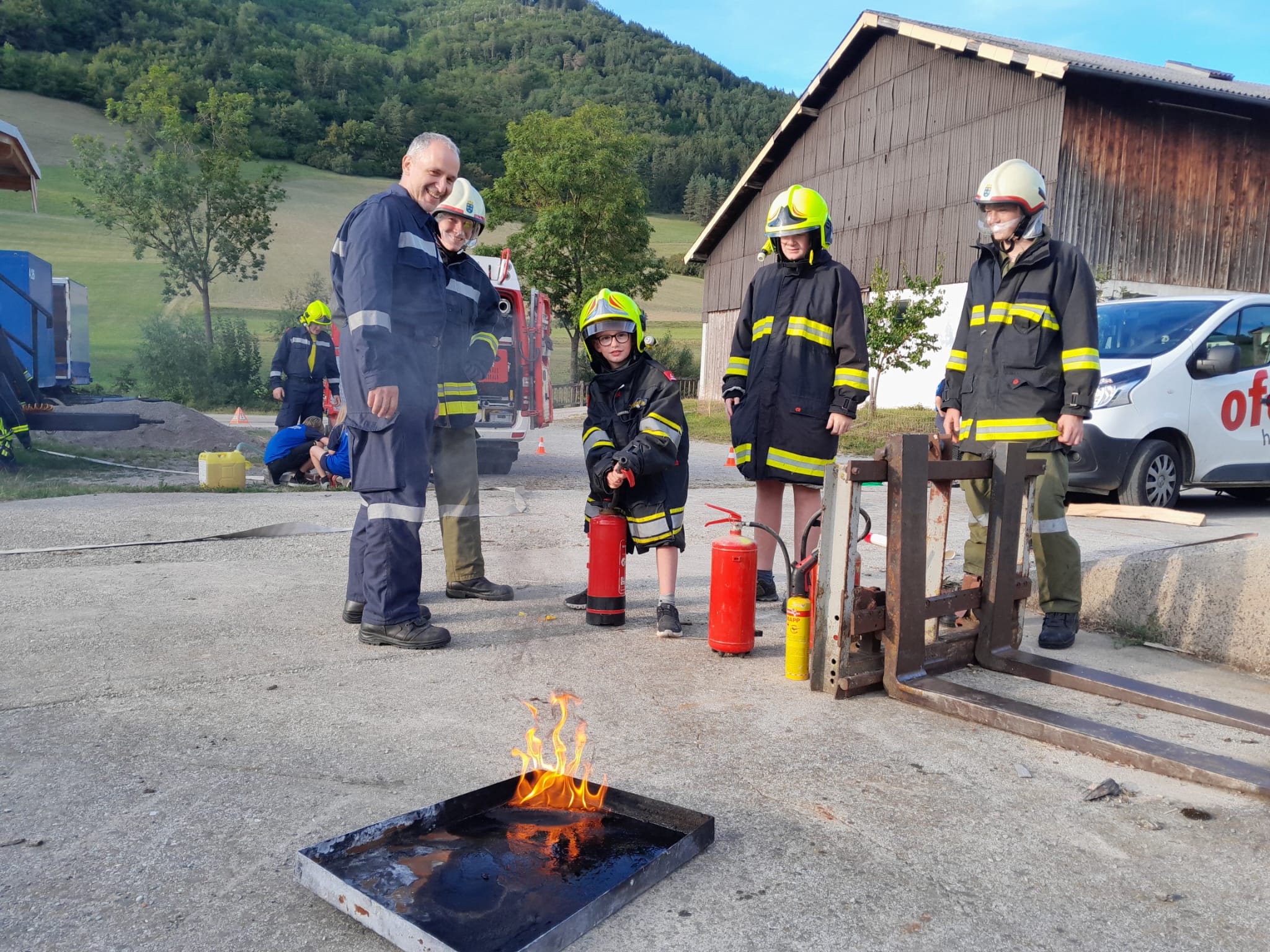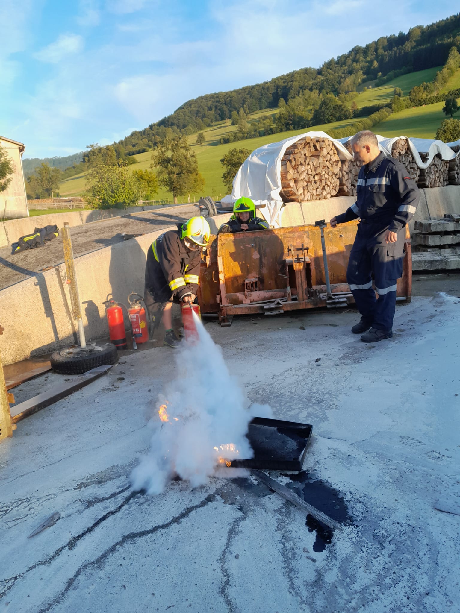 Es galt den richtigen Umgang mit Feuerlöschern und Schaummittel zu üben. Im Zuge dessen wurde das Wissen über verschiedene Löschtechniken, Löschmittel und deren richtige Handhabung thematisiert und vertieft.
