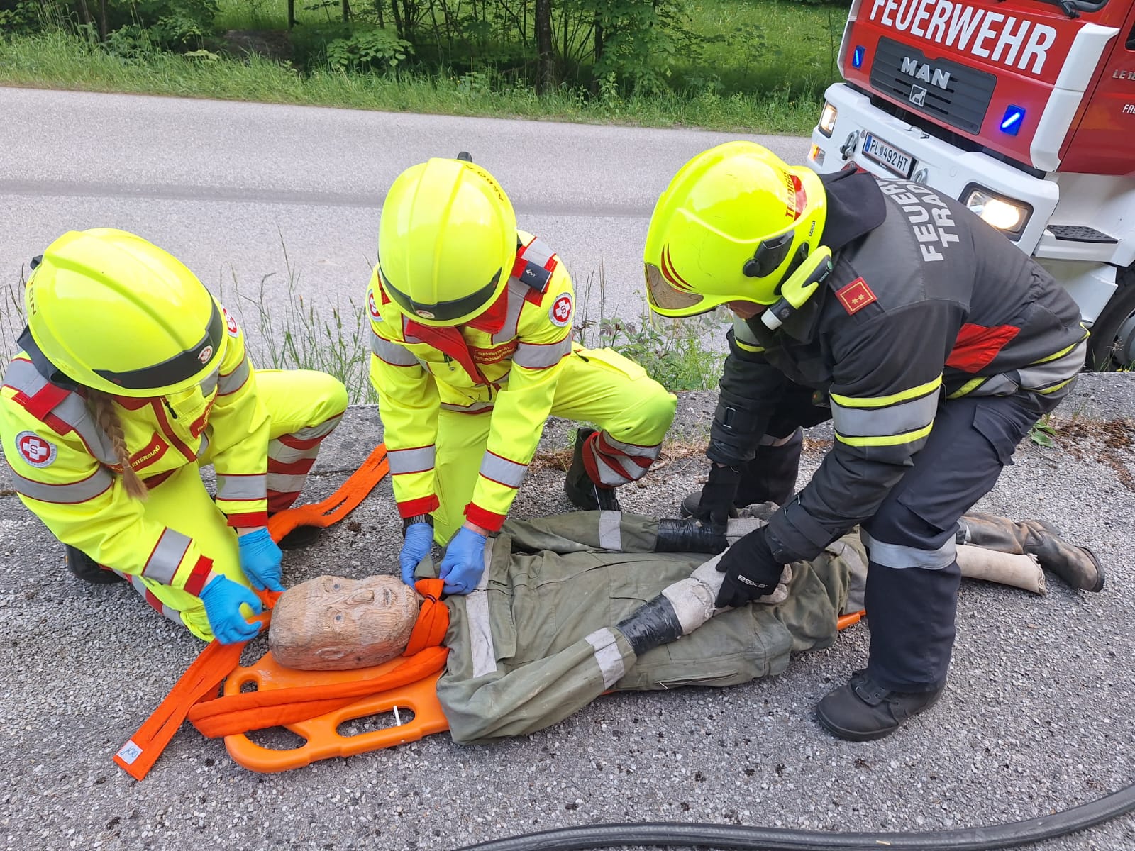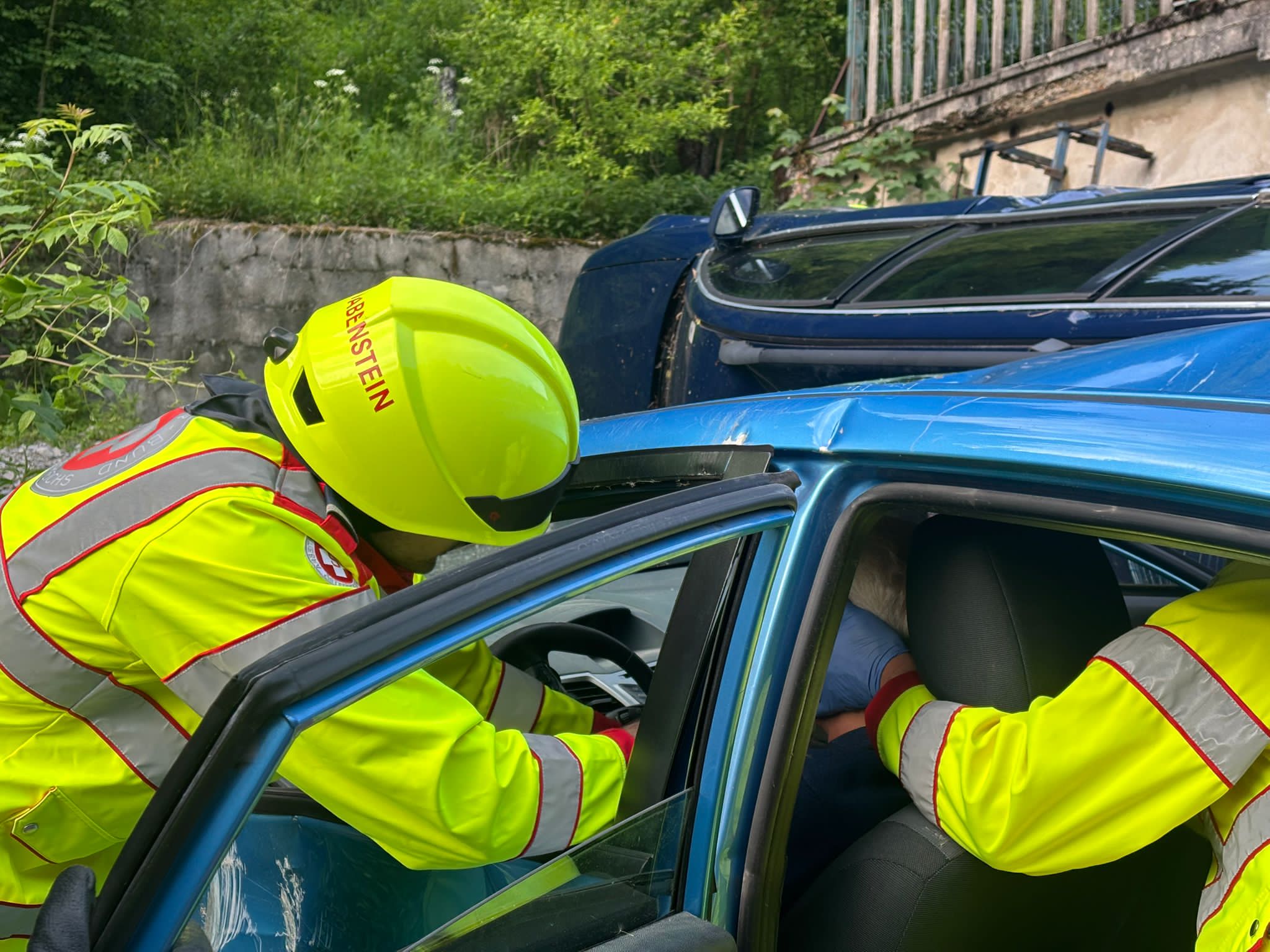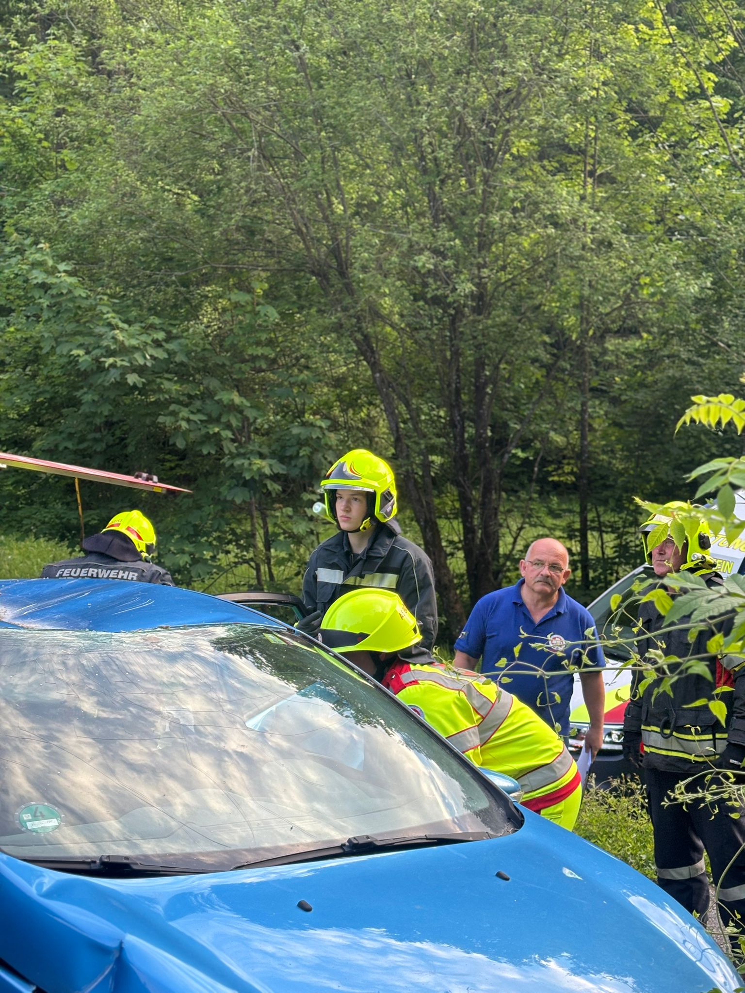 Nach dem Eintreffen am Übungsort stellte sich heraus, dass sich in beiden beteiligten PKWs je eine eingeklemmte Person befand. Das vorrangige Ziel war die rasche und schonende Rettung der verletzten Personen aus den Fahrzeugen.