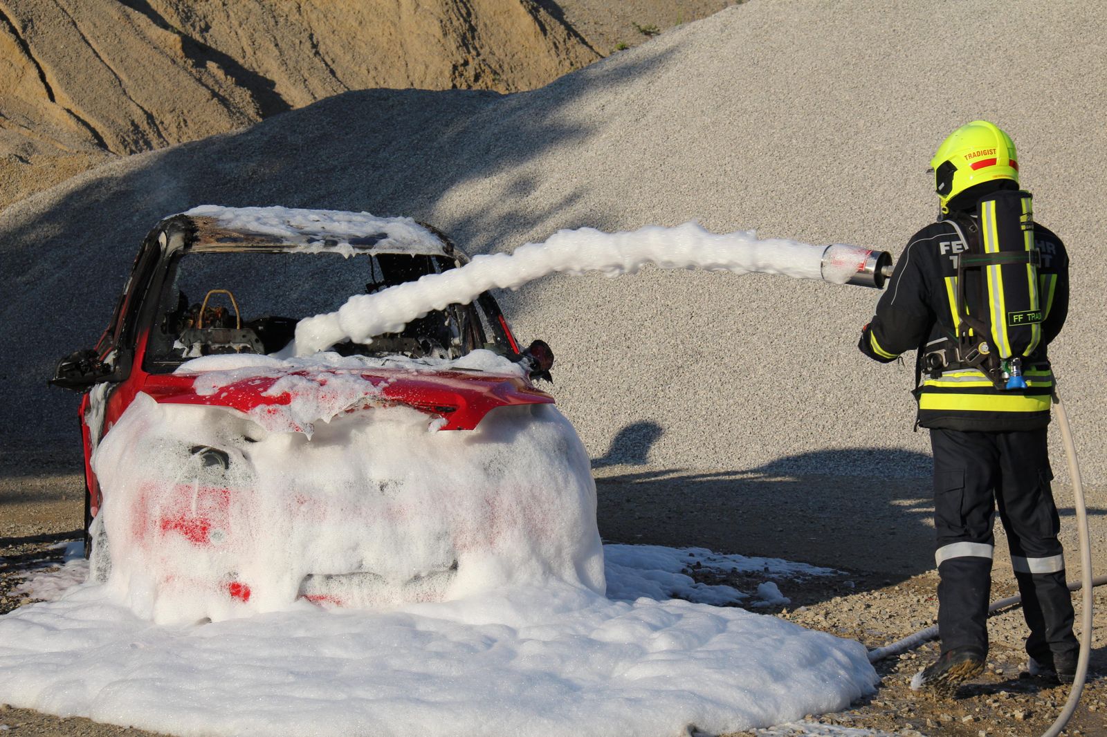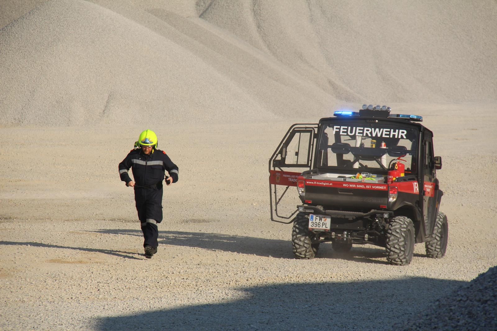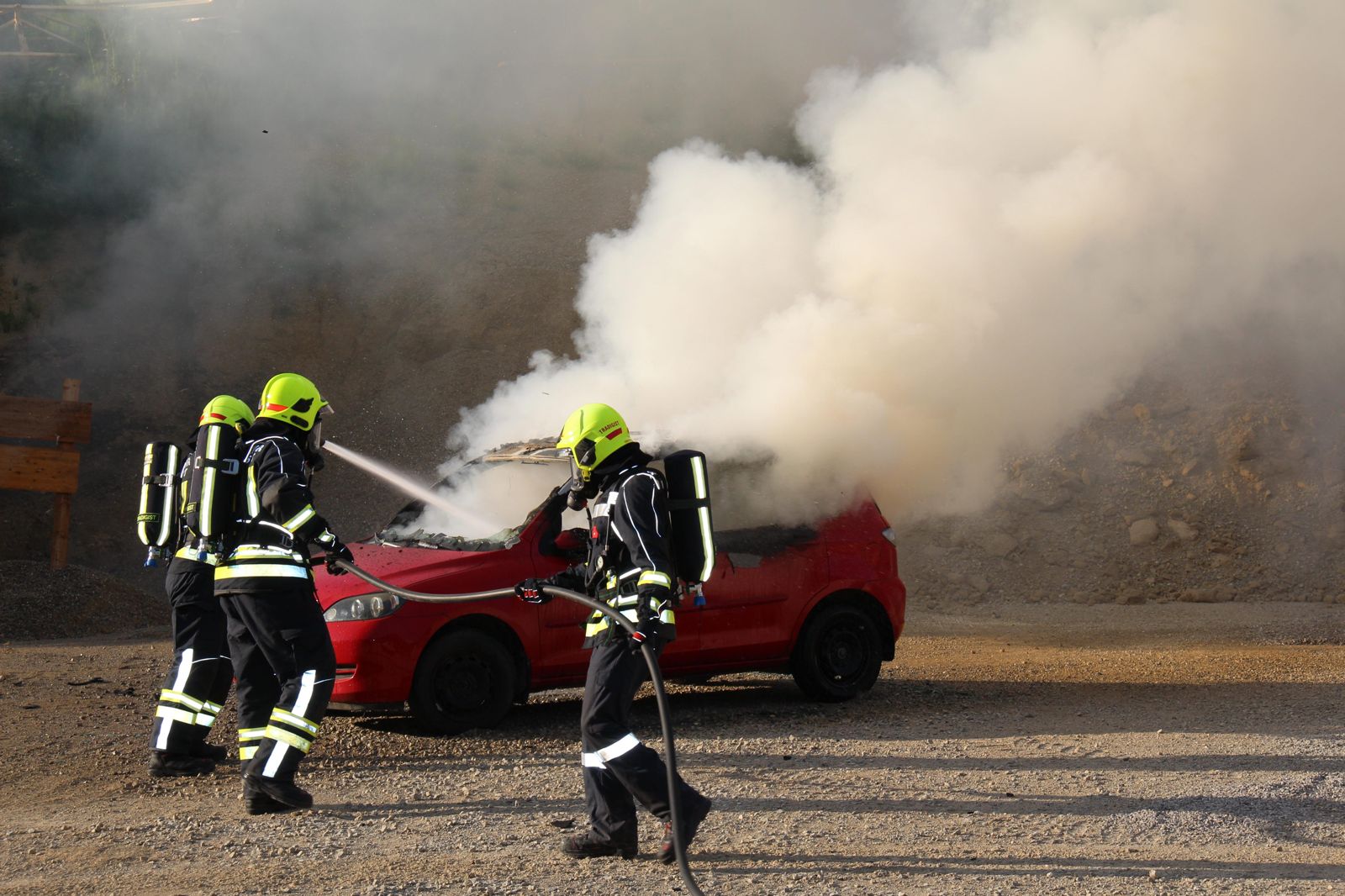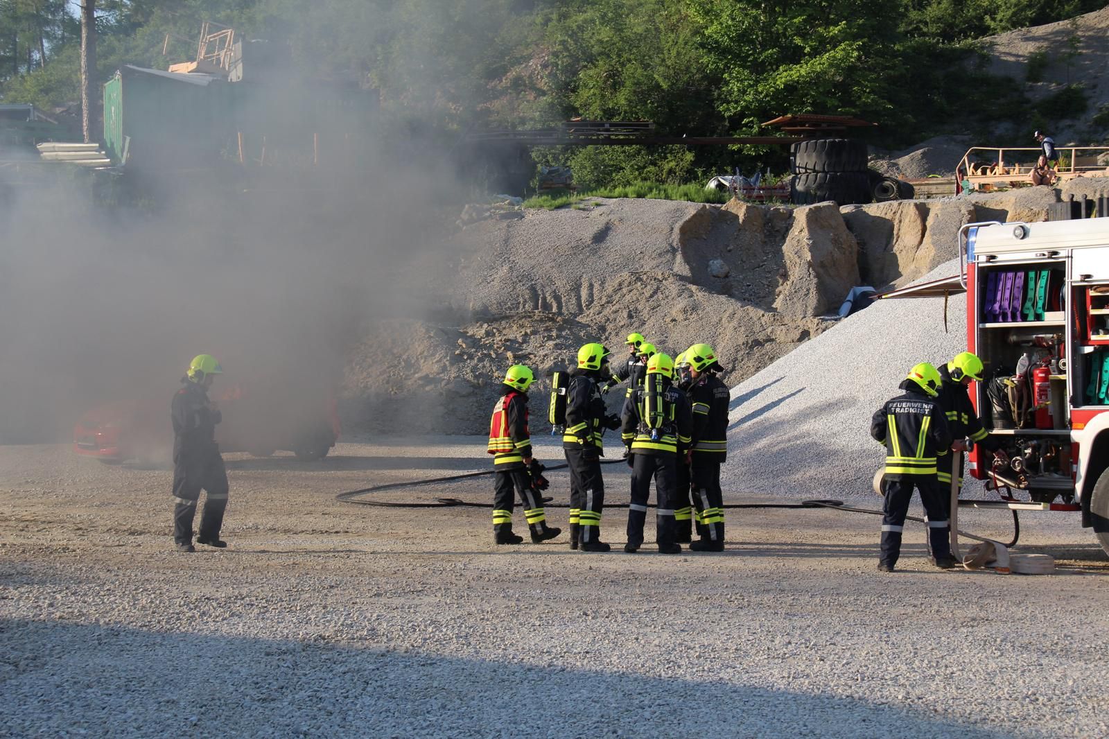 Vor Ort stellte sich rasch heraus, dass es sich um eine geplante Übung handelte. Dennoch wurde die Situation von allen Beteiligten mit der nötigen Ernsthaftigkeit und höchster Motivation behandelt. Nach dem Eintreffen begann der Atemschutztrupp mit der Brandbekämpfung: Zunächst wurde der angenommene Fahrzeugbrand mit Wasser bekämpft, anschließend erfolgte eine Nachlöscharbeit mit Schaum – selbstverständlich unter Verwendung des vollständigen Atemschutzes.