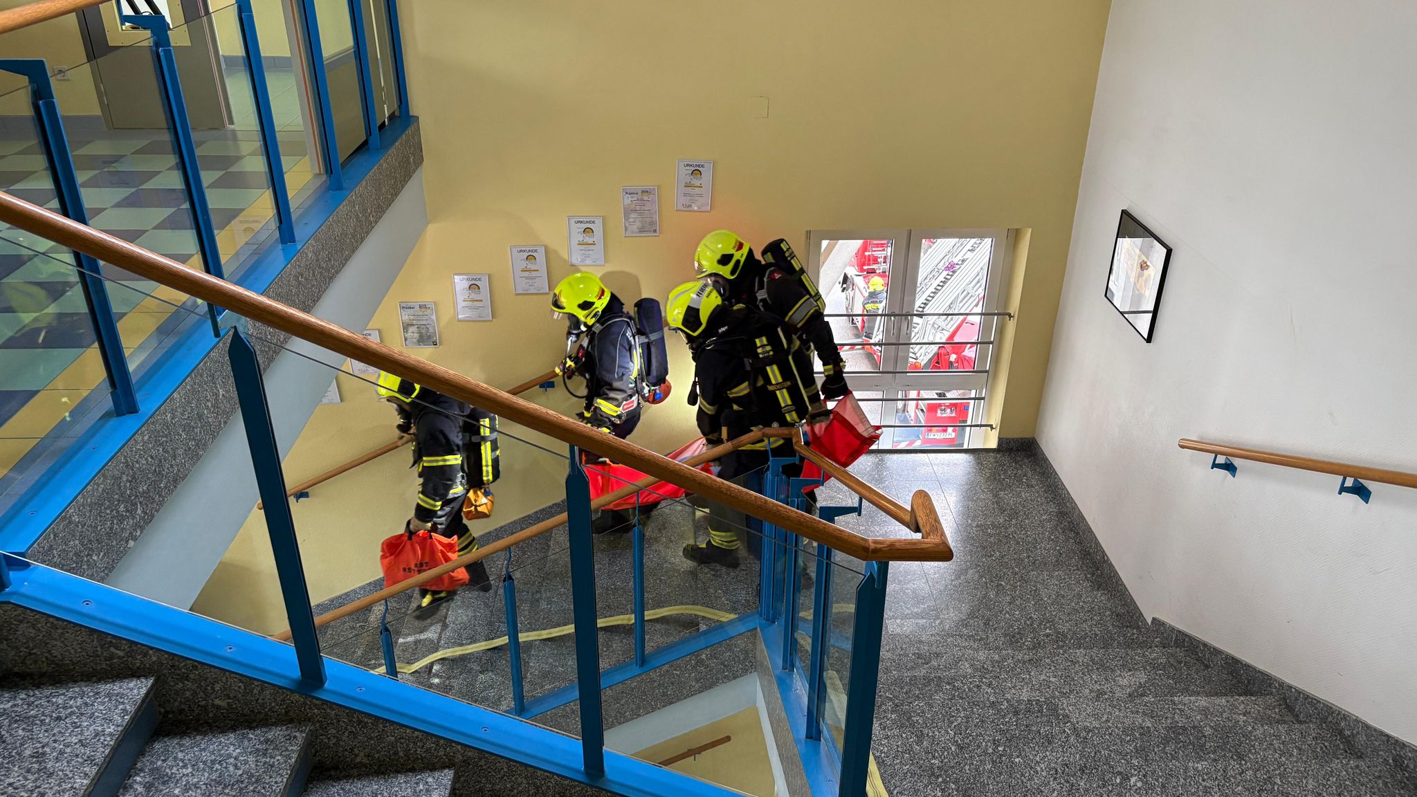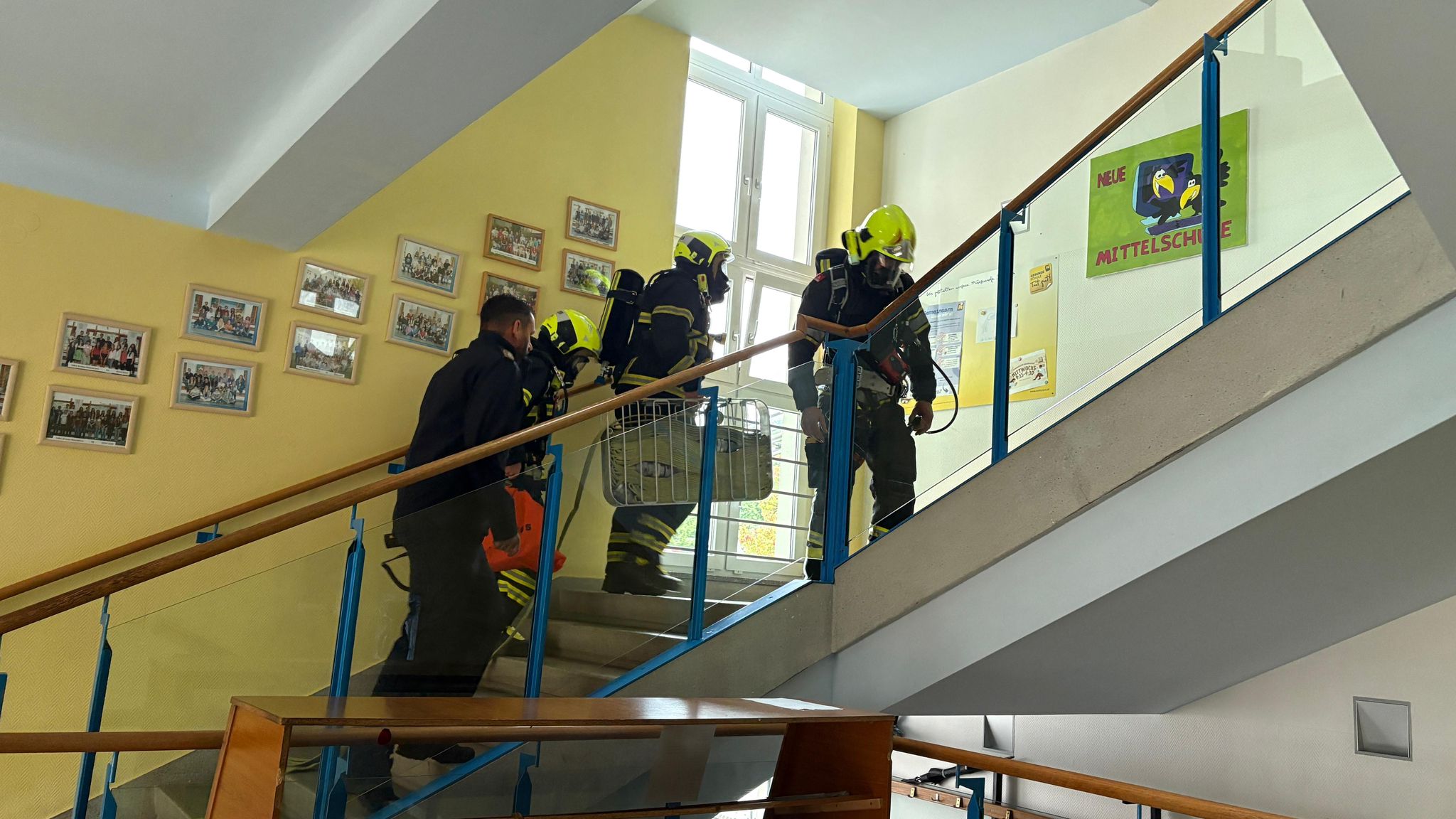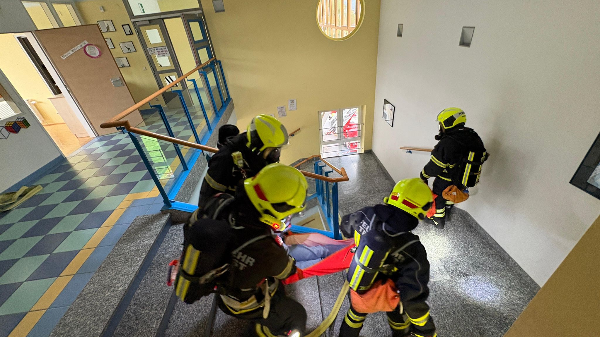 Beim Eintreffen am Einsatzort wurde mitgeteilt, dass sich noch Schüler im Gebäude befinden. Sofort rückte ein gemischter Atemschutztrupp aus zwei Mann der Feuerwehr Tradigist und zwei Mann der Feuerwehr Rabenstein in das Schulgebäude vor. Raum für Raum wurde das Gebäude abgesucht, bis alle vermissten Personen gefunden, ins Freie gebracht und dem Rettungsdienst übergeben werden konnten. Eine Klasse, die sich nicht mehr über das Stiegenhaus in Sicherheit bringen konnte, wurde zudem mit der Drehleiter der Feuerwehr Obergrafendorf aus dem Obergeschoß gerettet.
