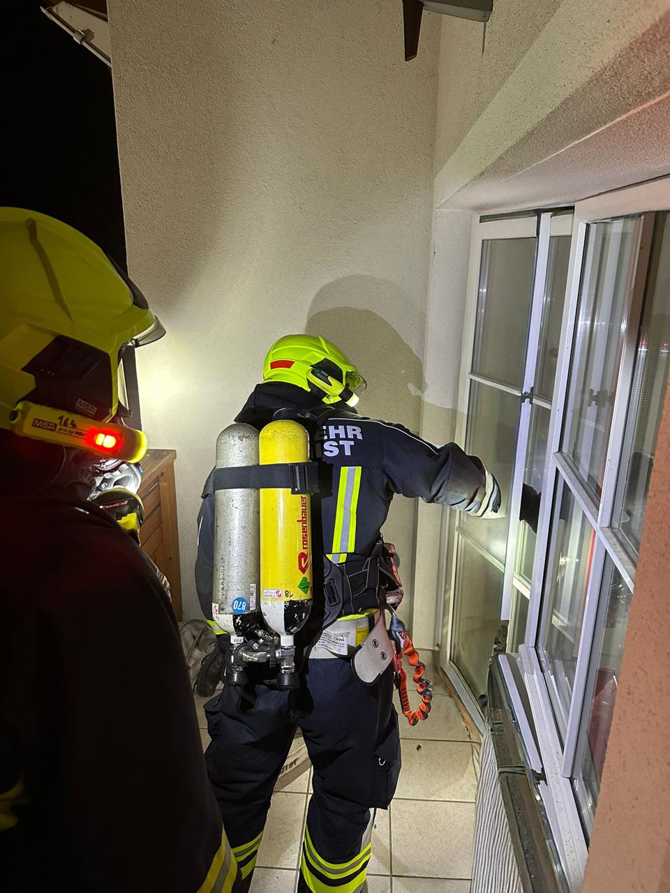 Bei Übungsbeginn wurde eine starke Rauchentwicklung aus einer Wohnung im ersten Obergeschoss dargestellt. Mehrere Personen befanden sich noch im Innenraum der betroffenen Wohnung. Zwei Atemschutztrupps gingen zur Menschenrettung in die Wohnung vor und retteten insgesamt vier Personen aus dem verrauchten Innenbereich. Der Zugang zur Wohnung erfolgte über den Balkon mittels tragbarer Leiter.