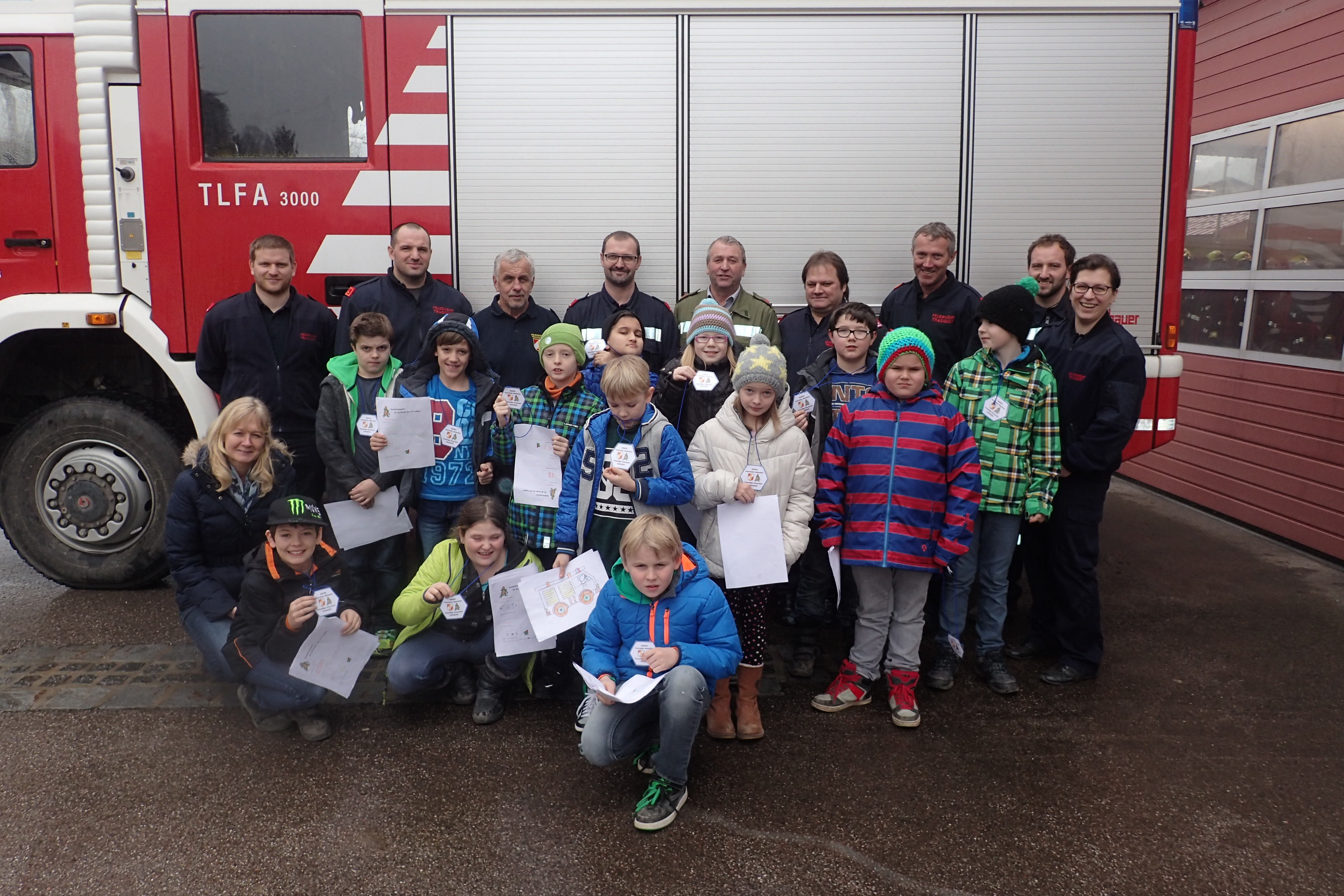 Die Kinder der Volksschule Tradigist besuchten uns heute im Feuerwehrhaus um gemeinsam wichtige Bereiche rund um das Thema Notfall und Feuerwehr zu besprechen.