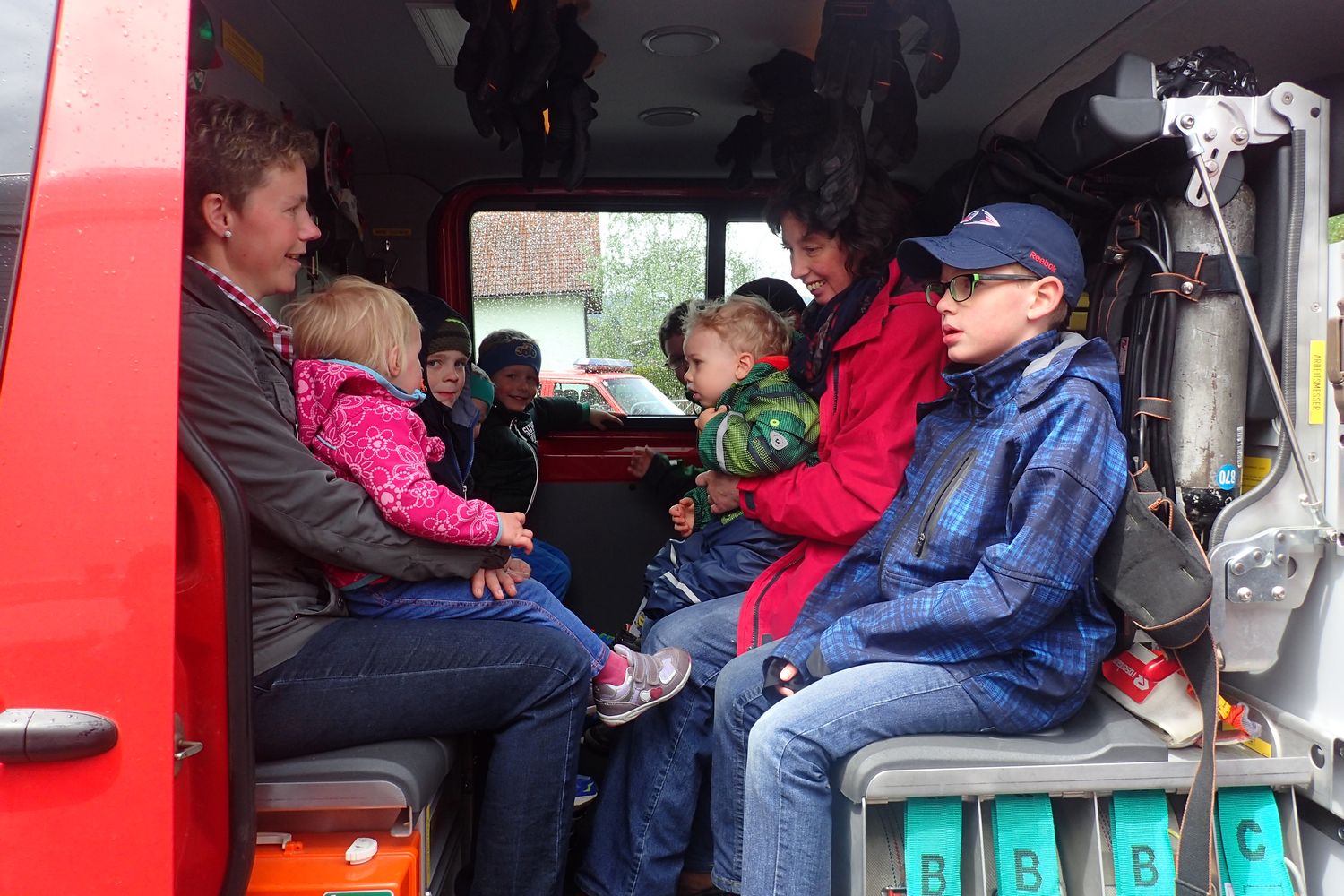 Die Besichtigung unserer Fahrzeuge und Gerätschaften, die das ganze Jahr für Notfälle bereit stehen, sowie eine Spritztour mit den Feuerwehrfahrzeugen stand am Programm.
