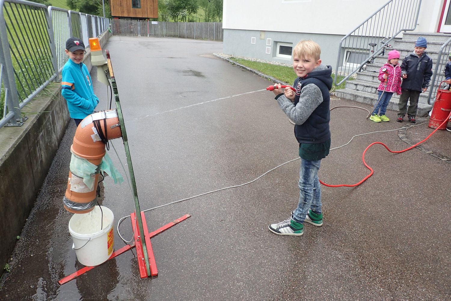 Beim Zielspritzen mit dem Feuerwehrdrachen Grisu konnten die Kinder ihr Können unter Beweis stellen.