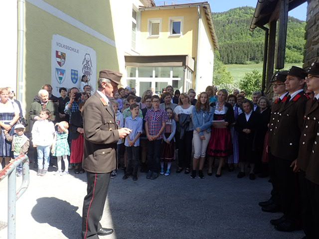 Kommandant OBI Andreas Veitinger richtete anschließend ein paar Worte an die Bevölkerung, bedankte sich bei den Mitwirkenden und begrüßte die Ehrengäste wie Vizebgm. Franz Singer, Vizebgm. Hubert Gansch, GRin Judith Gerstl.