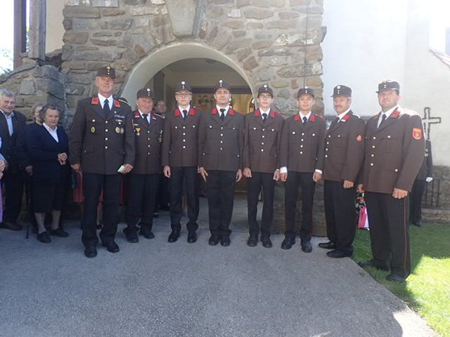 Vier neue Feuerwehrmitglieder wurden im Anschluss an die Festmesse angelobt und somit offiziell mit der Gelöbnisformel in den aktiven Feuerwehrdienst aufgenommen.