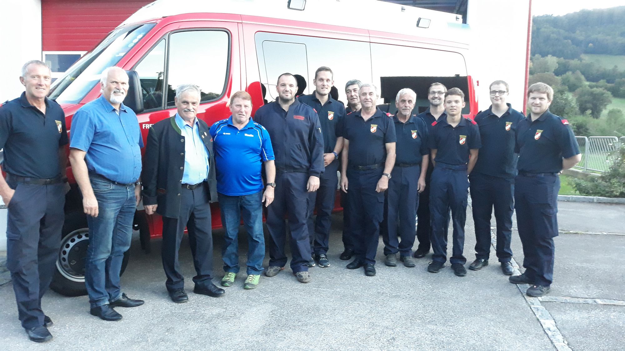 Bei der ersten Besichtigung im Feuerwehrhaus Tradigist, waren auch die beiden Bürgermeister Ök. Rat Anton Gonaus aus Kirchberg und Ing. Kurt Wittmann aus Rabenstein sowie Vizebürgermeister Hubert Gansch aus Rabenstein eingeladen, um sich das Fahrzeug von Kommandat OBI Andreas Veitinger genau erklären zulassen.
