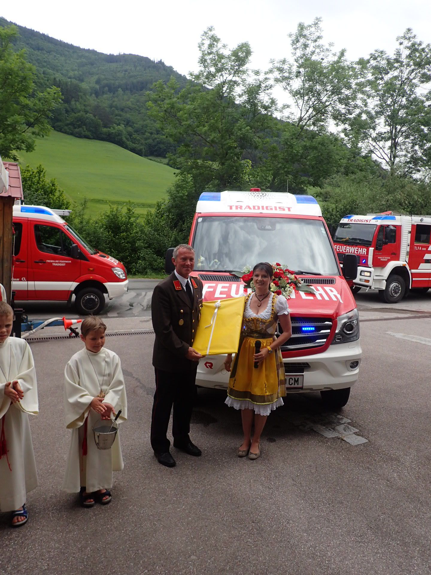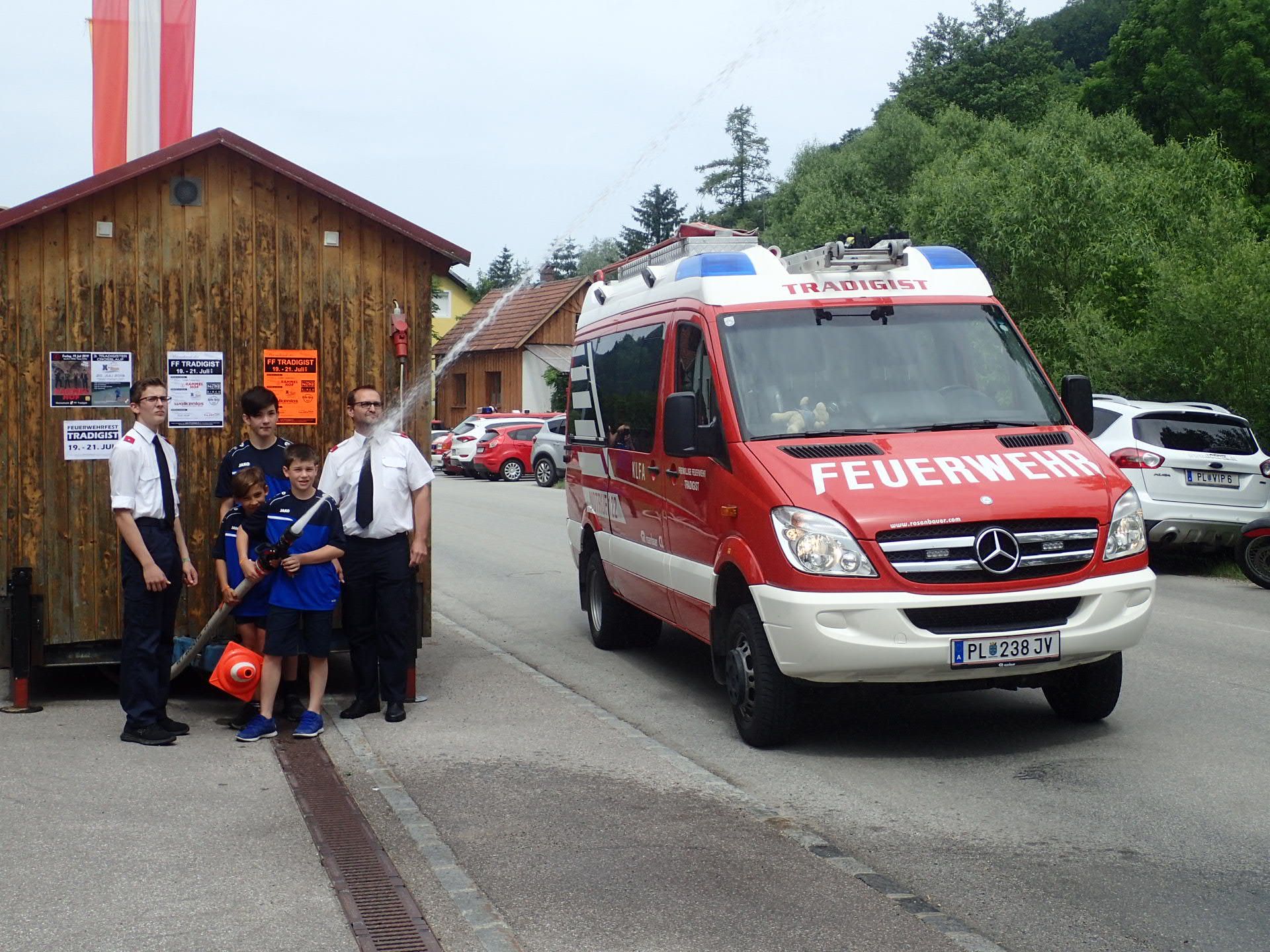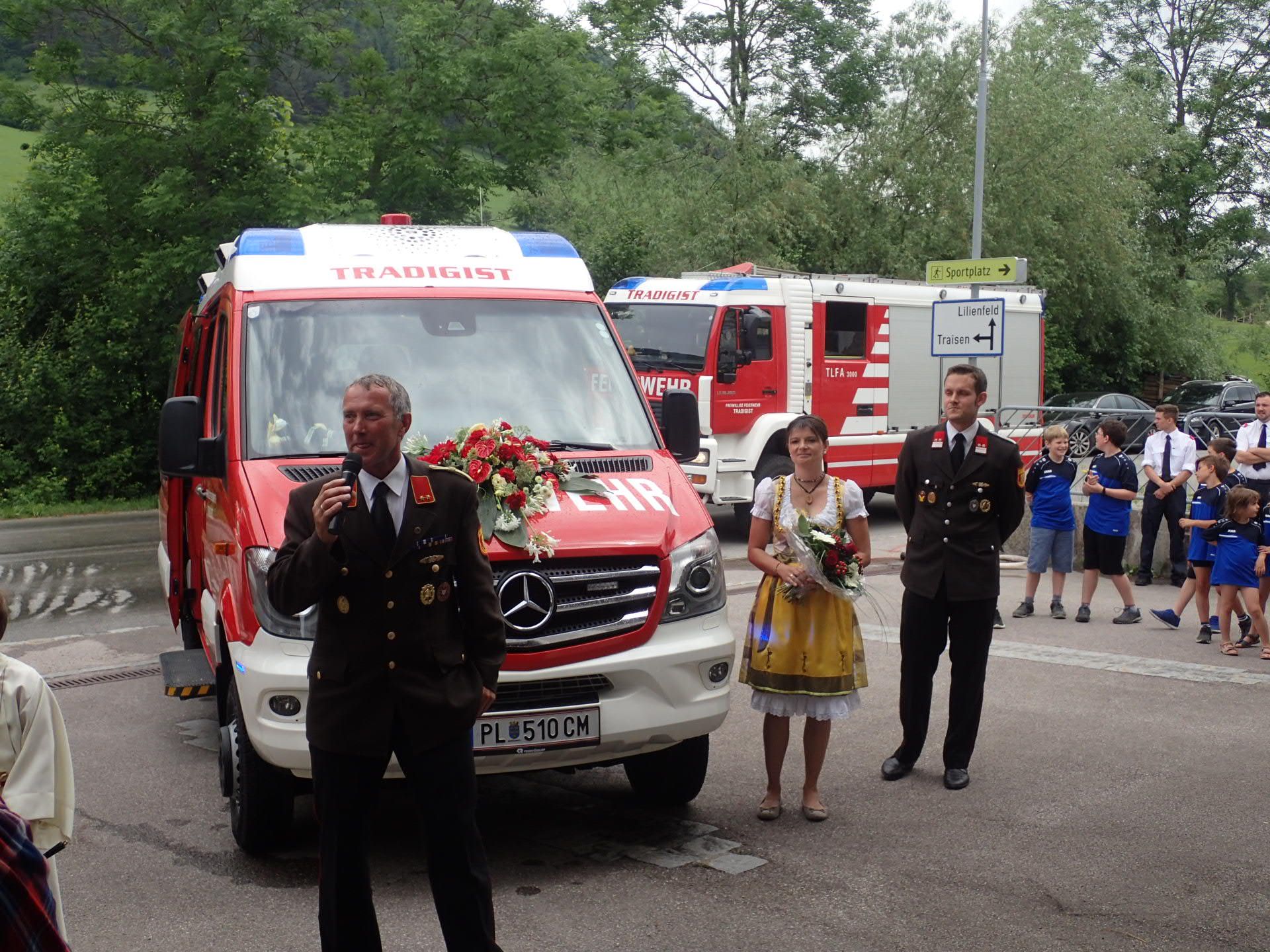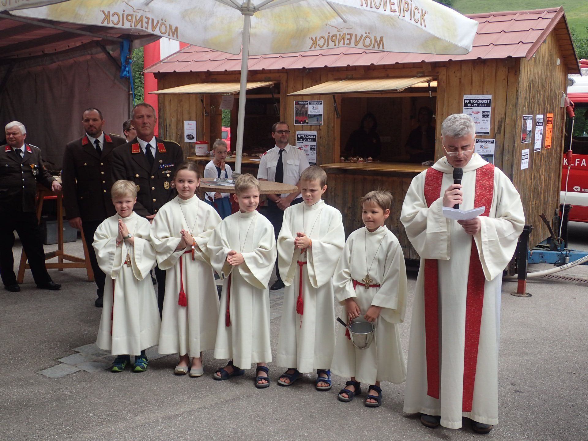 Am Pfingstmontag, 10.06.2019 folgten zahlreiche Gäste unserer Einladung zur Fahrzeugsegnung und zum Tag der offenen Tür. Die Heilige Messe wurde von Pater Johannes im FF-Haus zelebriert und vom Tradigister Fünfgsang musikalisch gestaltet. Im Anschluss erfolgte die feierlicher Segnung des neuen Einsatzfahrzeugs dessen Patin Melanie Fuxsteiner ist. Bei kühlen Getränken und Speisen vom Grill genossen wir den schönen Feiertag. Unsere kleinen Gäste freuten sich über die Hüpfburg sowie Zielspritzen mit Feuerwehrdrachen Grisu.