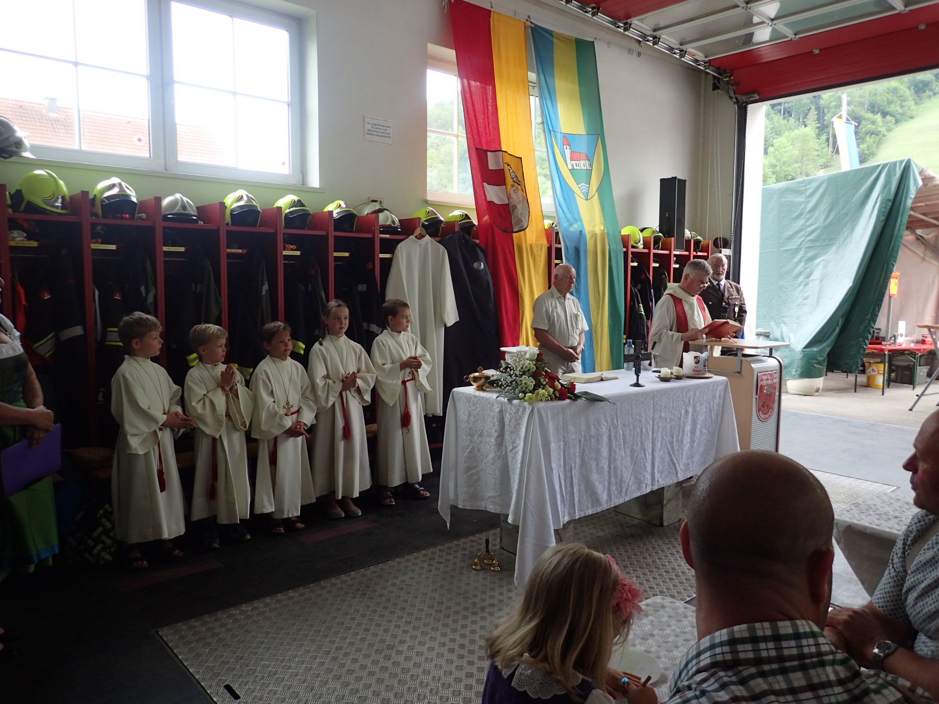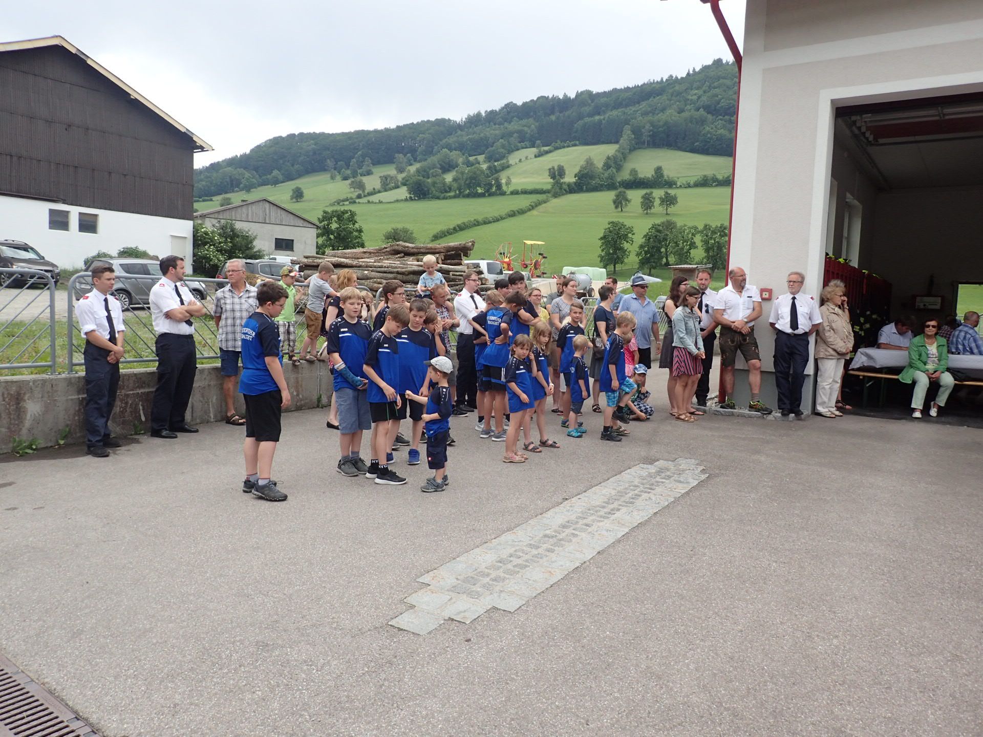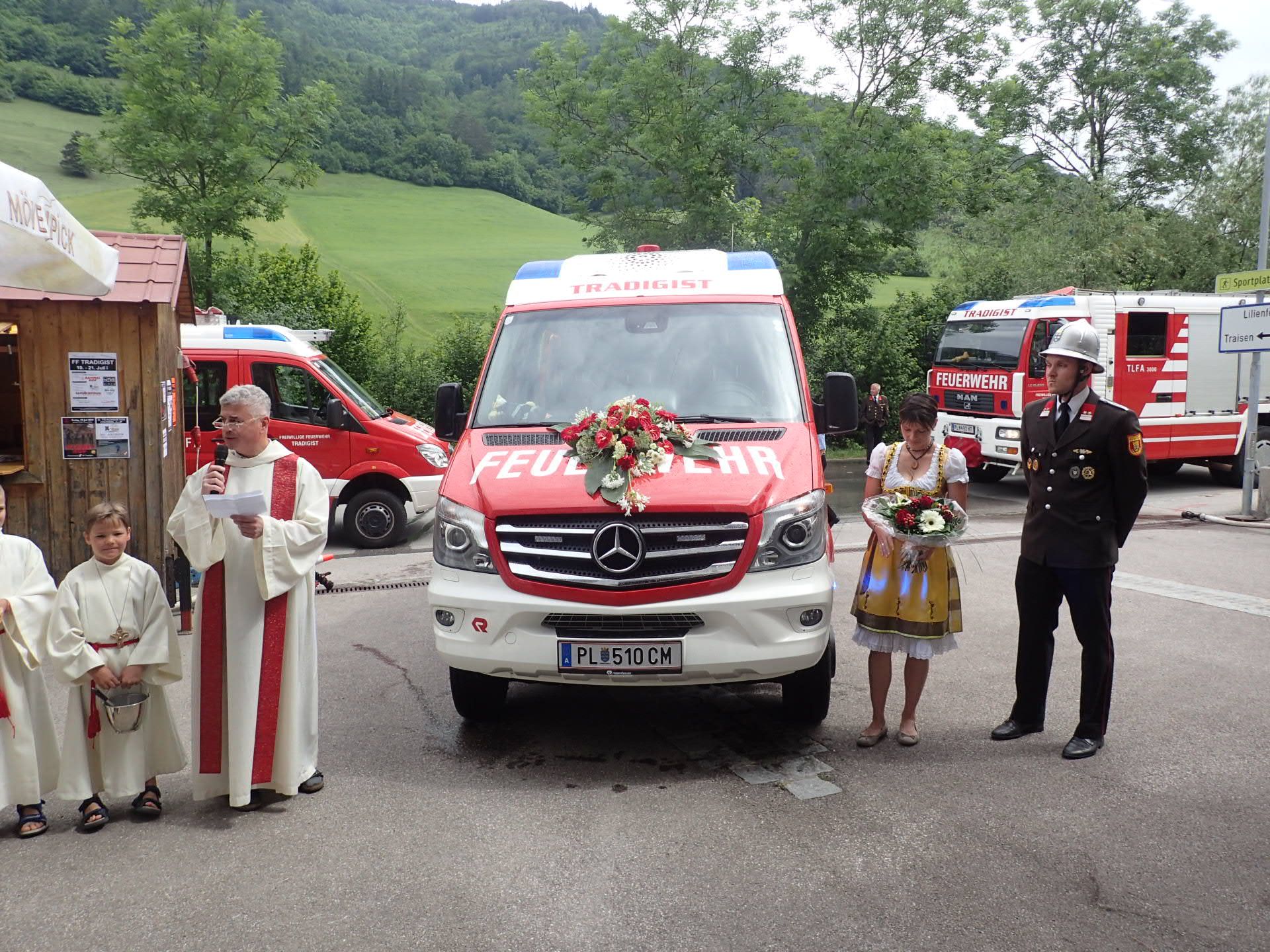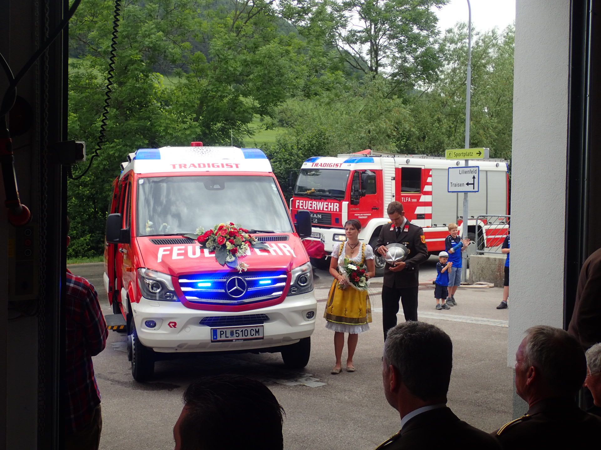 Am Pfingstmontag, 10.06.2019 folgten zahlreiche Gäste unserer Einladung zur Fahrzeugsegnung und zum Tag der offenen Tür. Die Heilige Messe wurde von Pater Johannes im FF-Haus zelebriert und vom Tradigister Fünfgsang musikalisch gestaltet. Im Anschluss erfolgte die feierlicher Segnung des neuen Einsatzfahrzeugs dessen Patin Melanie Fuxsteiner ist. Bei kühlen Getränken und Speisen vom Grill genossen wir den schönen Feiertag. Unsere kleinen Gäste freuten sich über die Hüpfburg sowie Zielspritzen mit Feuerwehrdrachen Grisu.