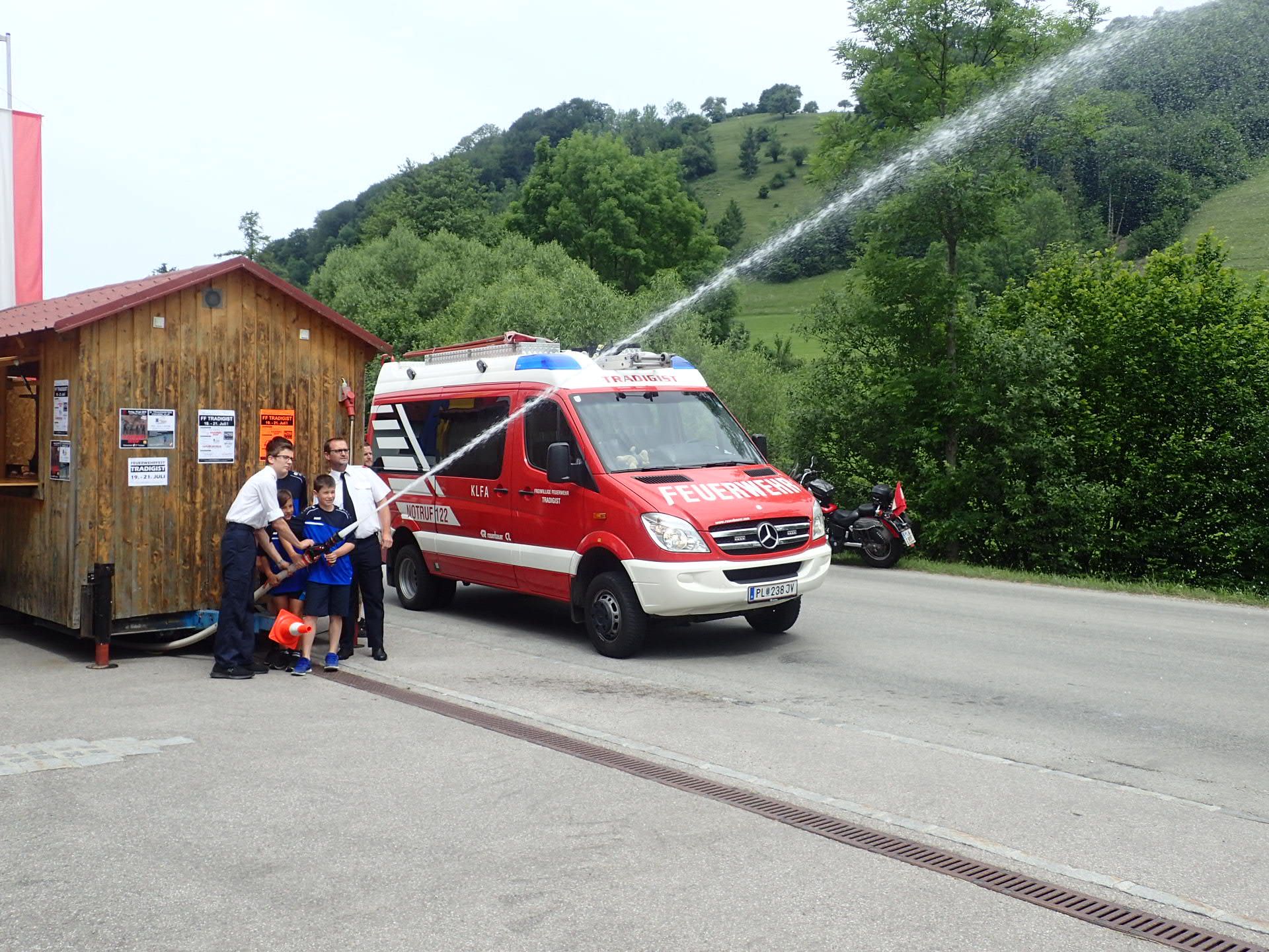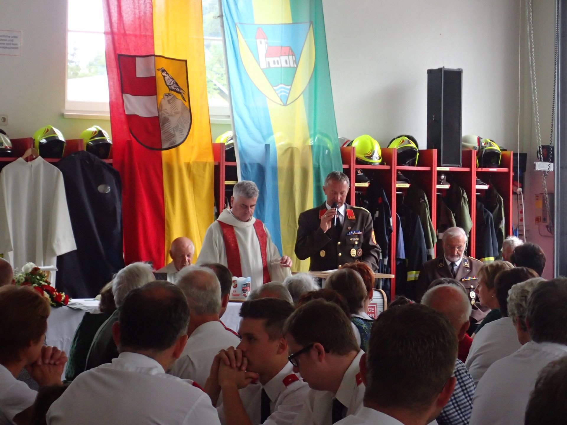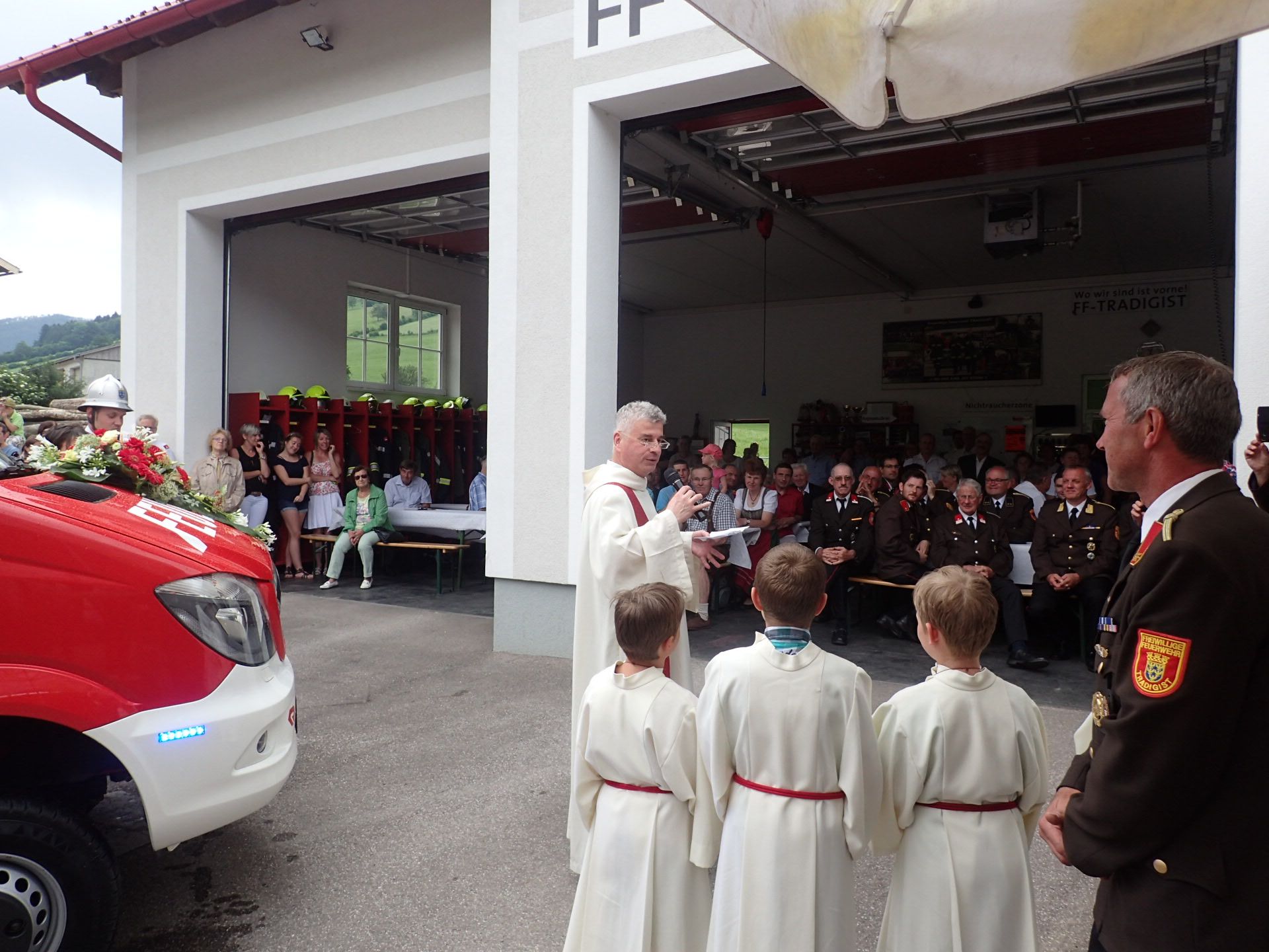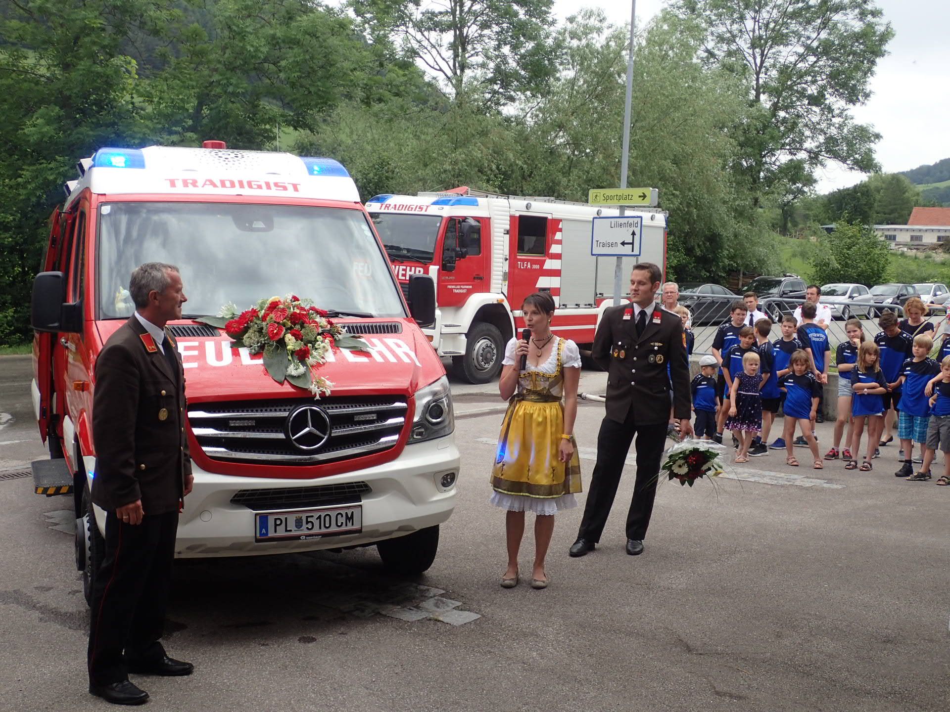 Am Pfingstmontag, 10.06.2019 folgten zahlreiche Gäste unserer Einladung zur Fahrzeugsegnung und zum Tag der offenen Tür. Die Heilige Messe wurde von Pater Johannes im FF-Haus zelebriert und vom Tradigister Fünfgsang musikalisch gestaltet. Im Anschluss erfolgte die feierlicher Segnung des neuen Einsatzfahrzeugs dessen Patin Melanie Fuxsteiner ist. Bei kühlen Getränken und Speisen vom Grill genossen wir den schönen Feiertag. Unsere kleinen Gäste freuten sich über die Hüpfburg sowie Zielspritzen mit Feuerwehrdrachen Grisu.
