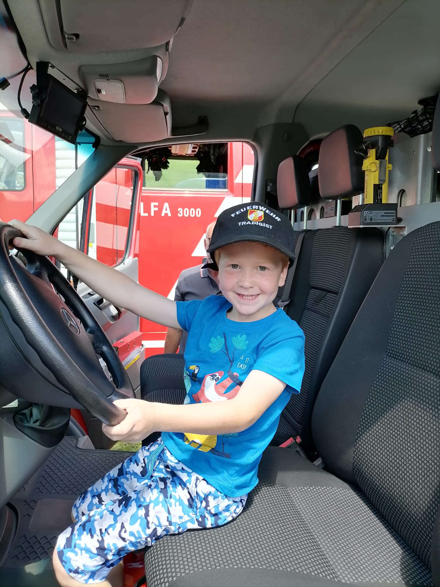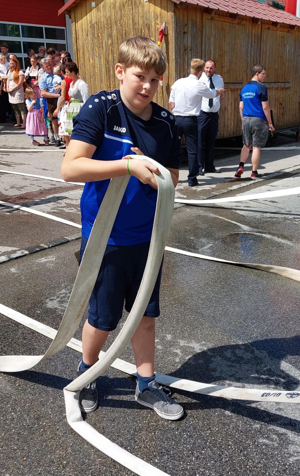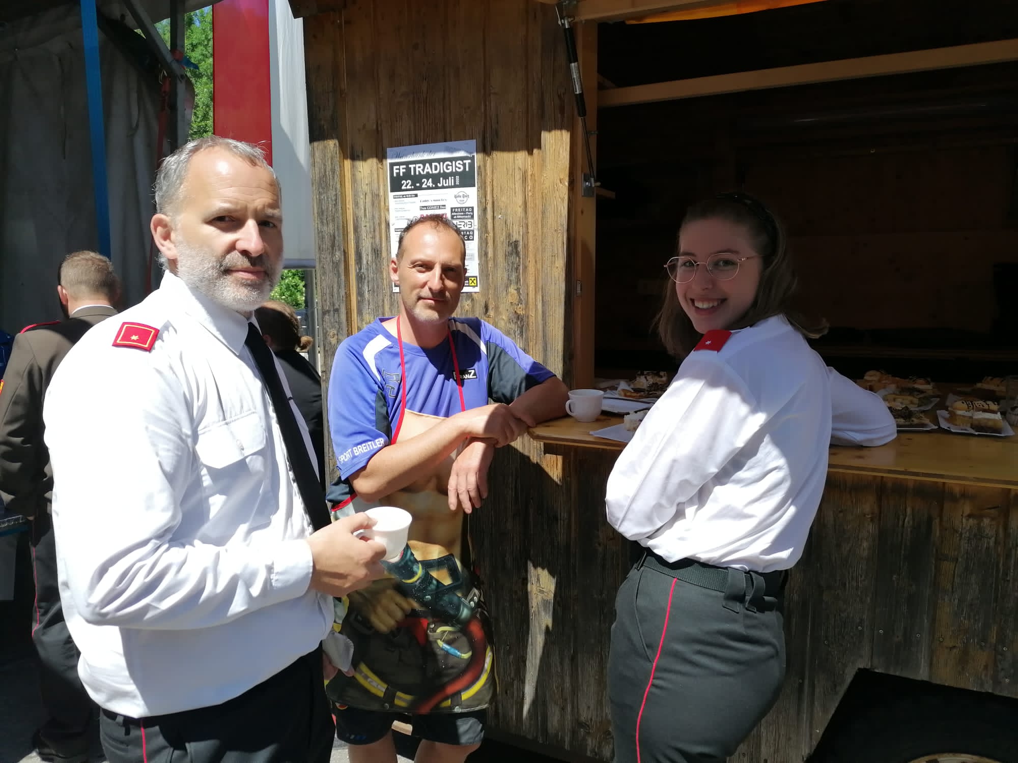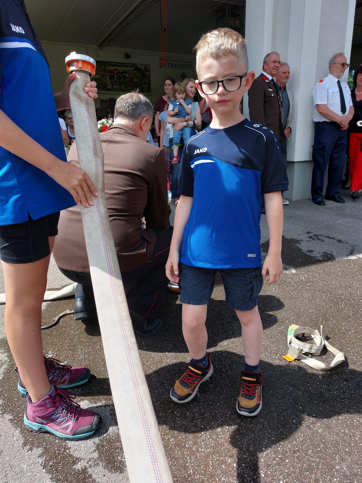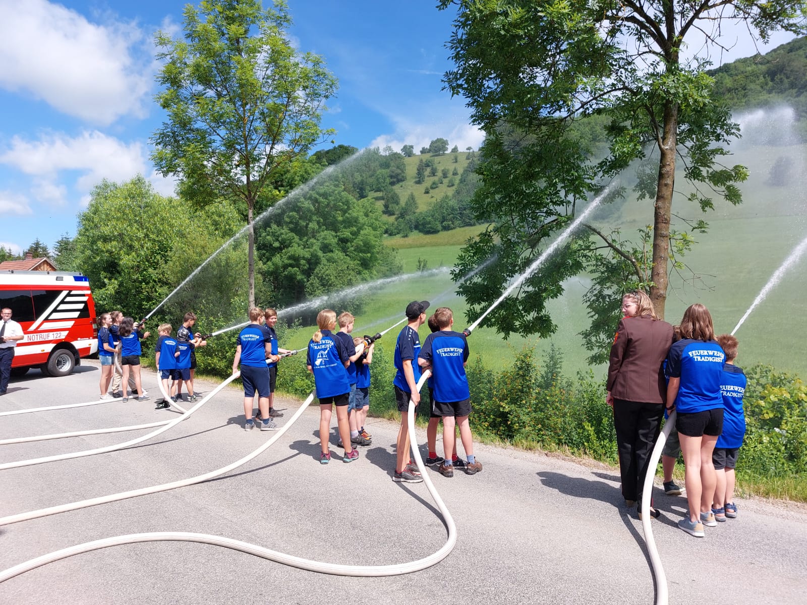 Die Heilige Messe wurde von Pater Leonhard im FF-Haus zelebriert und vom Tradigister Fünfg`sang musikalisch umrahmt. Während der Messe erfolgte die feierliche Segnung der neuen Tragkraftspritze deren Patin Brigitte Schmid ist. Nach den Ansprachen des Kommandanten und der beiden Bürgermeister wurde von den Tradigister Kindern ein bereits zuvor geübter Löschangriff mit 6 Strahlrohren und der neuen Tragkraftspritze gezeigt.