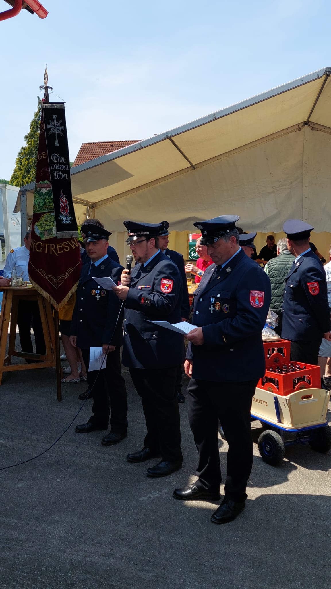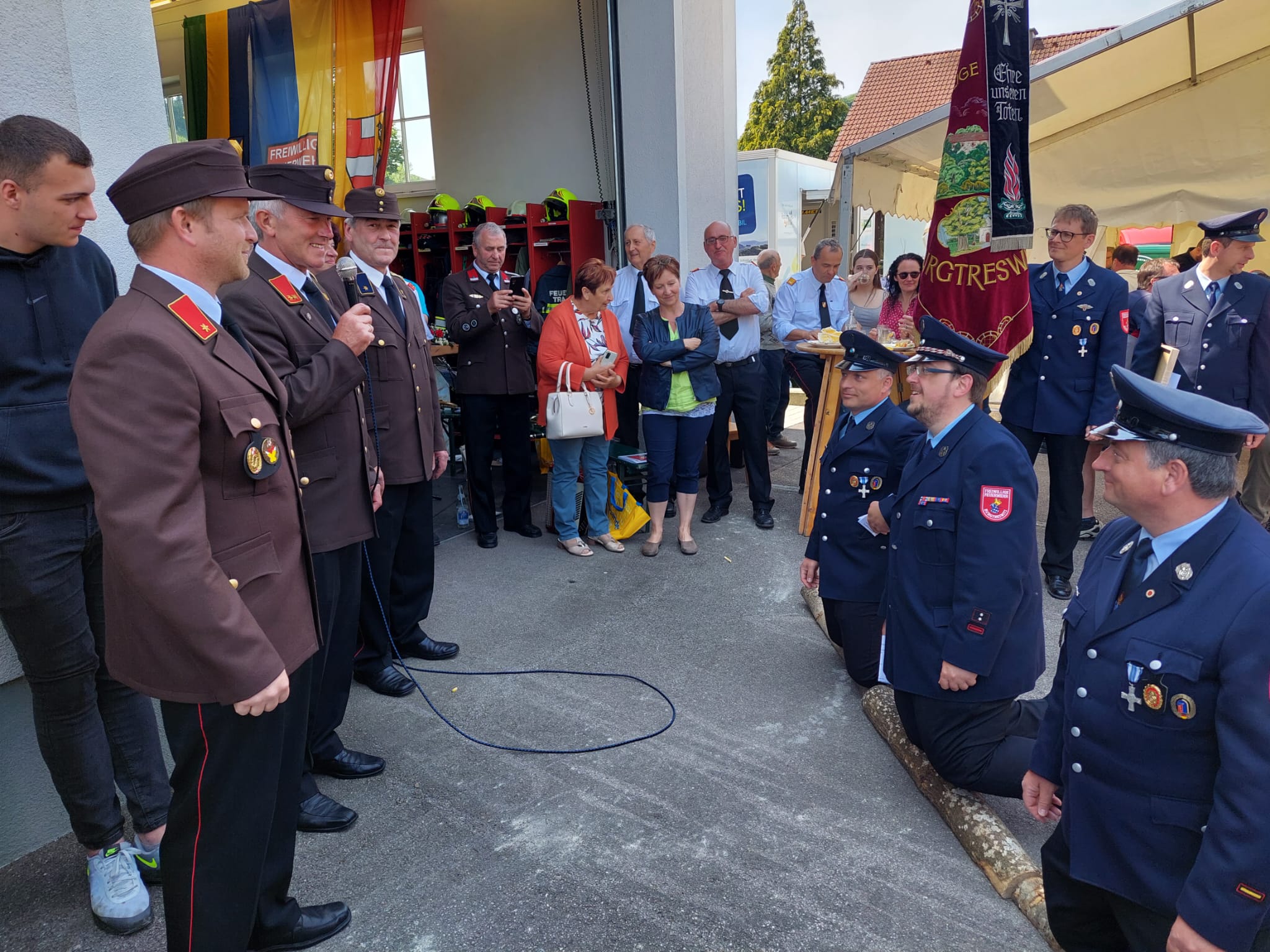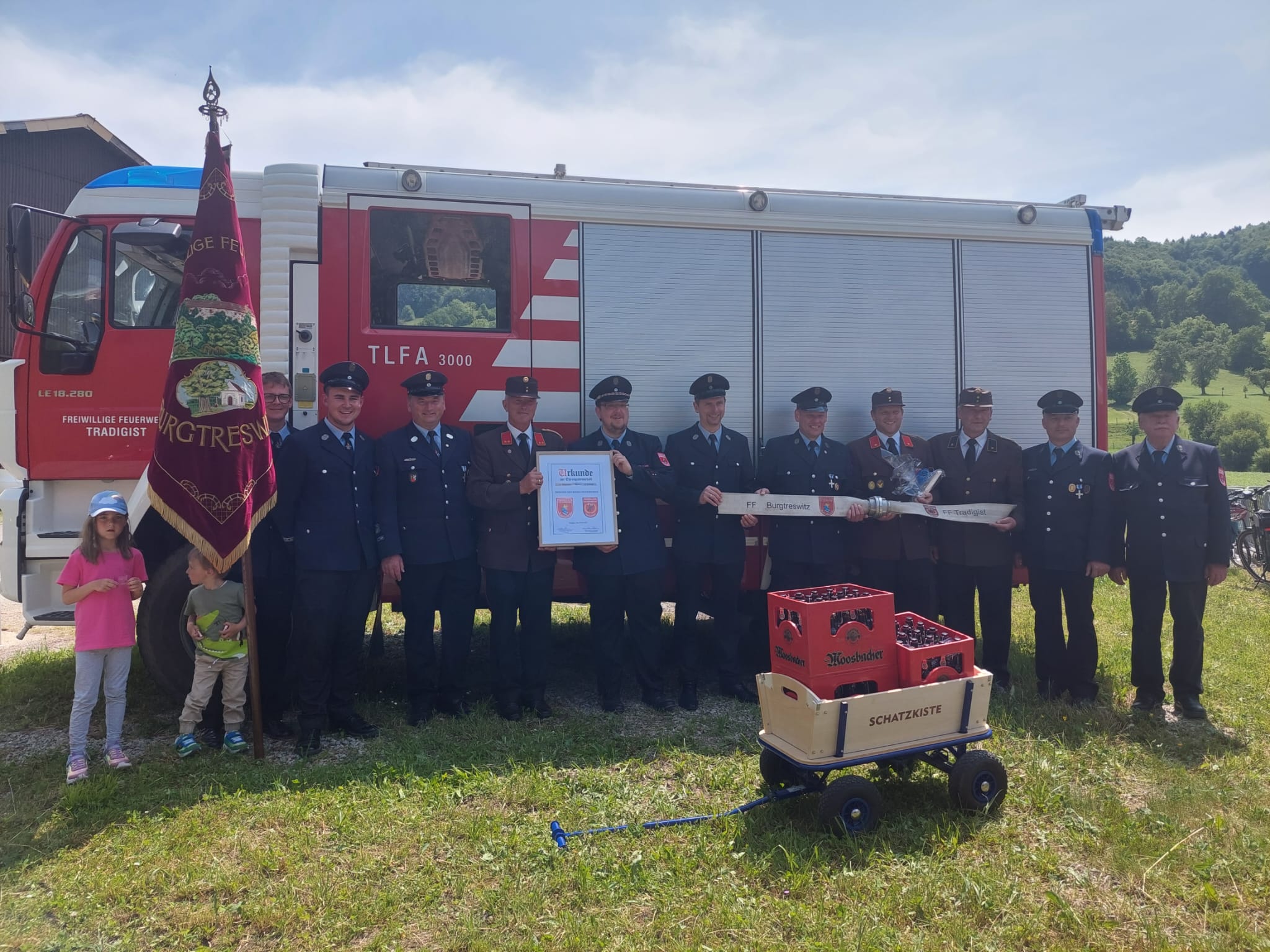Ein Highlight des Tages war auch das "Patenbitten" der befreundeten Feuerwehr Burgtreswitz aus Bayern, bei dem die Urkunde zur Ehrenpatenschaft unterzeichnet wurde.