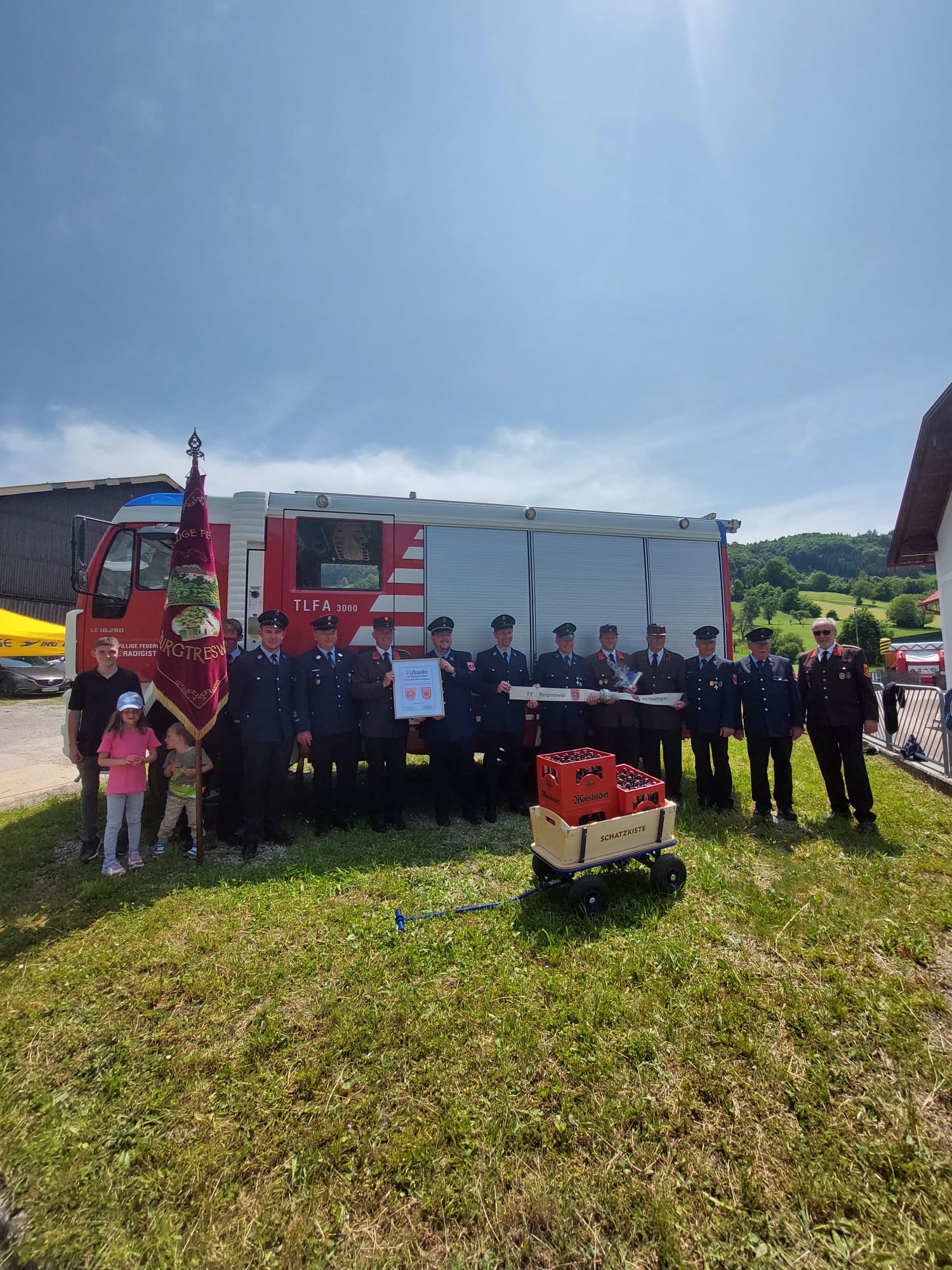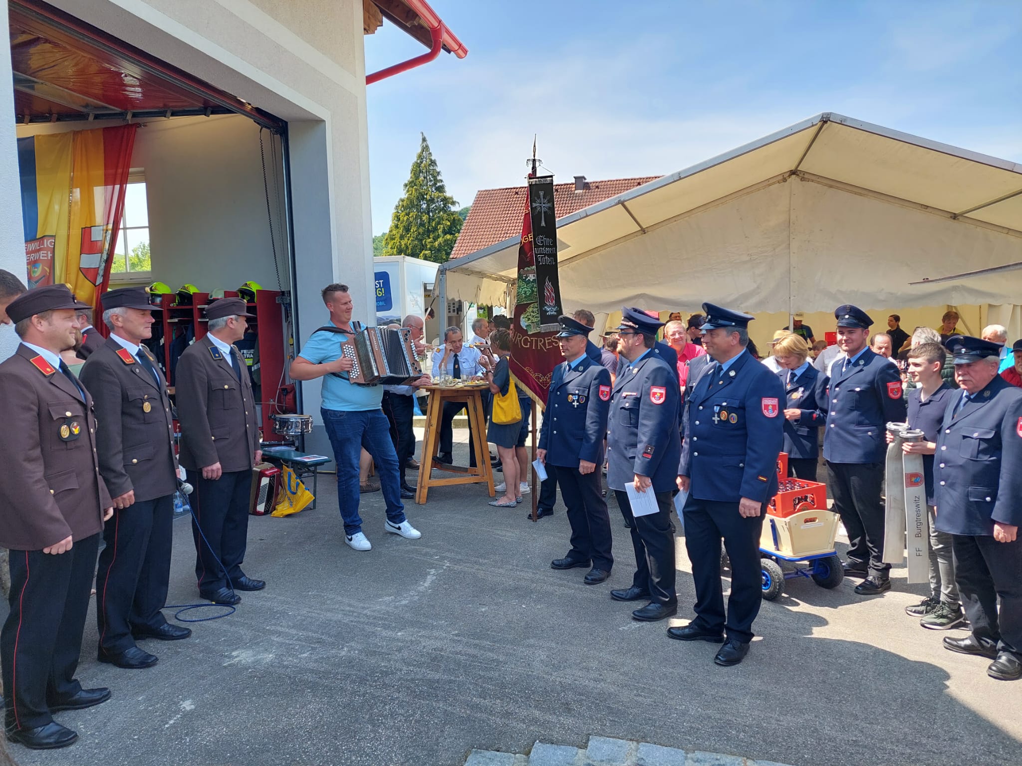 100 Jahre FF-Tradigist muss gebührend gefeiert werden. Bei strahlendem Sonnenschein fanden sich viele Festgäste beim Feuerwehrhaus in Tradigist ein.