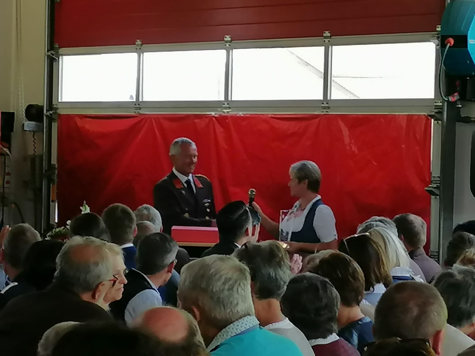 Kommandant Andreas Veitinger begrüßte die zahlreichen Fest- und Ehrengäste der 100 Jahr Feier, unter ihnen viele Feuerwehren, weitere Blaulichtorganisationen sowie Vereine und stellte die Festschrift vor, in welcher die Geschichte der Freiwilligen Feuerwehr Tradigist zusammengefasst wurde. Im Anschluss an die Glückwünsche der Bürgermeister Kurt Wittmann aus Rabenstein und Franz Singer aus Kirchberg, sowie Maximilian Kargl seitens der Bezirkshauptmannschaft und des Nationalratsabgeordneten Friedrich Ofenauer zum 100sten Geburtstag, verlieh Landeskommandant Dietmar Fahrafellner die höchste Auszeichnung, die eine Zivilperson von der Feuerwehr erhalten kann, die sogennante Florianiplakette, an Judith Gerstl.