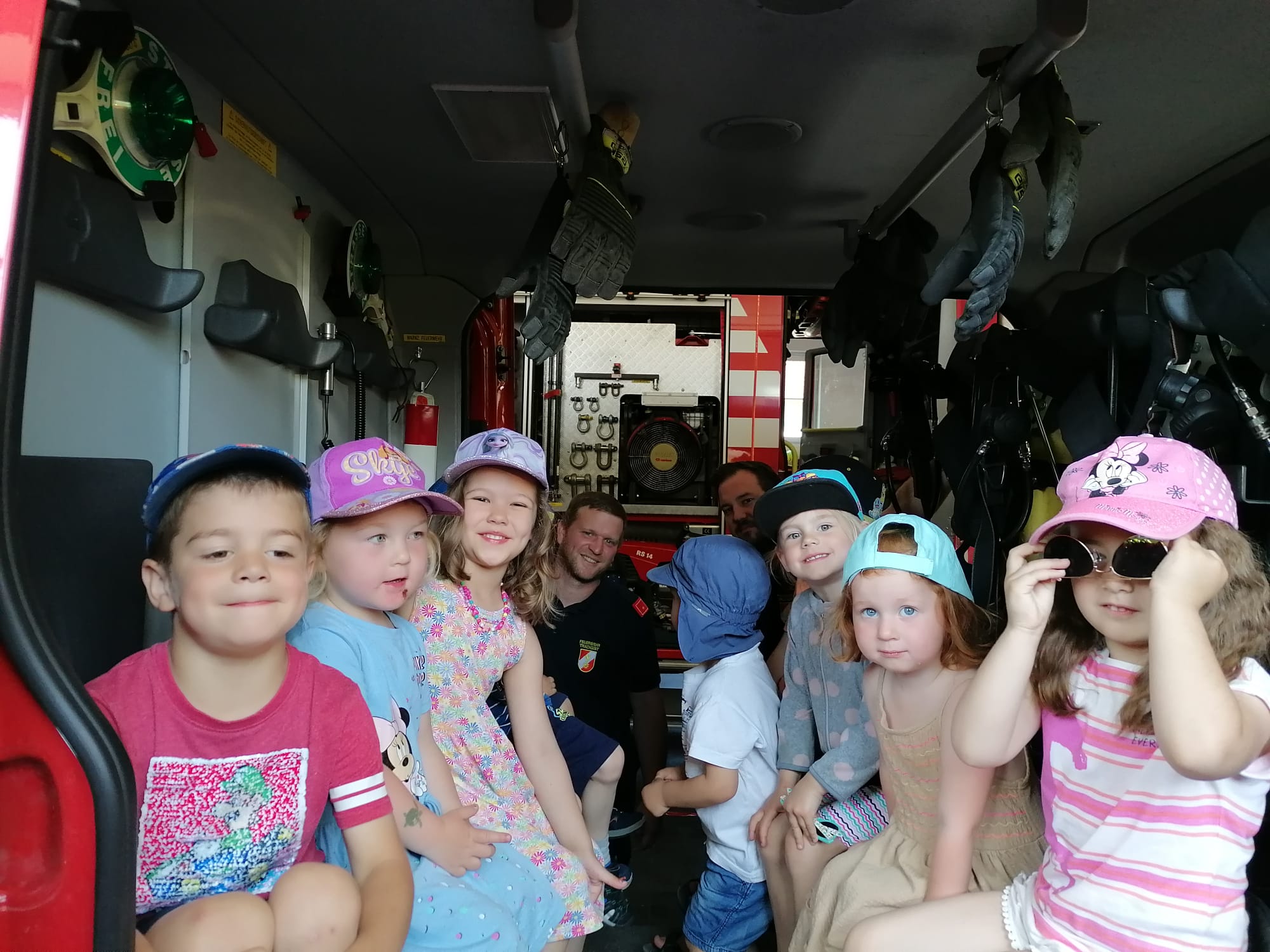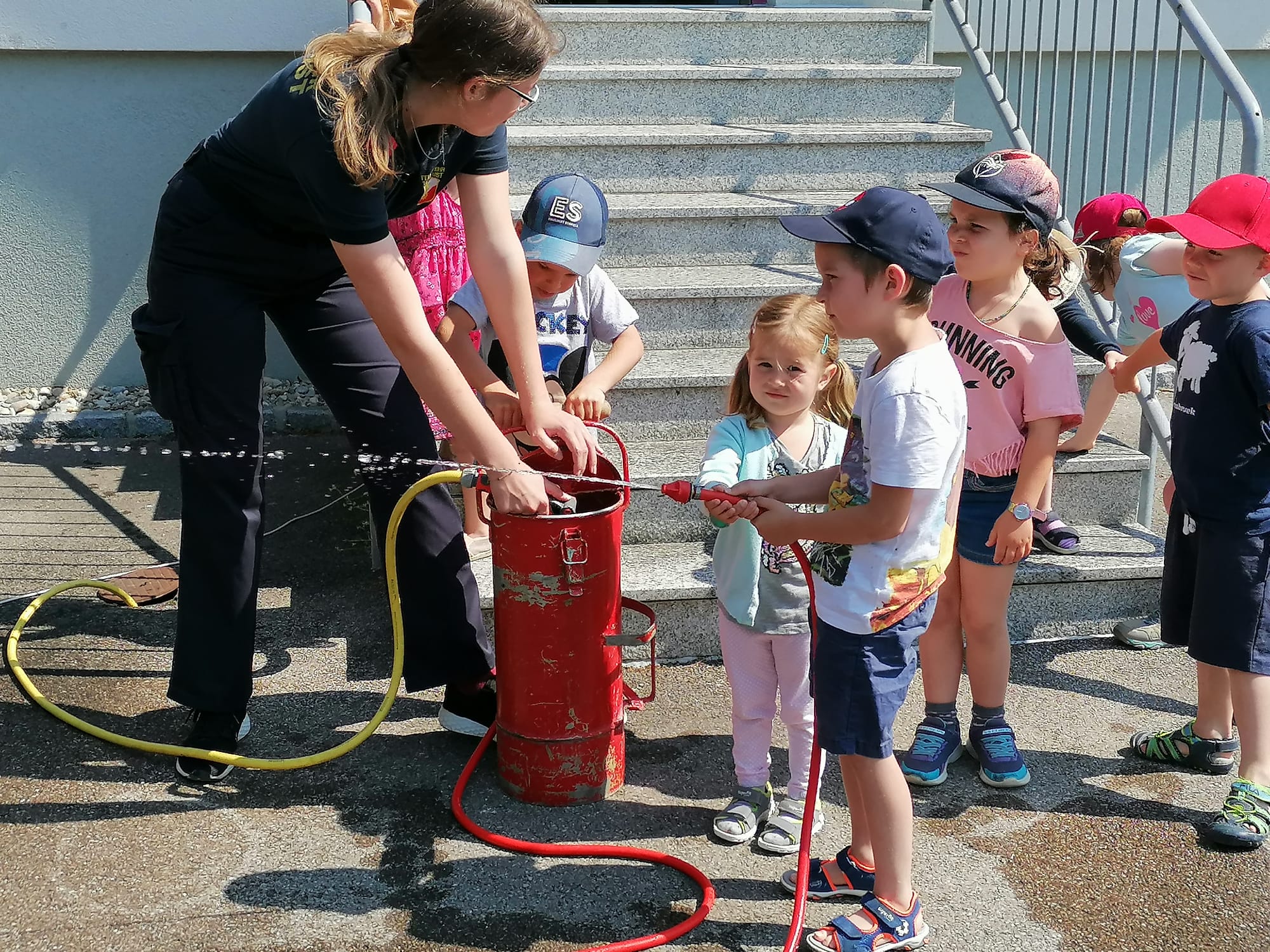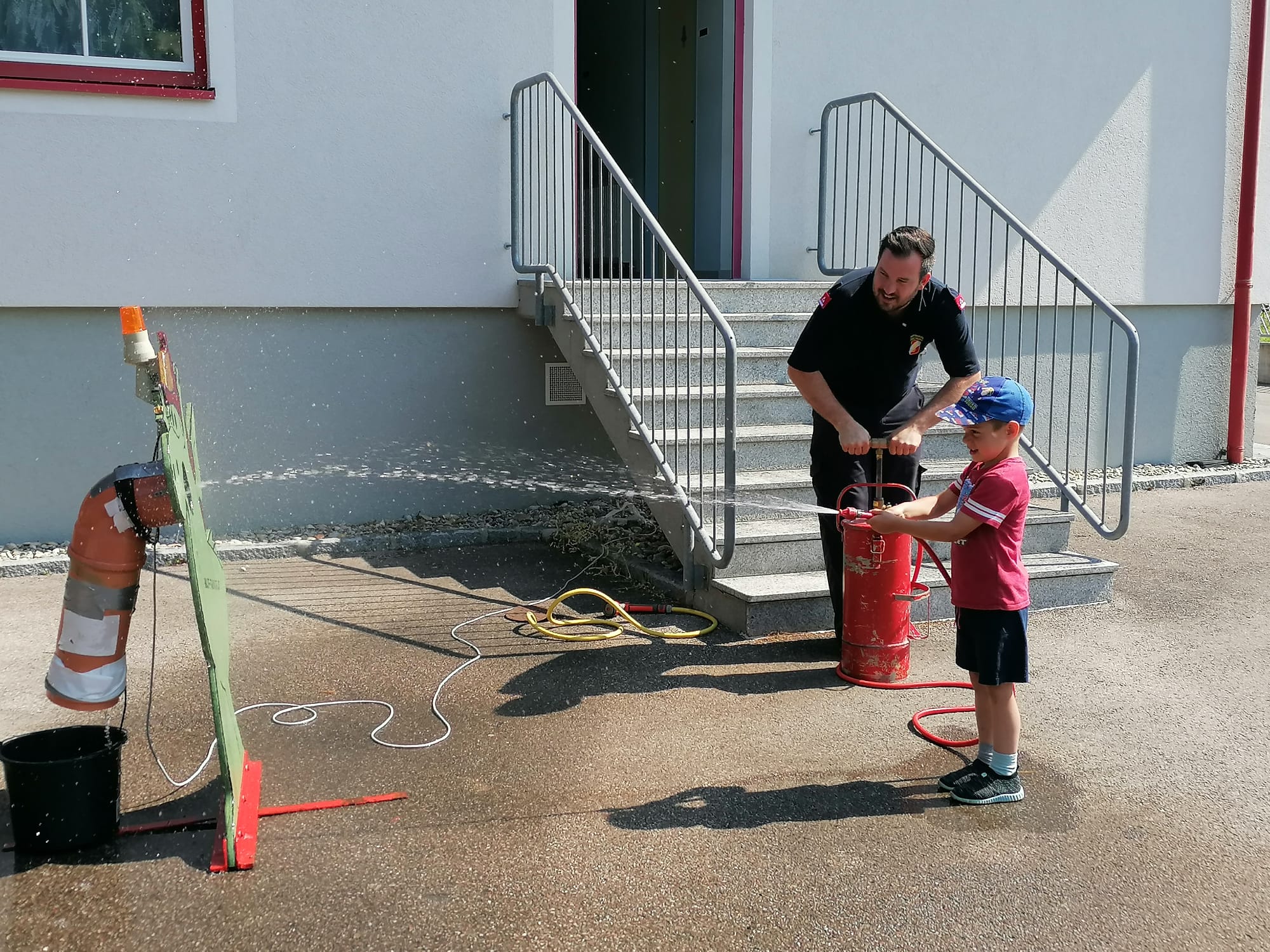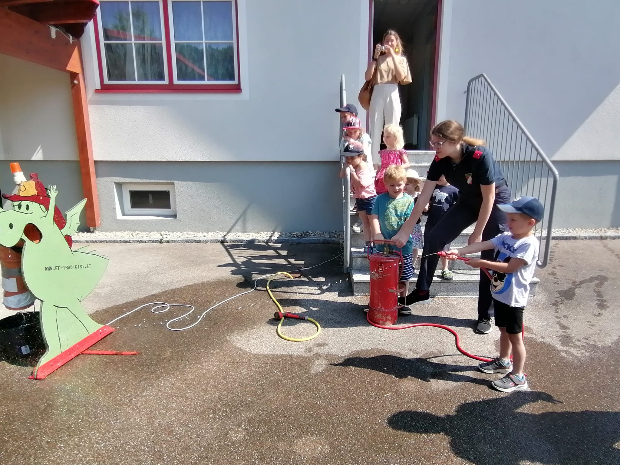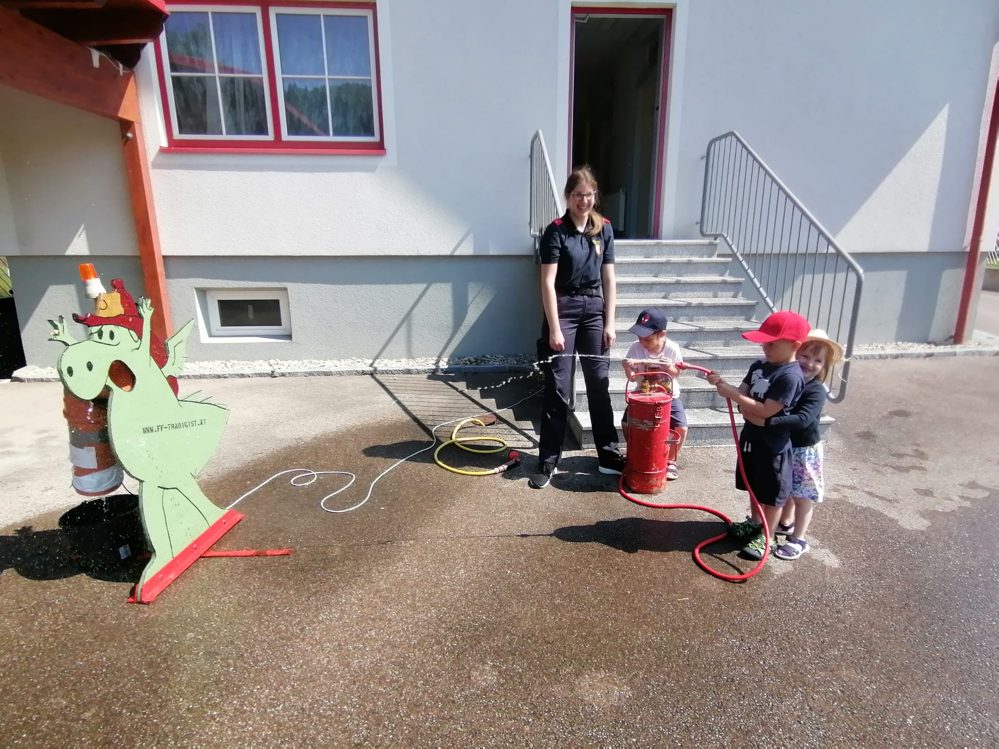 Neben der Besichtigung von Fahrzeugen und Gerätschaften stand Zielspritzen mit dem Feuerwehrdrachen Grisu und eine Fahrt im Feuerwehrauto auf dem Programm.