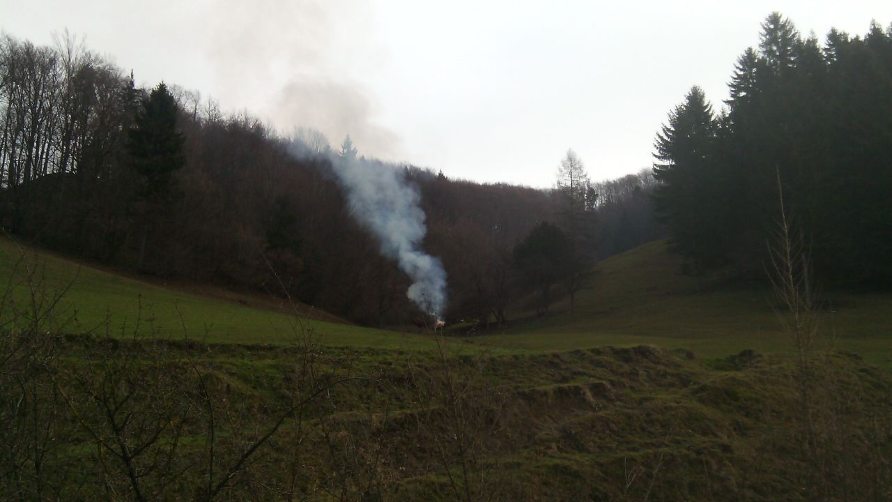 Bei der Ankunft konnte schnell Entwarnung gegeben werden, da es sich um einen kontrollierten Abbrand von Krampen und Abfallholz eines Landwirtes handelte.