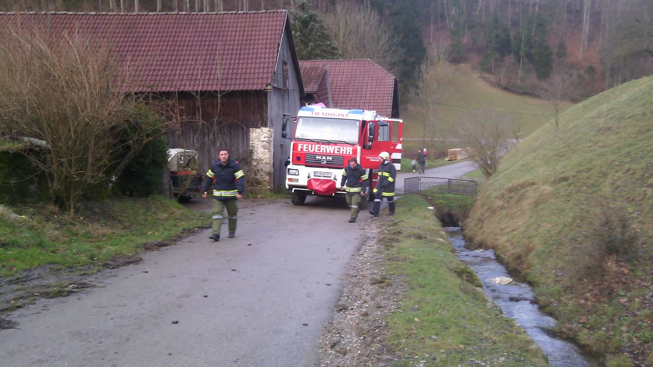 Einsatzadresse war bei der Alarmierung nicht genau bekannt, da ein vorbeifahrender Autofahrer wegen der starken Rauchentwicklung den Notruf abgesetzt hatte.