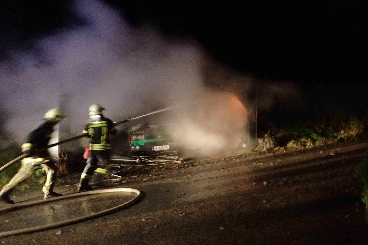 Als wir an der Einsatzstelle eintrafen, war Feuerwehr Kirchberg bereits vorort mit dem Löscheinsatz beschäftigt. Ein Carport stand mitsamt den darinstehenden Fahrzeugen in Vollbrand. Die Feuerwehr Kirchberg hatte das Feuer jedoch bereits unter Kontrolle, somit war der Einsatz für uns und die Feuerwehren Loich und Rabenstein nicht mehr erforderlich.