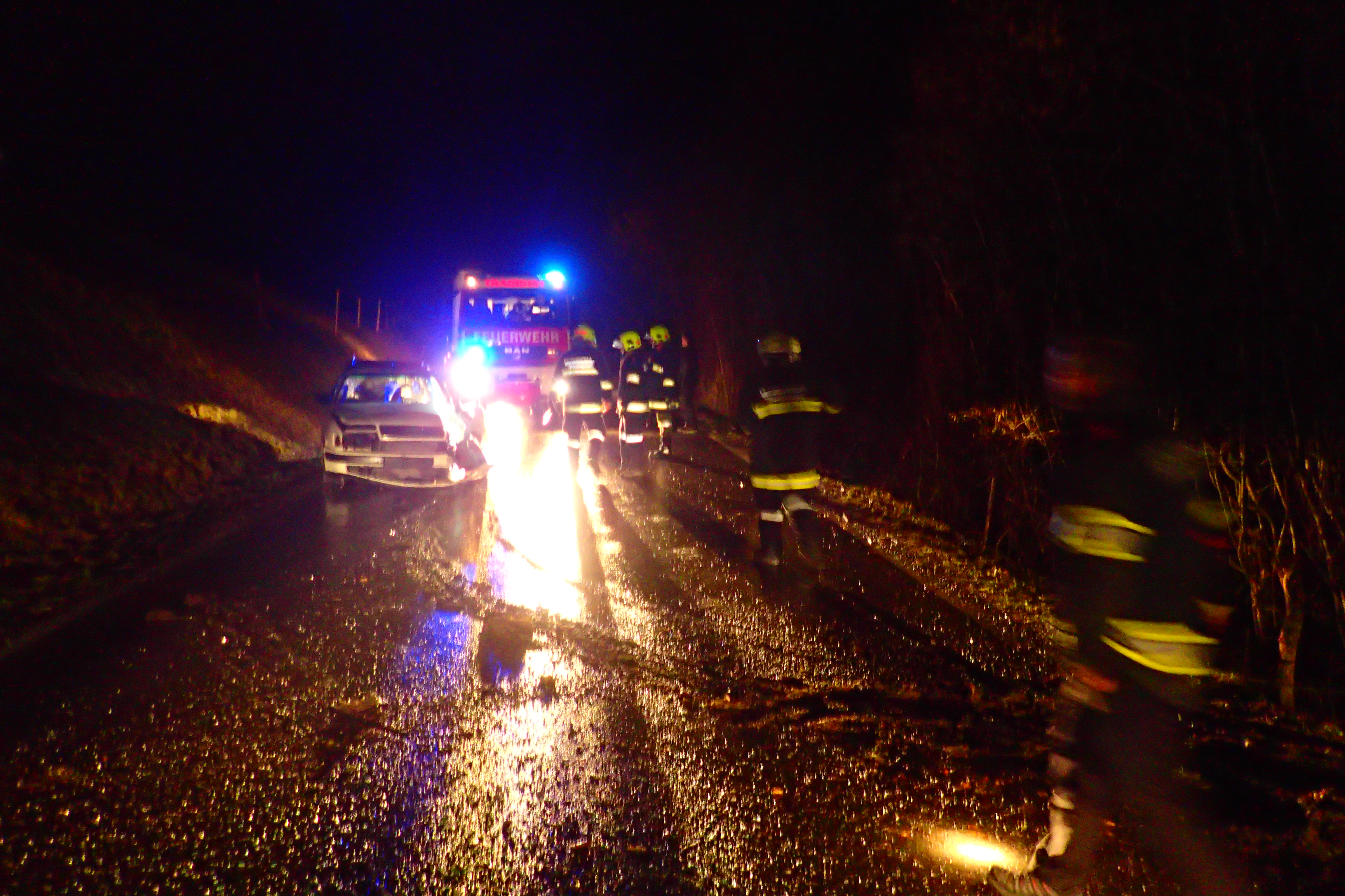 Heute Nacht wurden wir um 04:14Uhr von Florian St. Pölten zu einer PKW-Bergung auf die L107 Gaisebenstraße kurz vor Fa. Grasmann alarmiert.