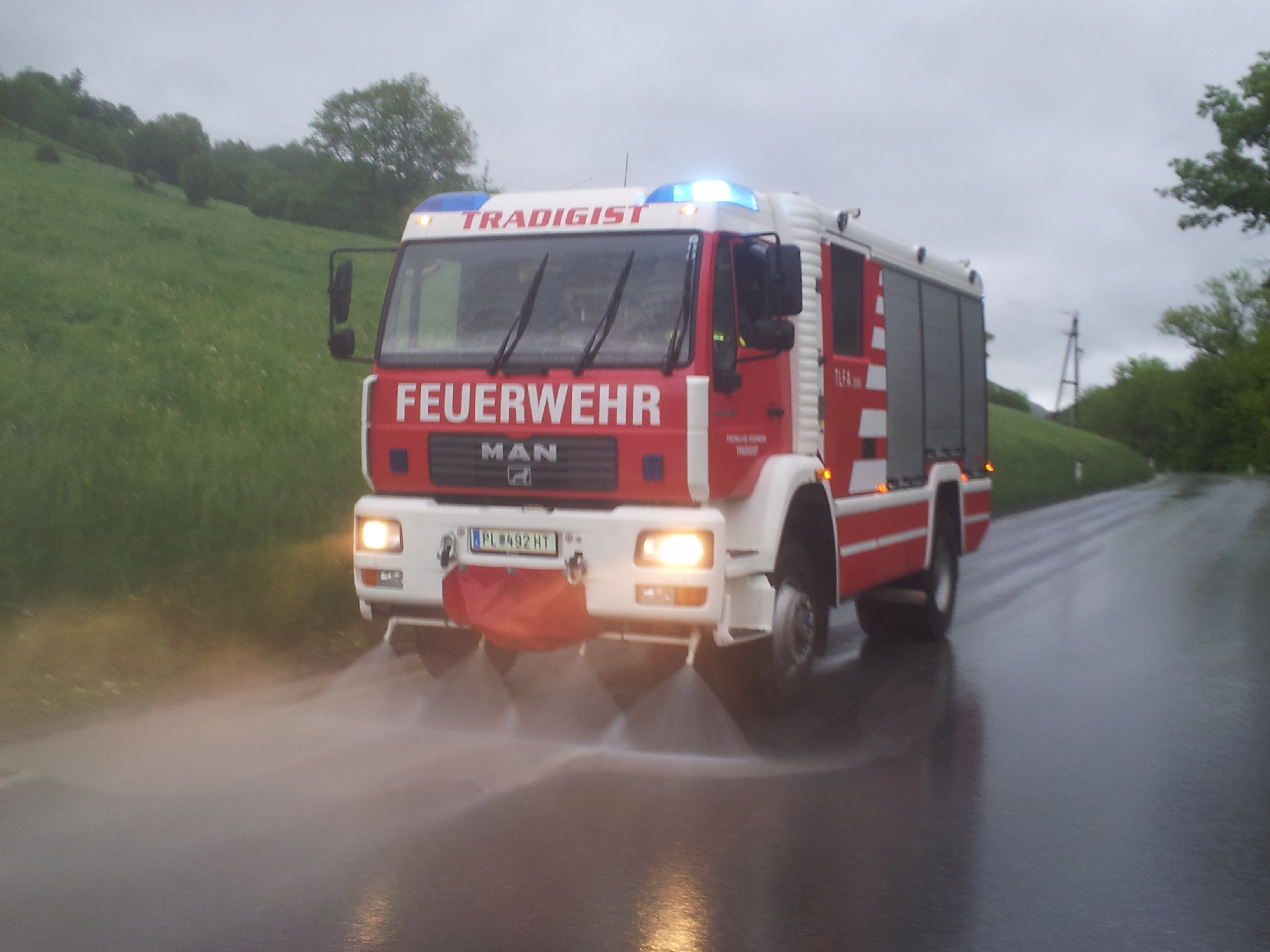Aufgrund starker Verschmutzung des Güterwegs "Grabl" wurden wir gebeten diese zu reinigen. Mittels TLFA 3000 und Straßenwaschanlage wurde der Güterweg gereinigt. Weiters wurden die Kanaleinläufe sowie die Wasserquerrinnen von Schmutz befreit und ebenfalls gereinigt.