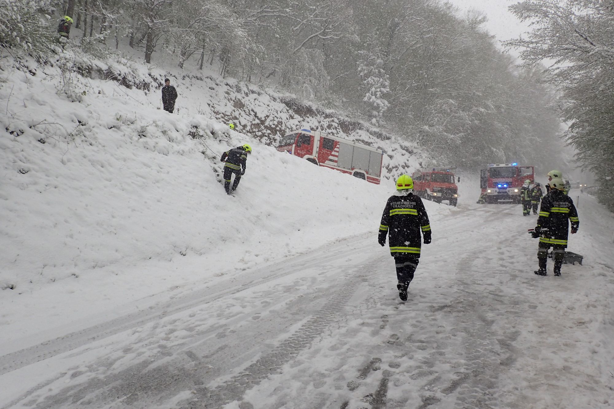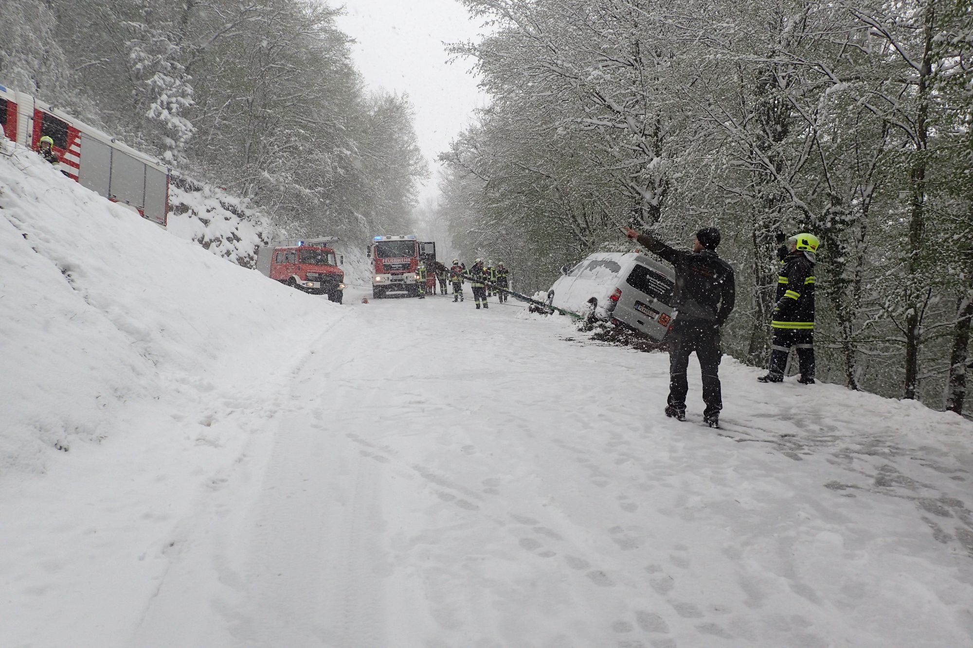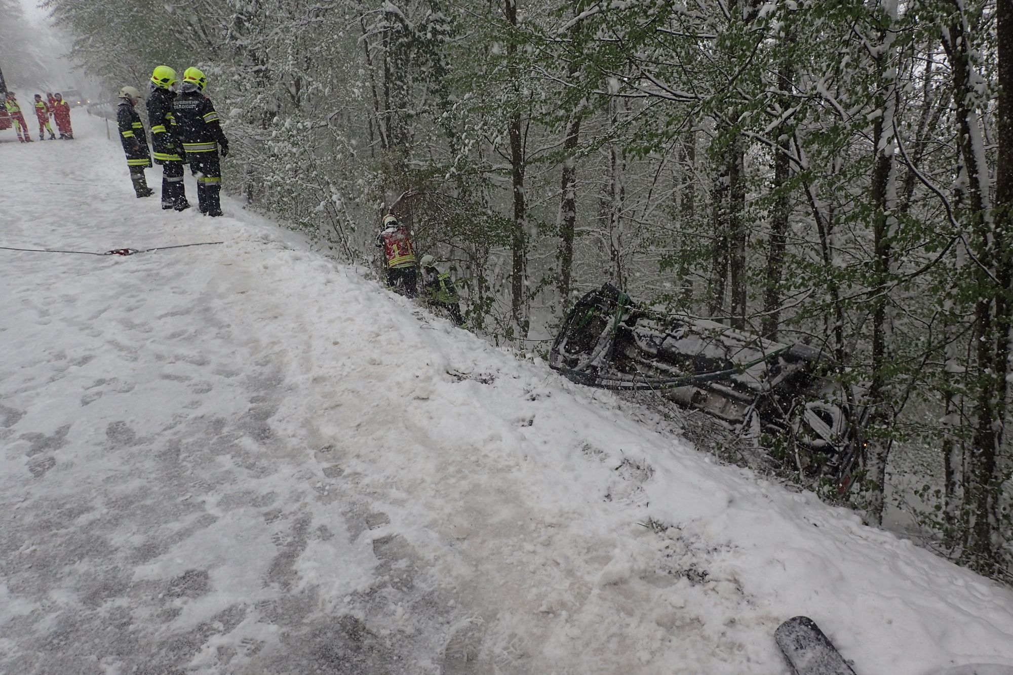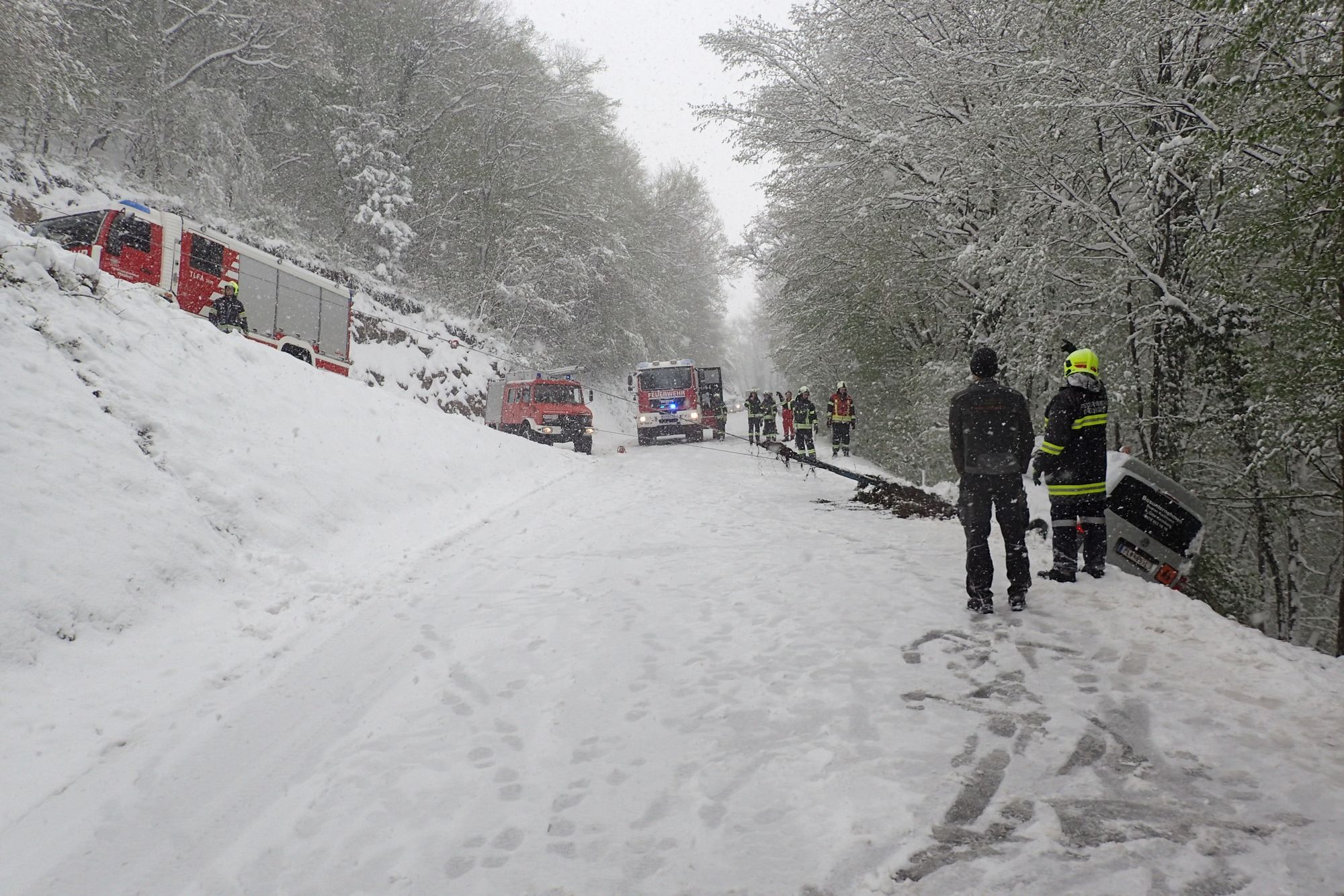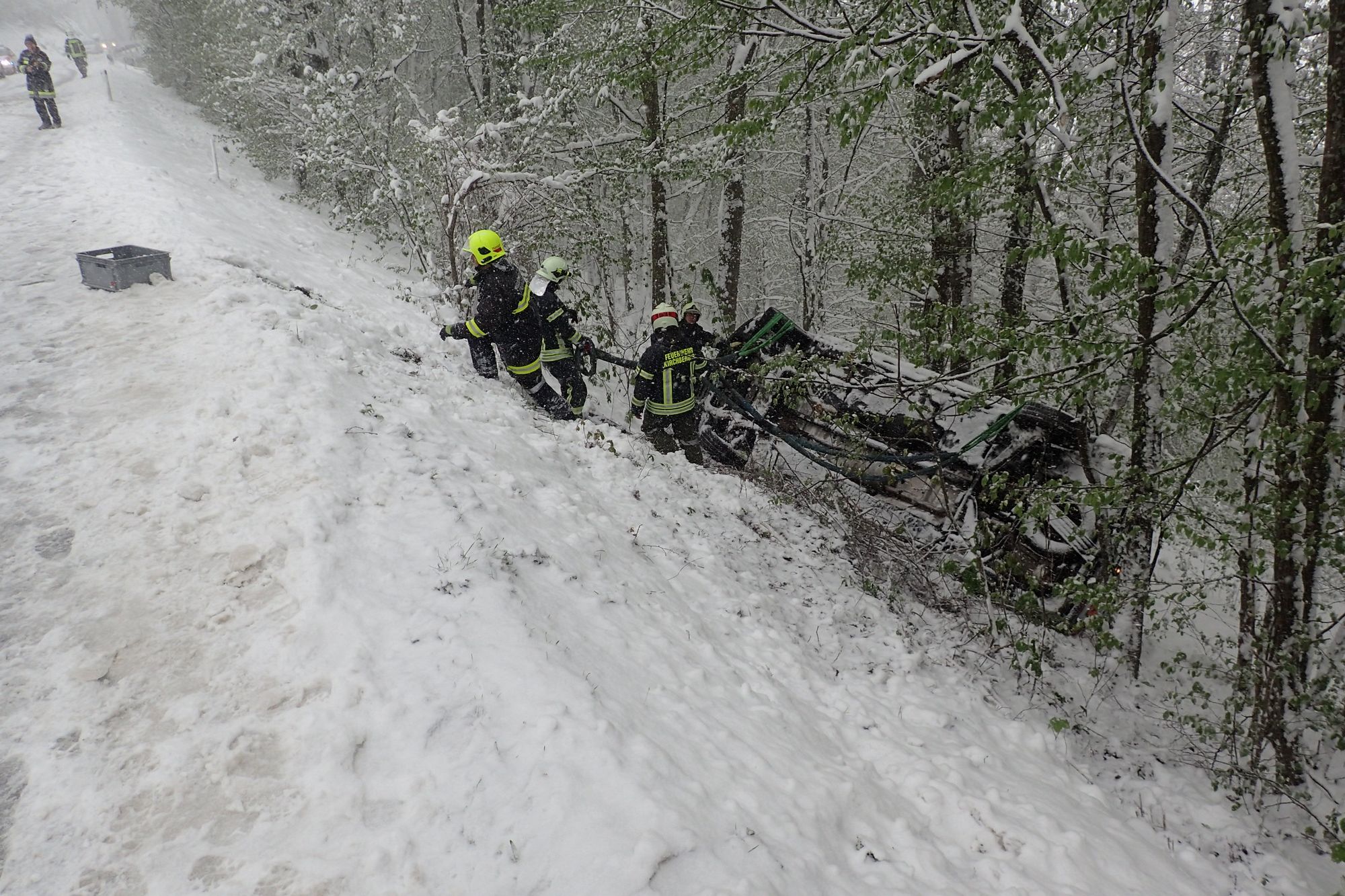 Die Bergung wurde gemeinsam mit der Feuerwehr Kirchberg mittels mehrerer Seilwinden durchgeführt.