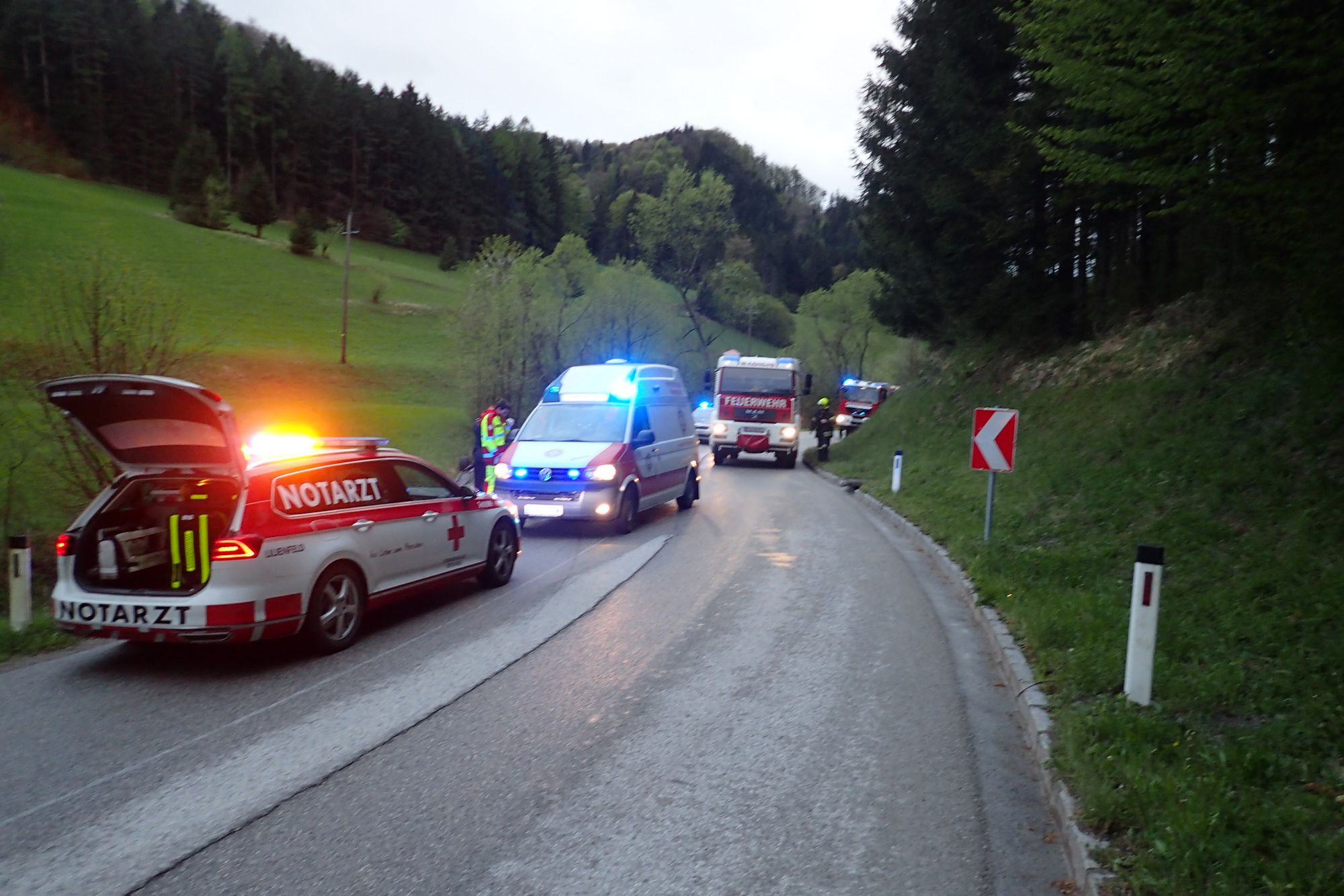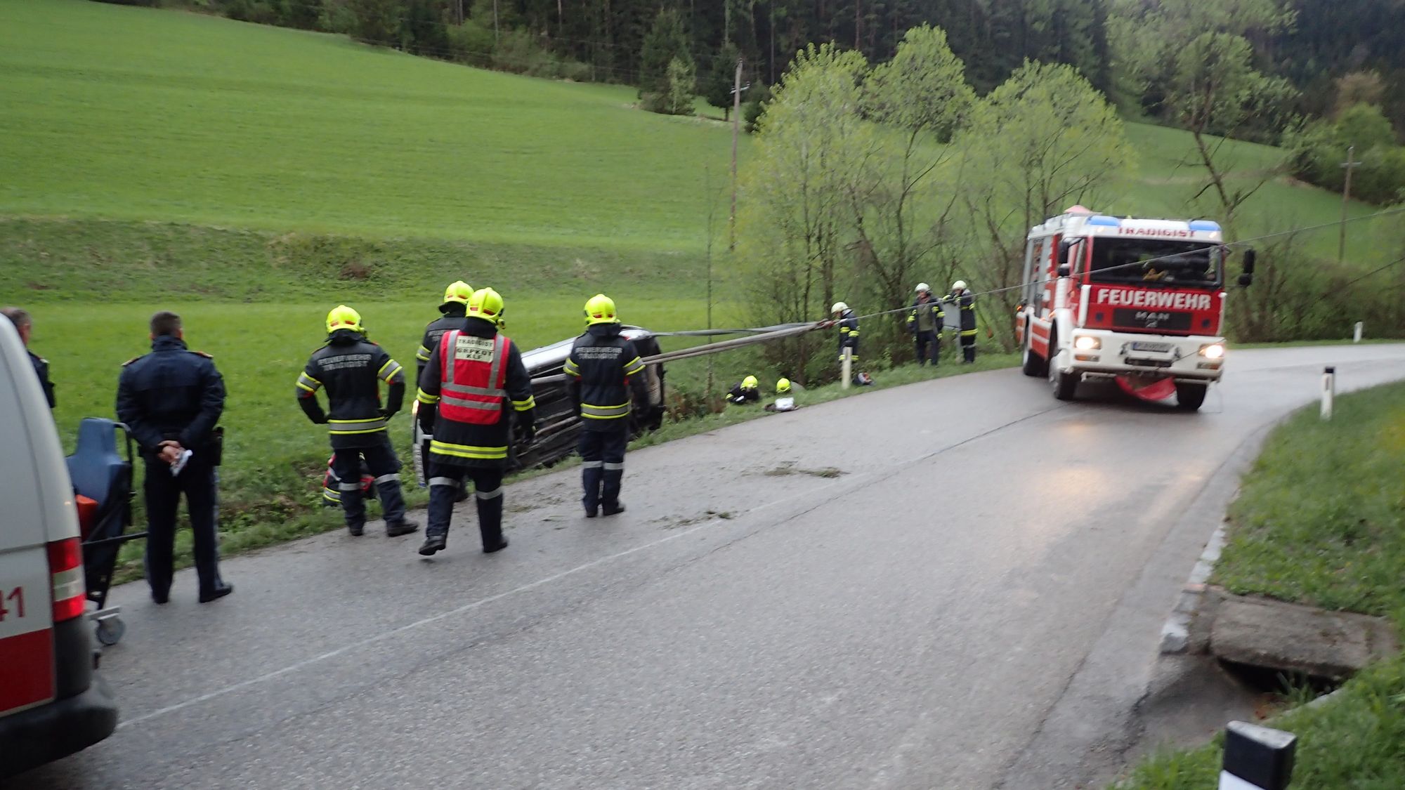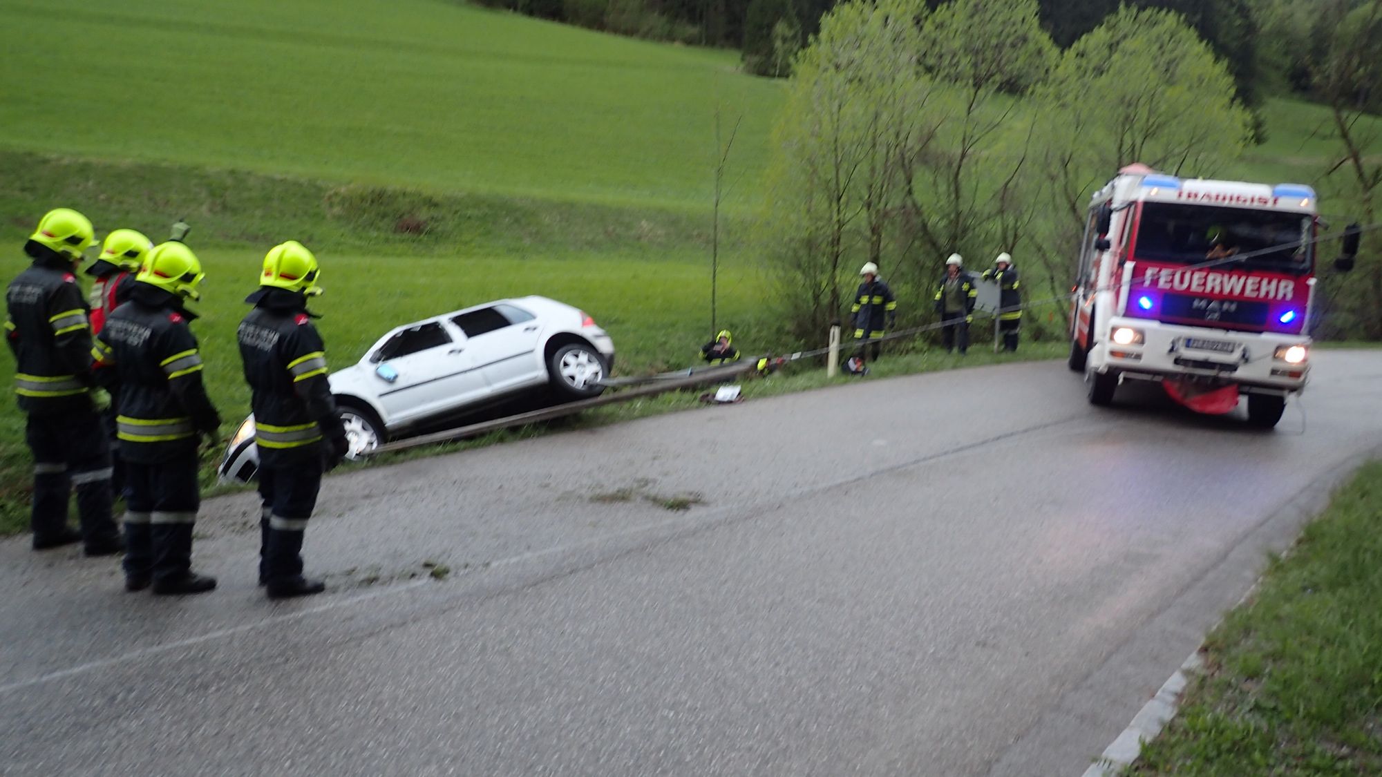 Beim Eintreffen an der Unfallstelle stellte sich heraus, dass sich Gott sei Dank niemand mehr im verunfallten Fahrzeug befand. Der Lenker wurde bereits durch den ASBÖ Rabenstein versorgt. Somit war der Einsatz für die Feuerwehr Kirchberg nicht mehr erforderlich.