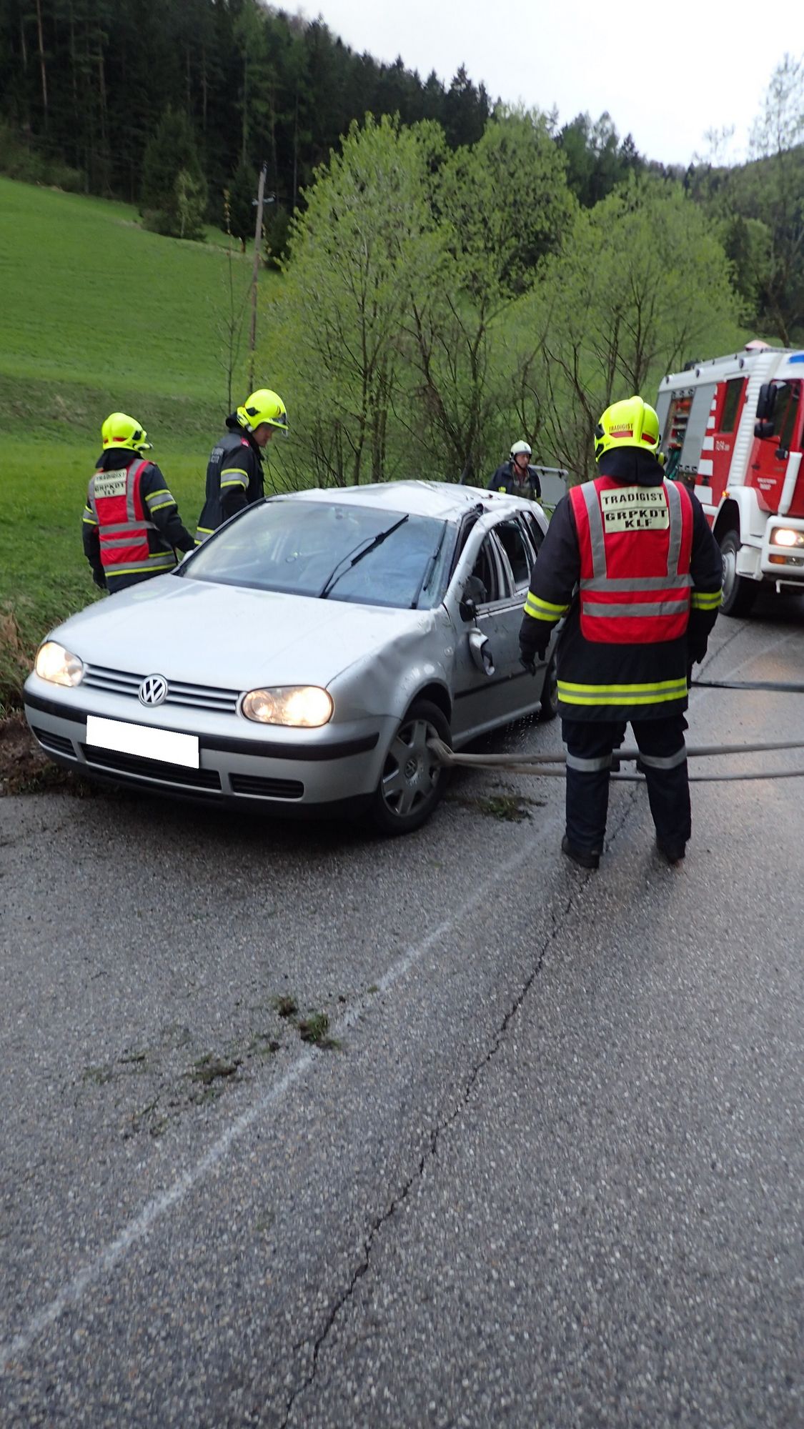 Die Bergung des Fahrzeuges wurde mittels der Seilwinde unseres Tanklöschfahrzeuges durchgeführt.
