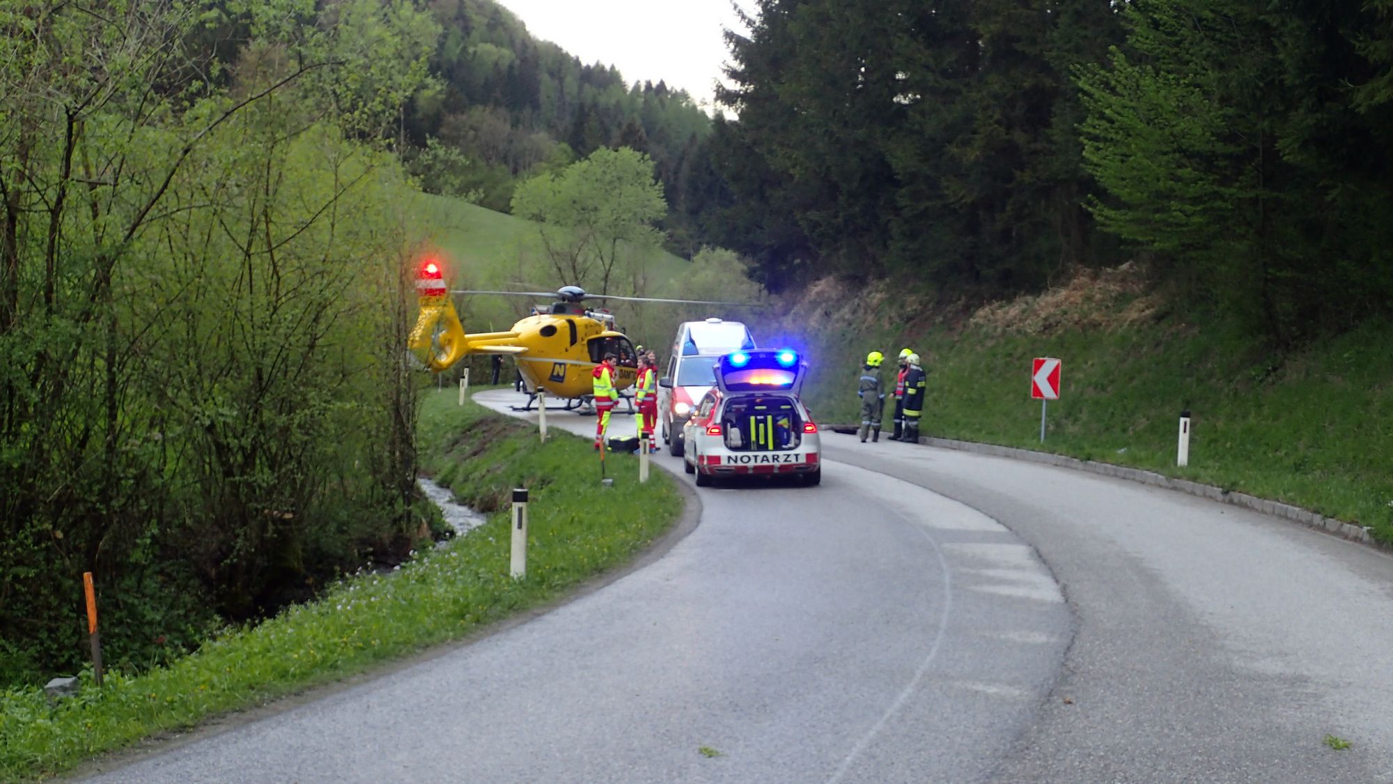 Nach notärztlicher Behandlung des Verletzten, wurde dieser vom Rettungshubschrauber ins Landesklinikum geflogen.