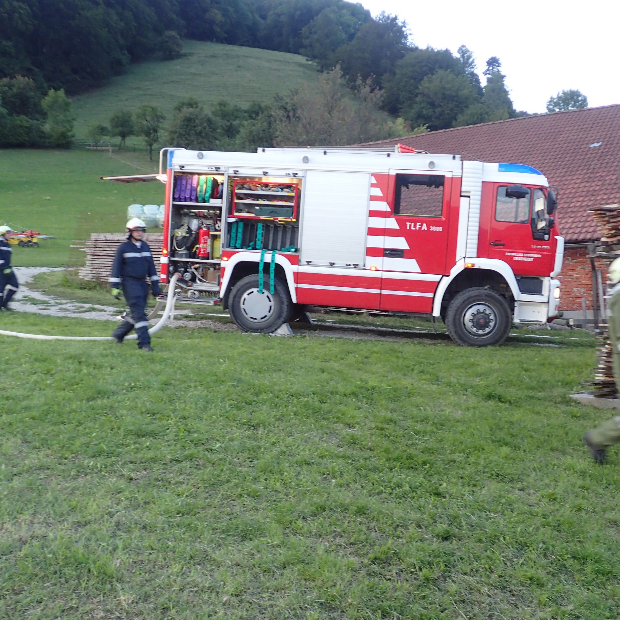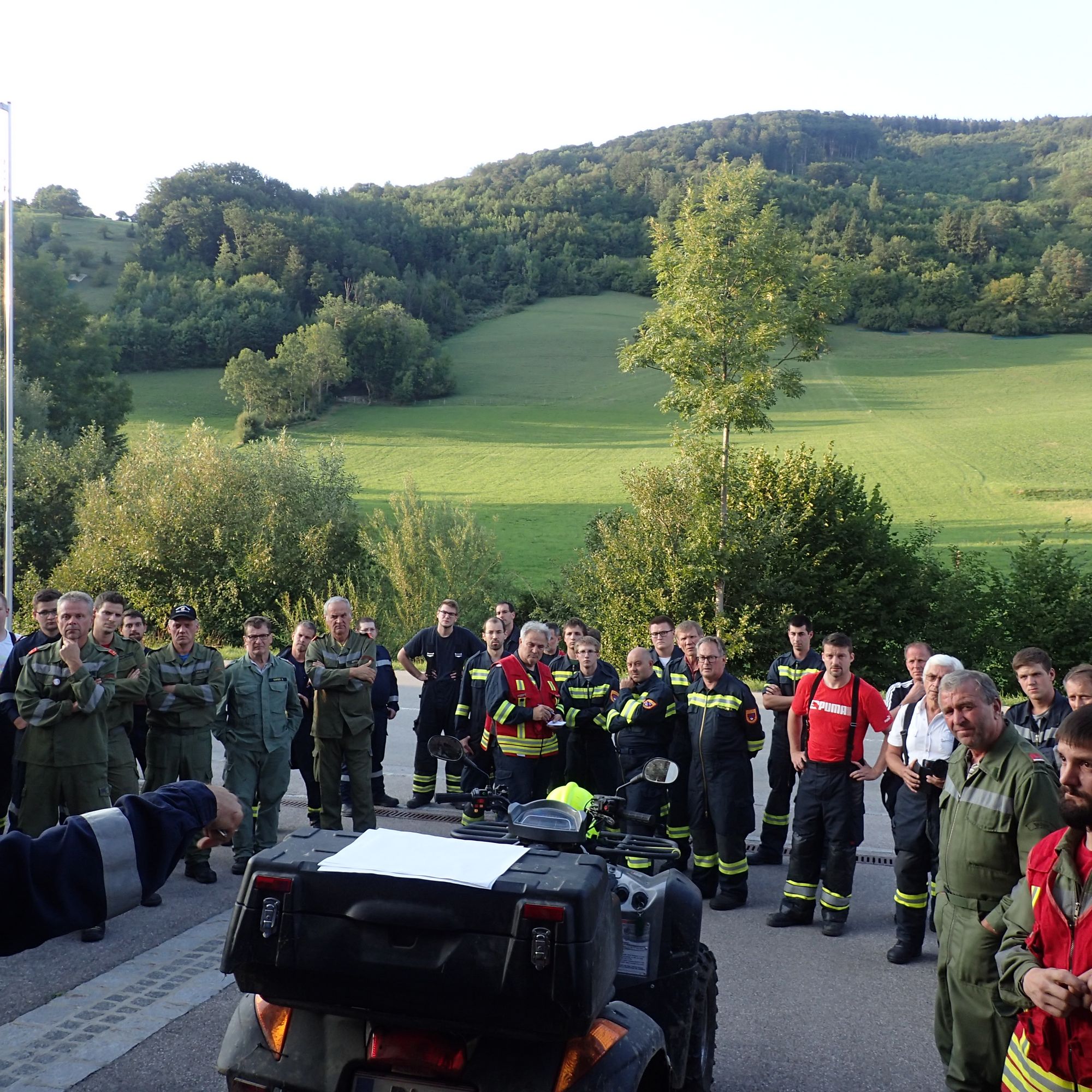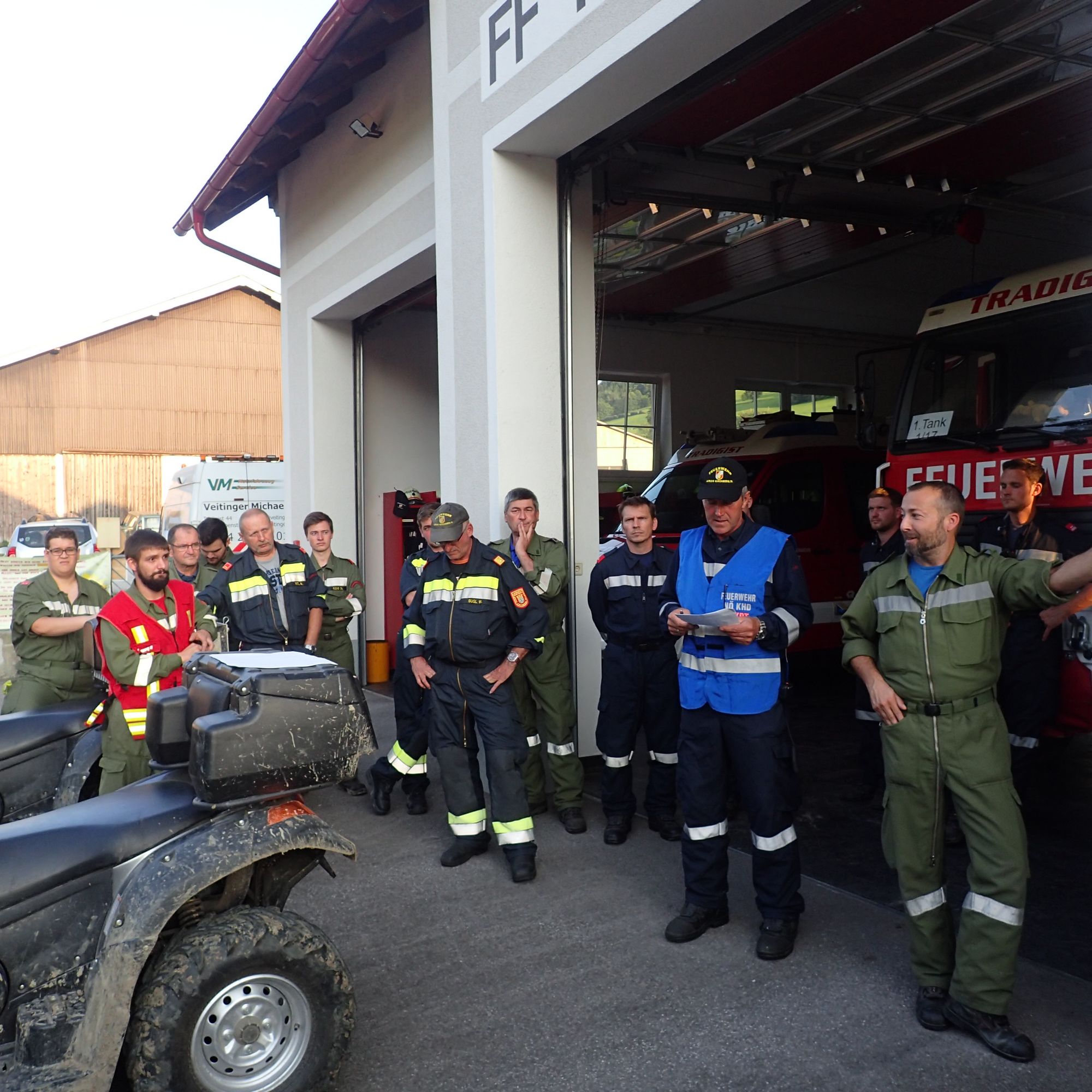 Zugskommandant OBI Andreas Veitinger (FF Tradigist) lobte in der abschließenden Übungsbesprechung die professionelle Arbeit aller, die an der Übung teilgenommen haben. Vor allem da die Voraussetzungen, durch das steile Gelände von der Wasserentnahme bis zum Brandobjekt, sehr schwierig waren.