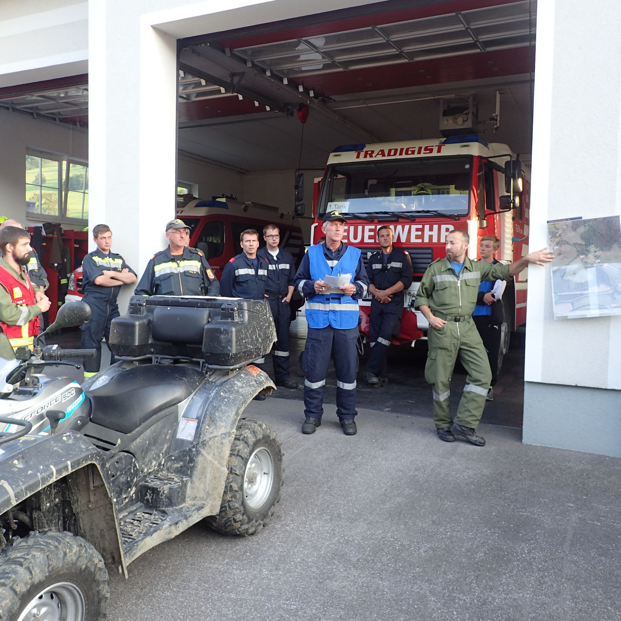 (FF Frankenfels, FF Weißenburg, FF Loich, FF Kirchberg, FF Tradigist, FF Rabenstein, FF Hofstetten-Grünau) gemeinsam mit der FF Weinburg eine Zugsübung in Tradigist durch.